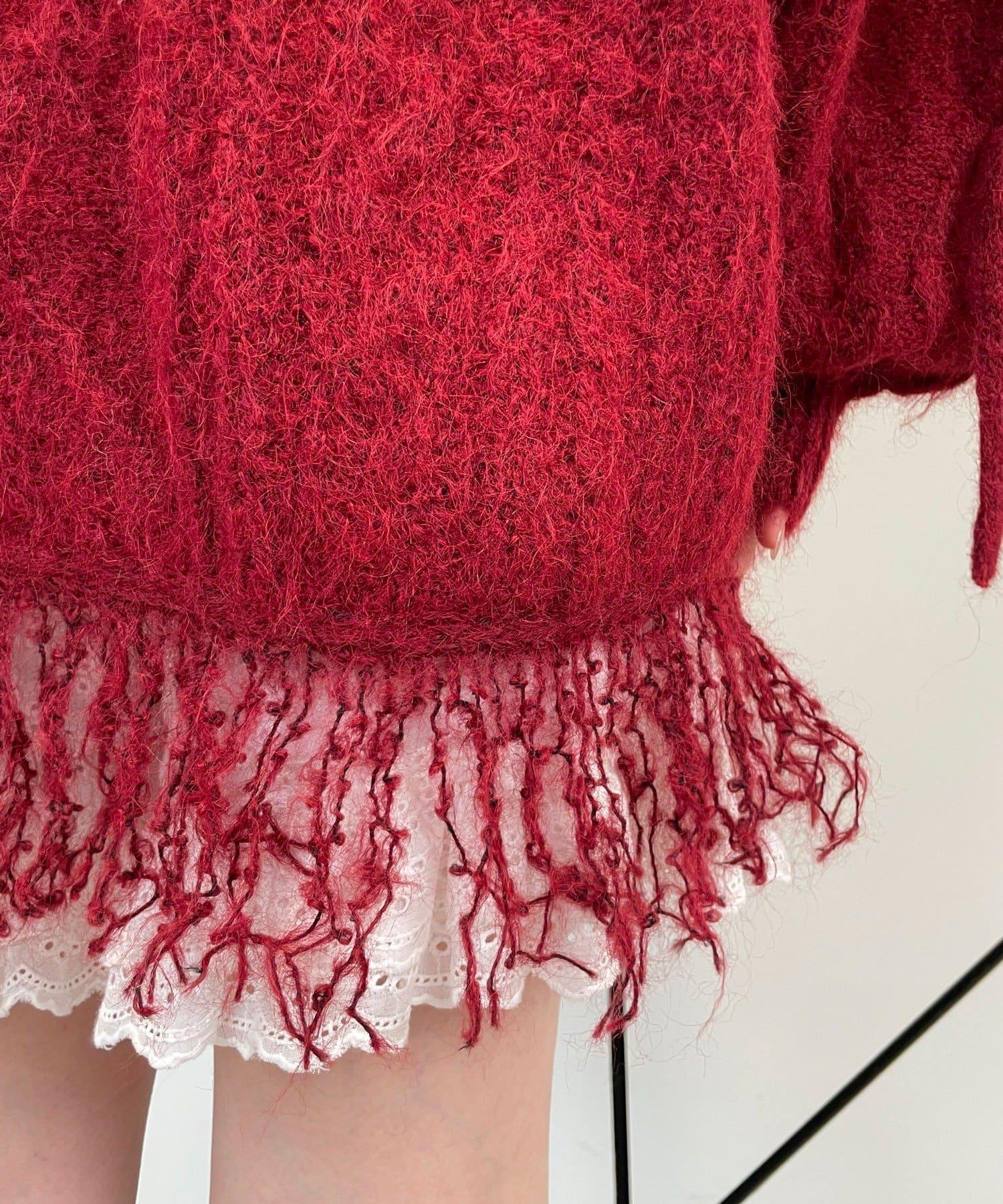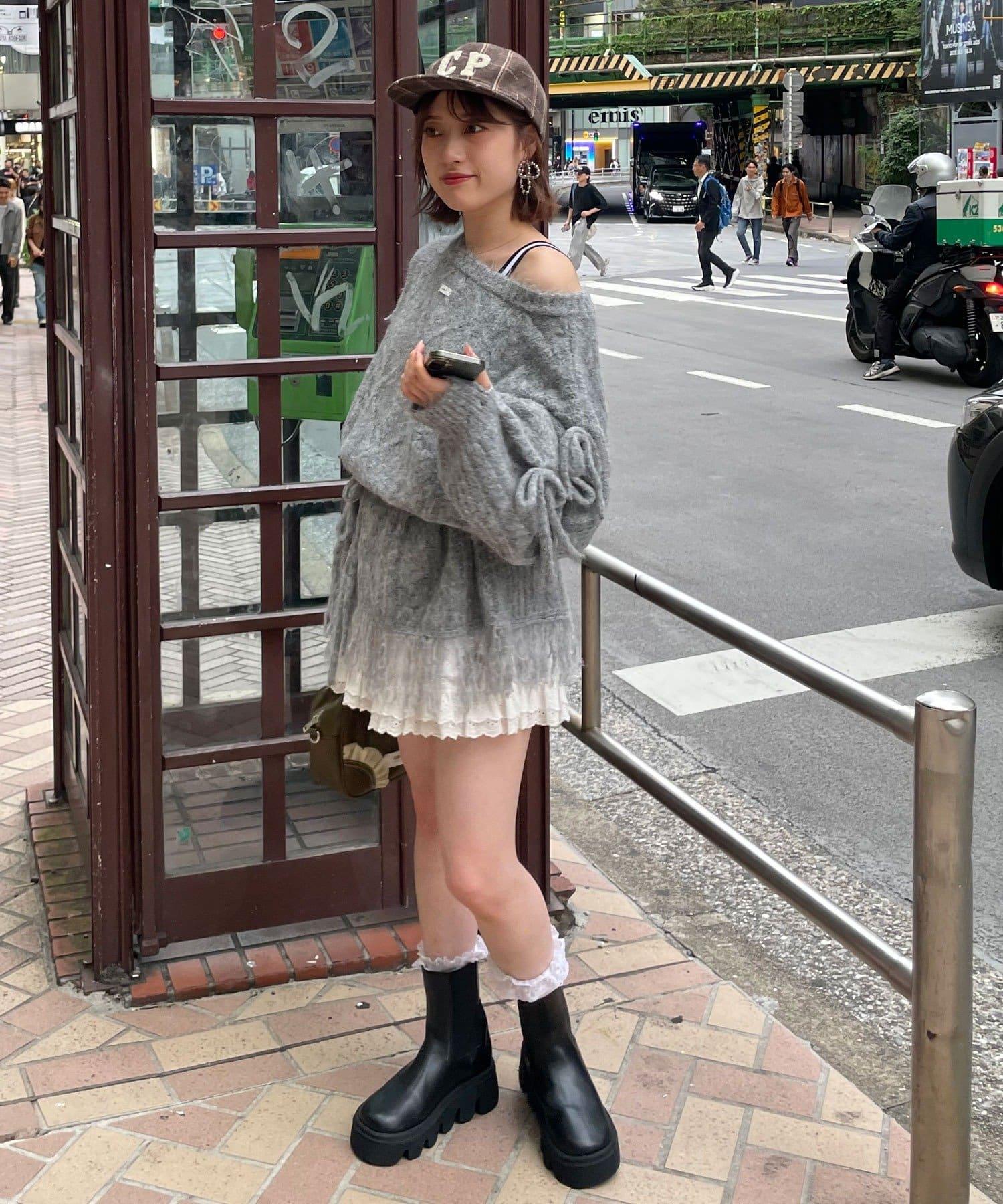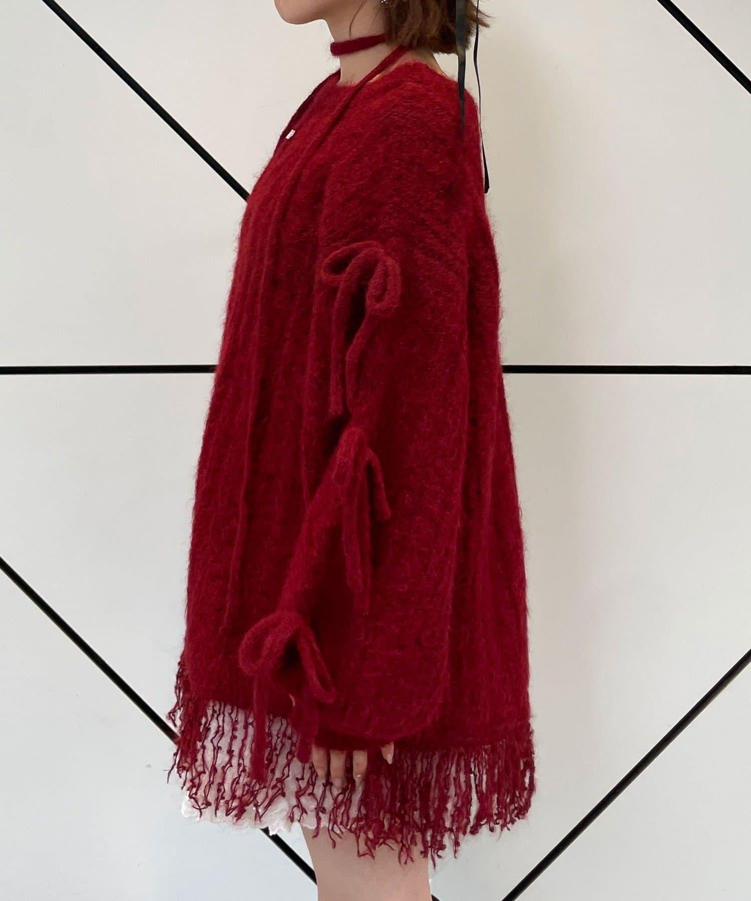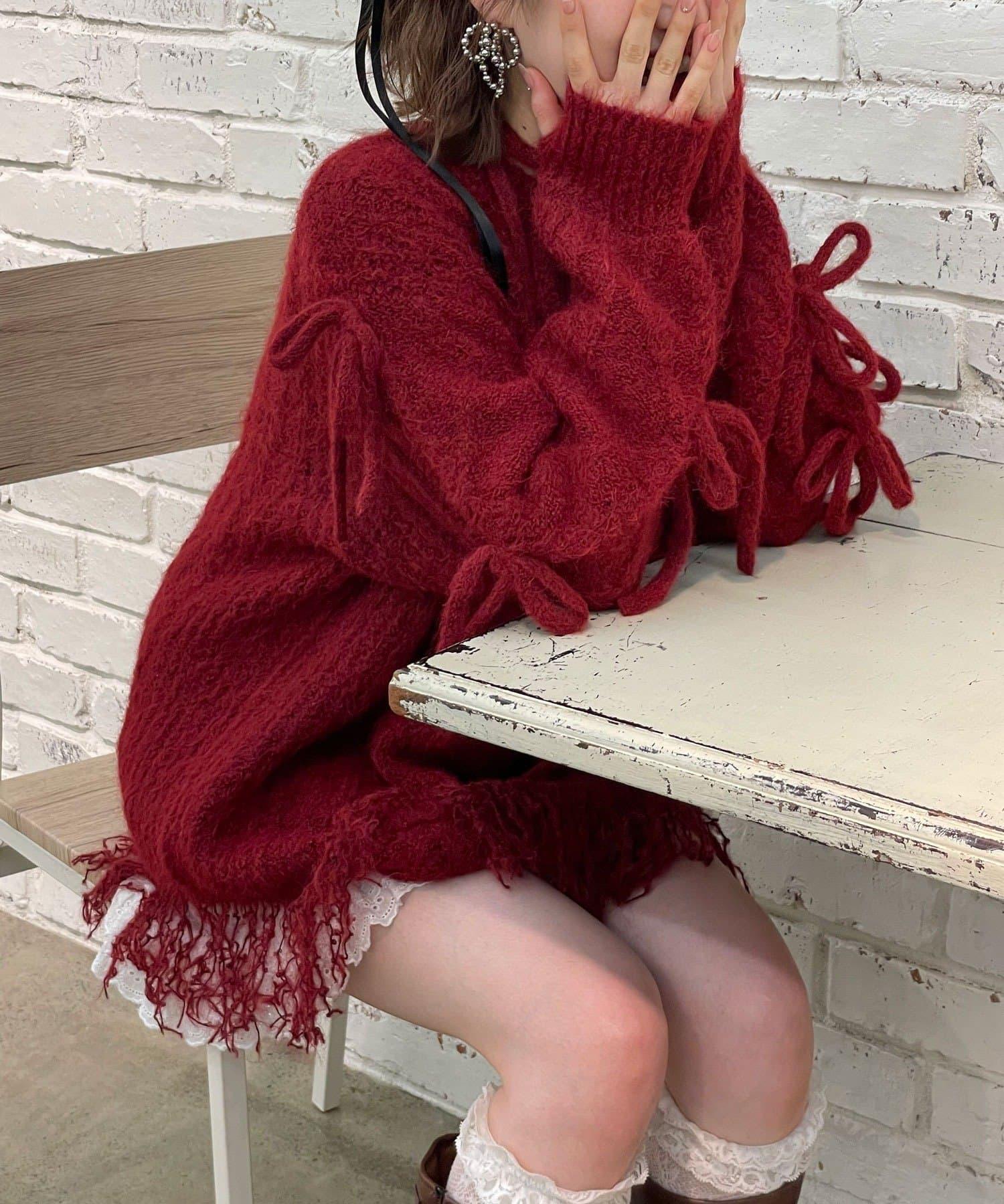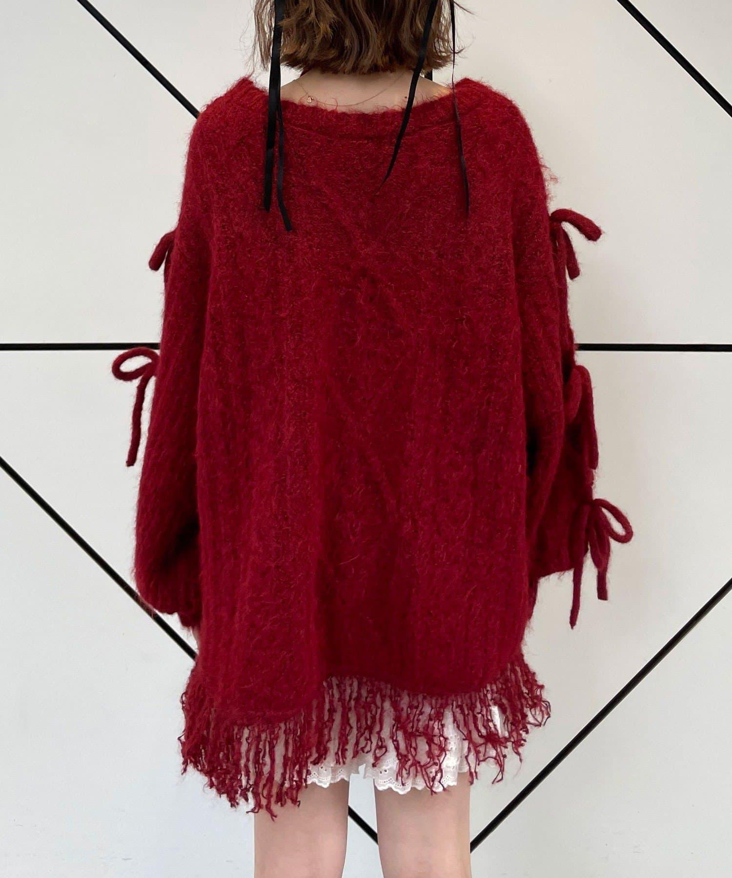 【あやっち(@_acoba_)企畫】麻花編織蝴蝶結流蘇一字肩針織衫
