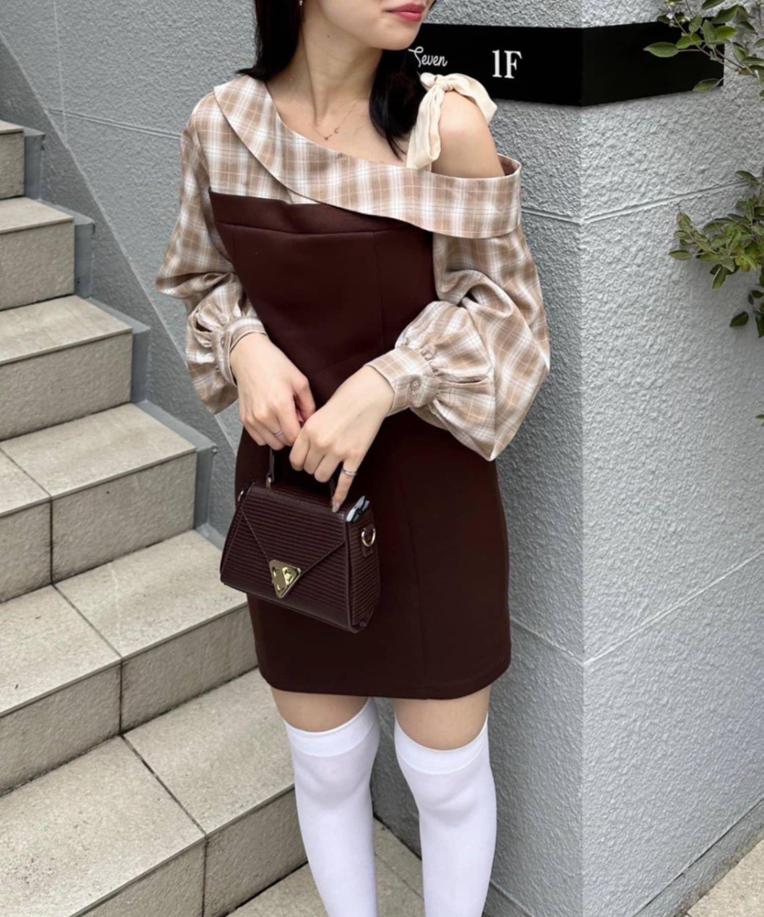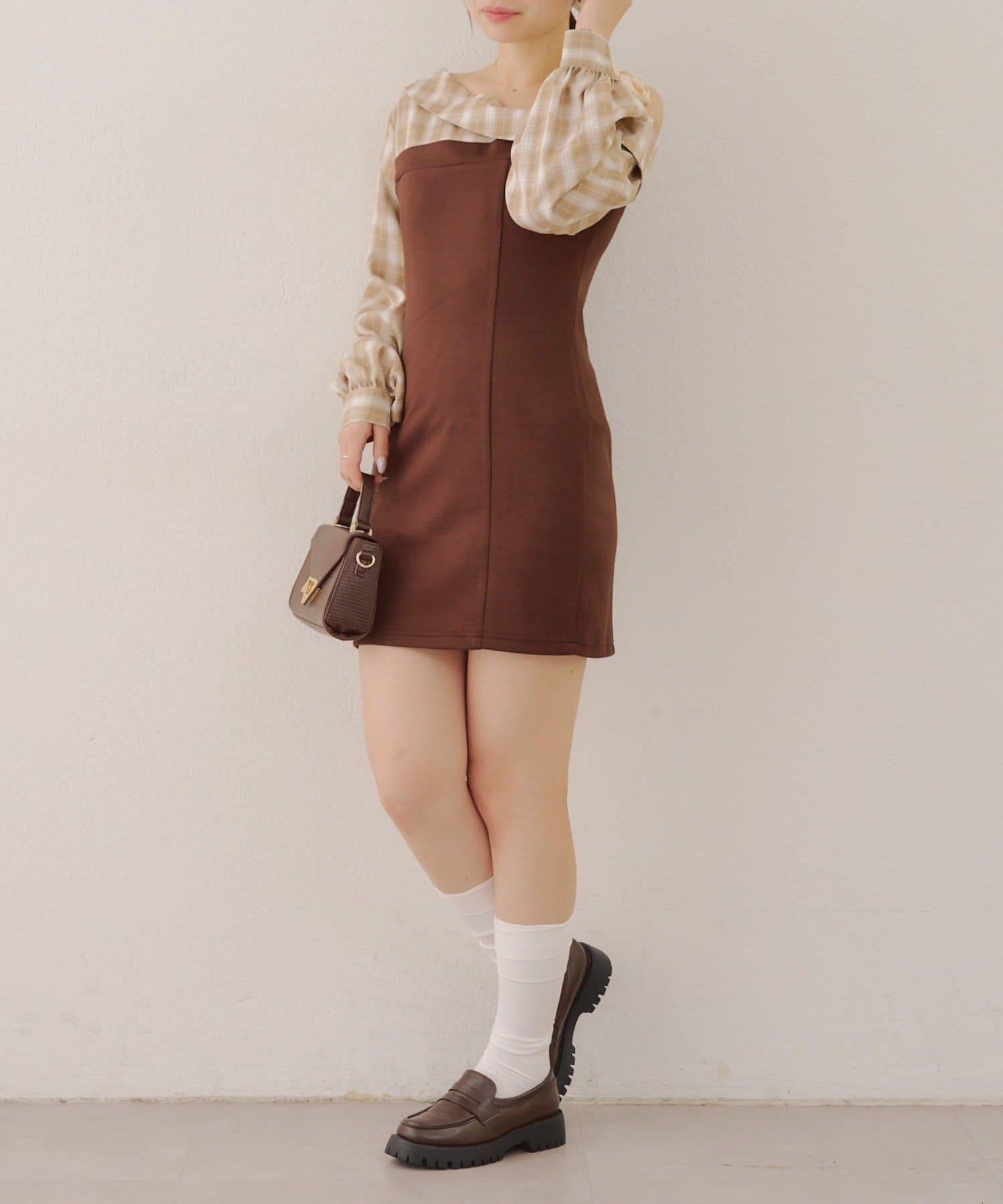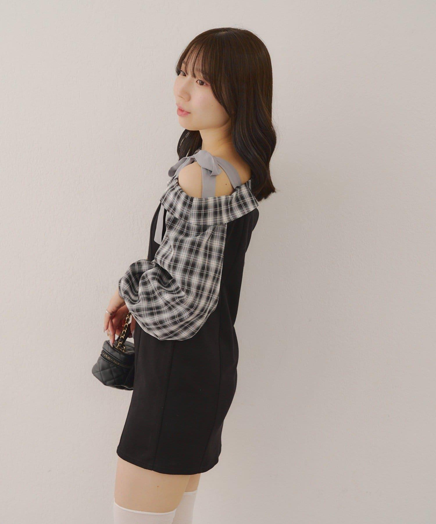 【あゆな@ayupi.06セレクト】拼接單肩迷你連衣裙