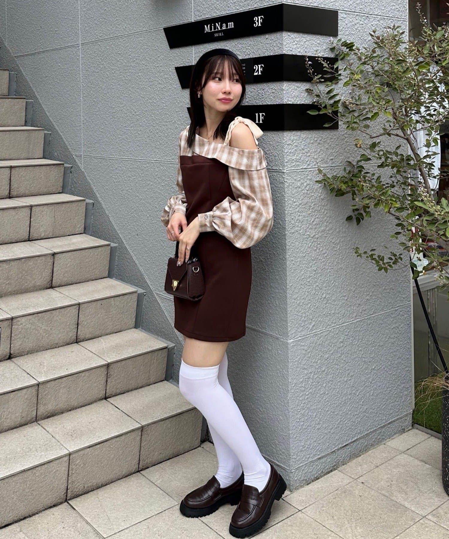 這款連衣裙的設計是為了搭配高筒襪和長筒靴時給人可愛的印象!