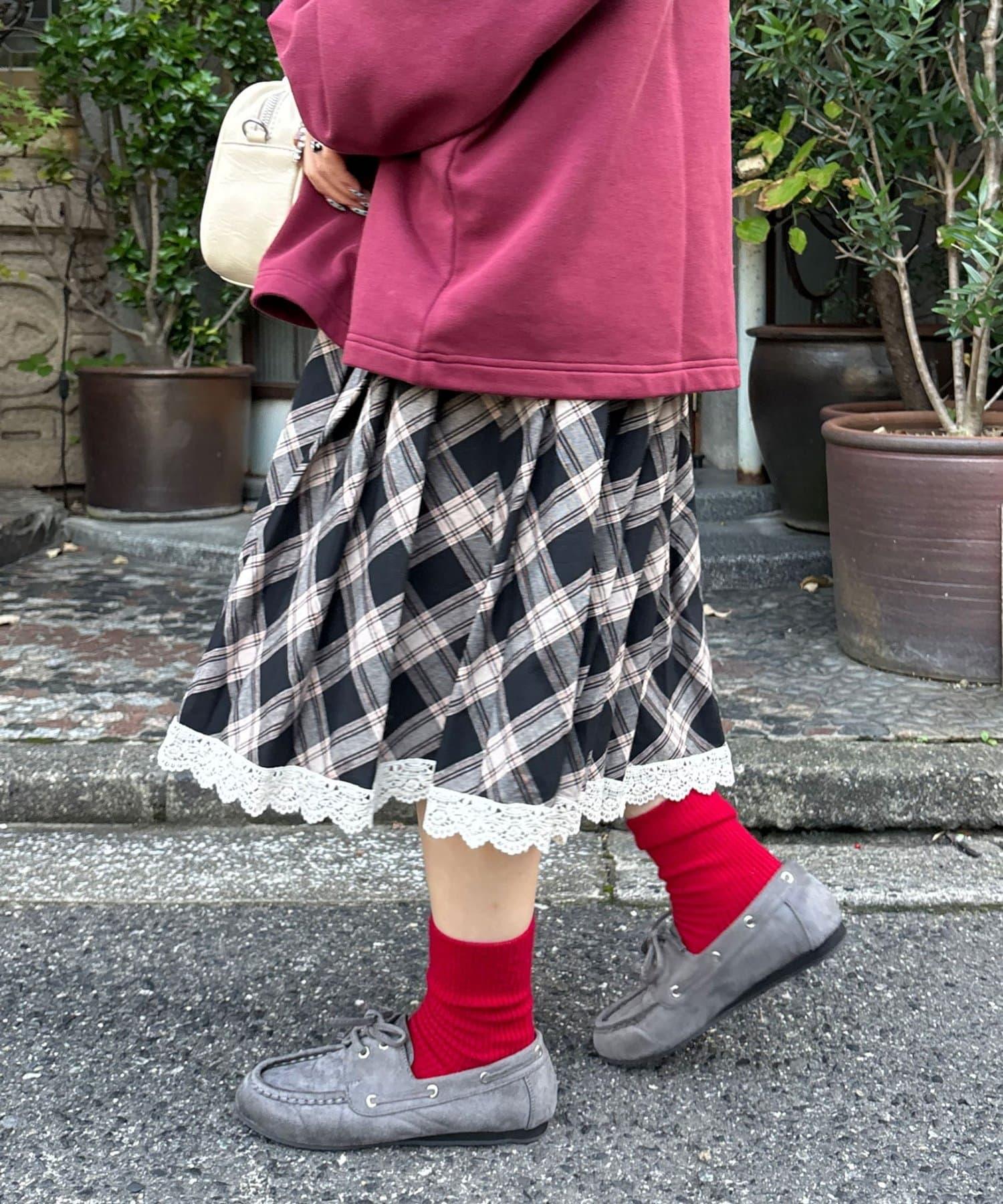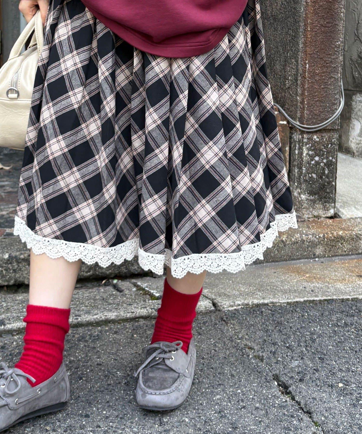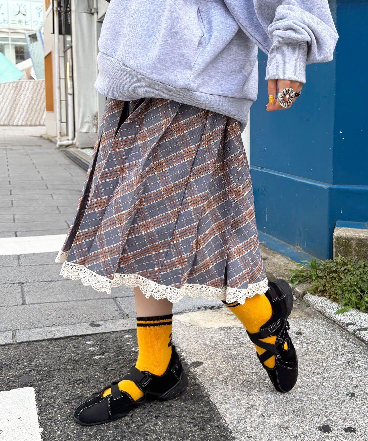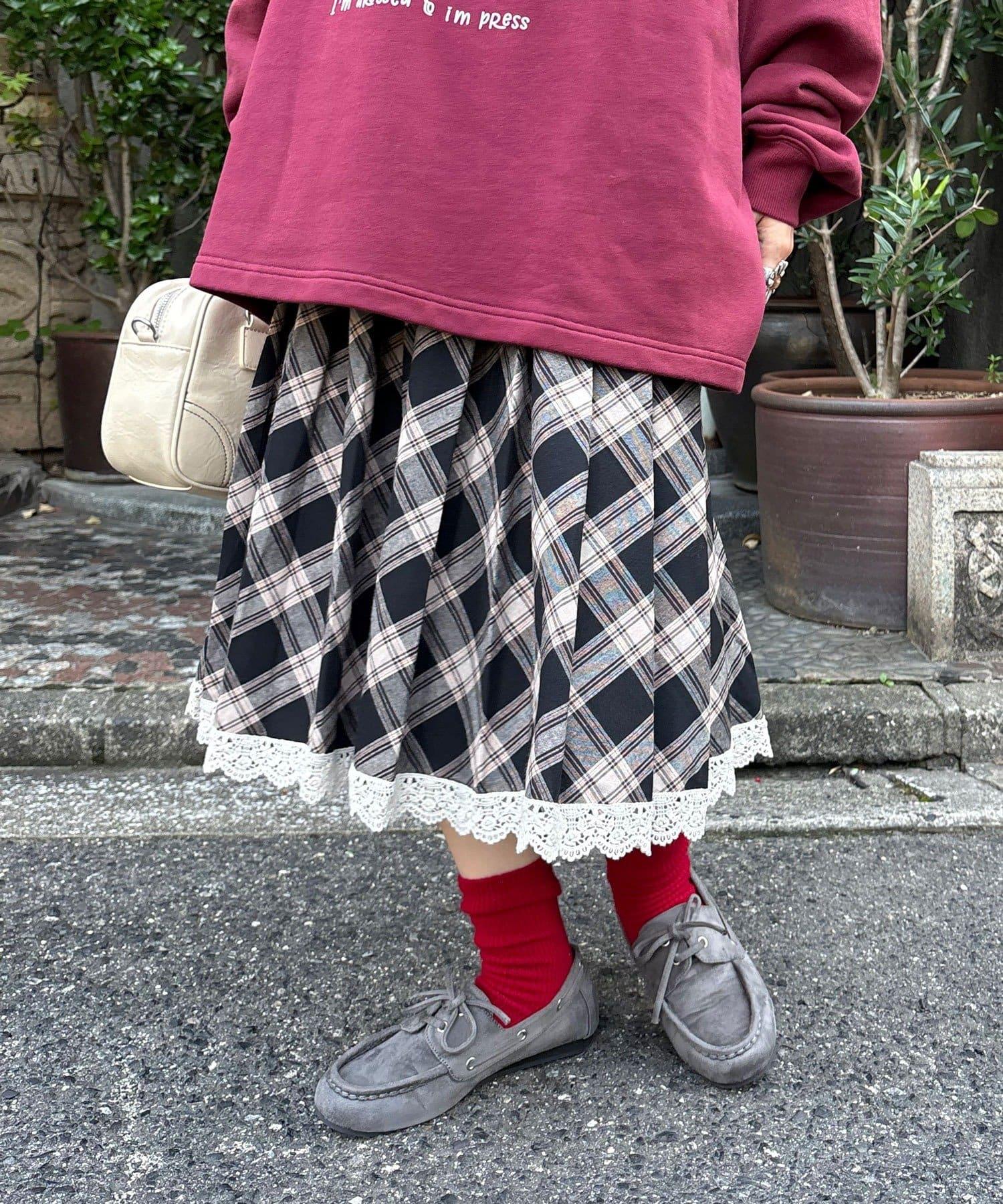 【まるお(@_maruoo0___)企畫】下襬蕾絲格紋百褶裙