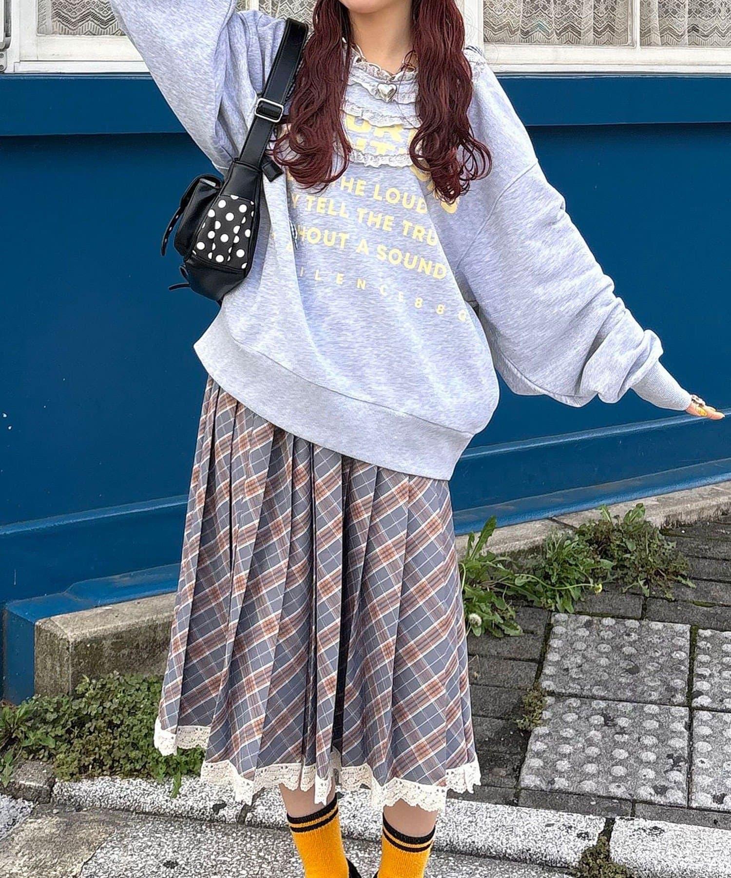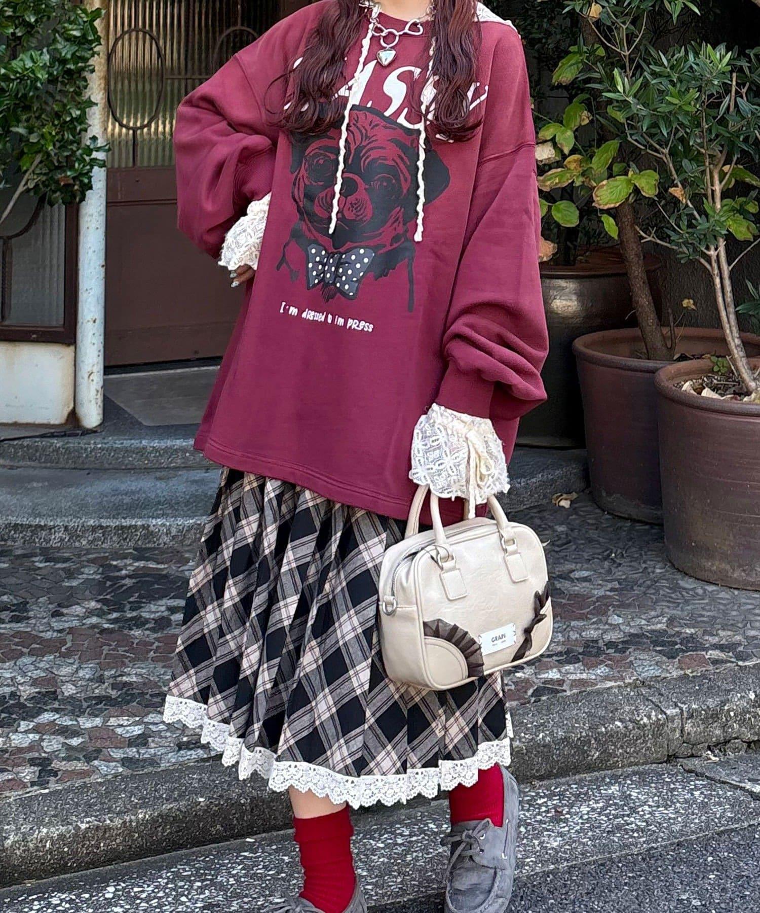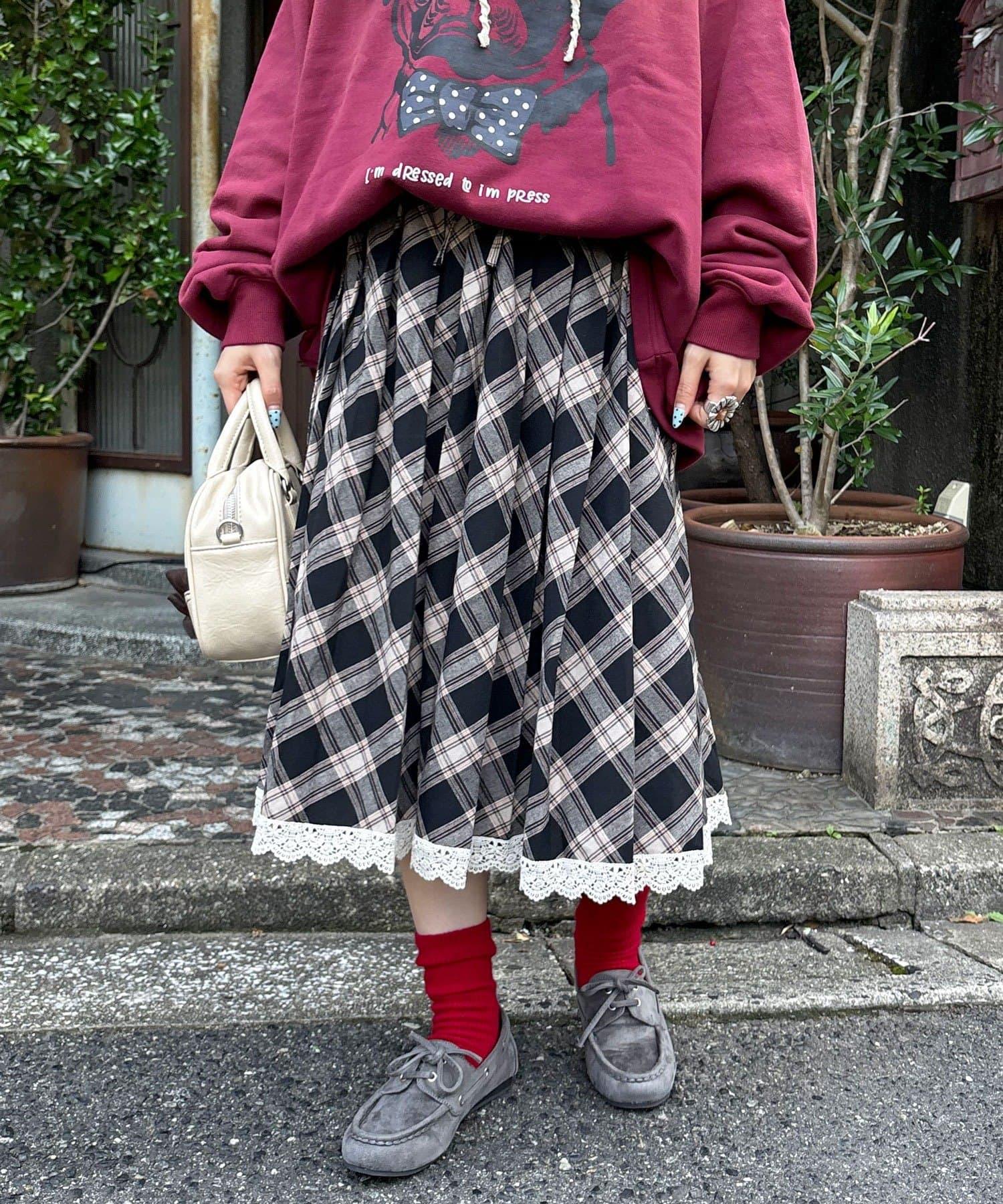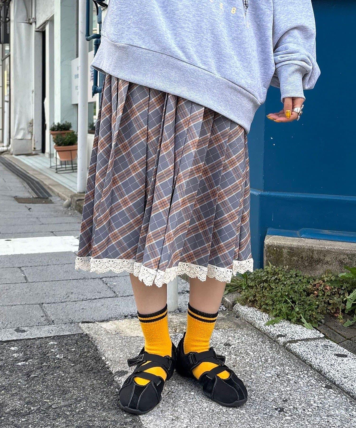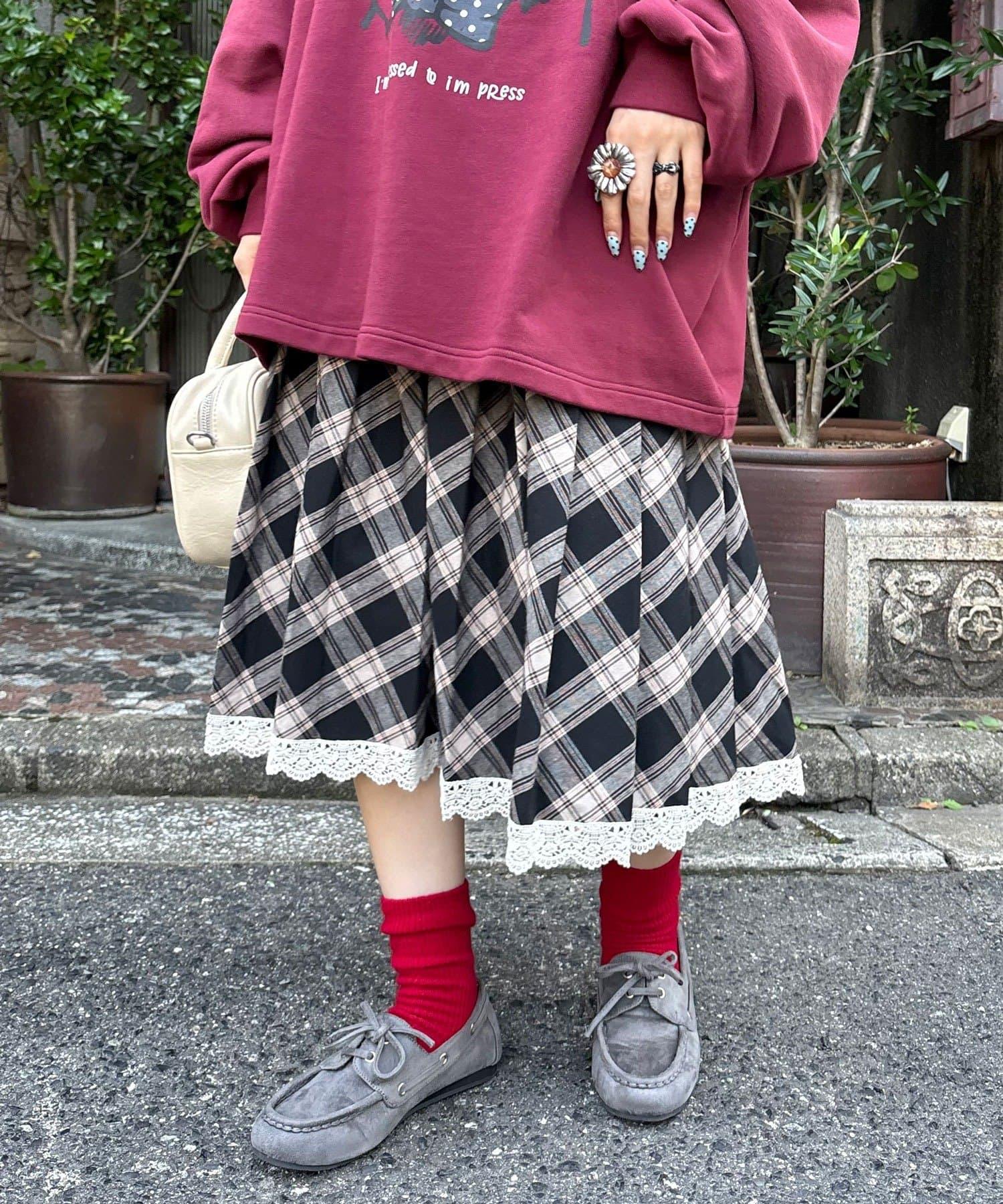【まるお(@_maruoo0___)企畫】下襬蕾絲格紋百褶裙