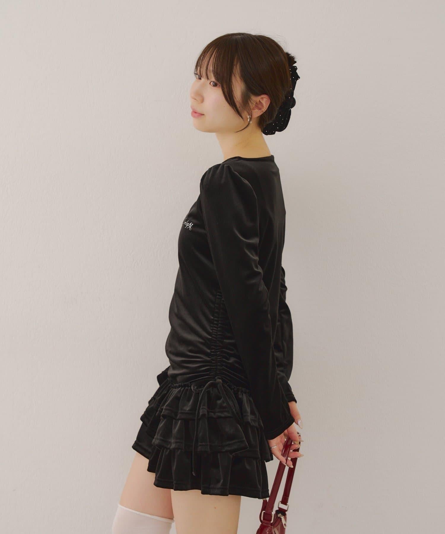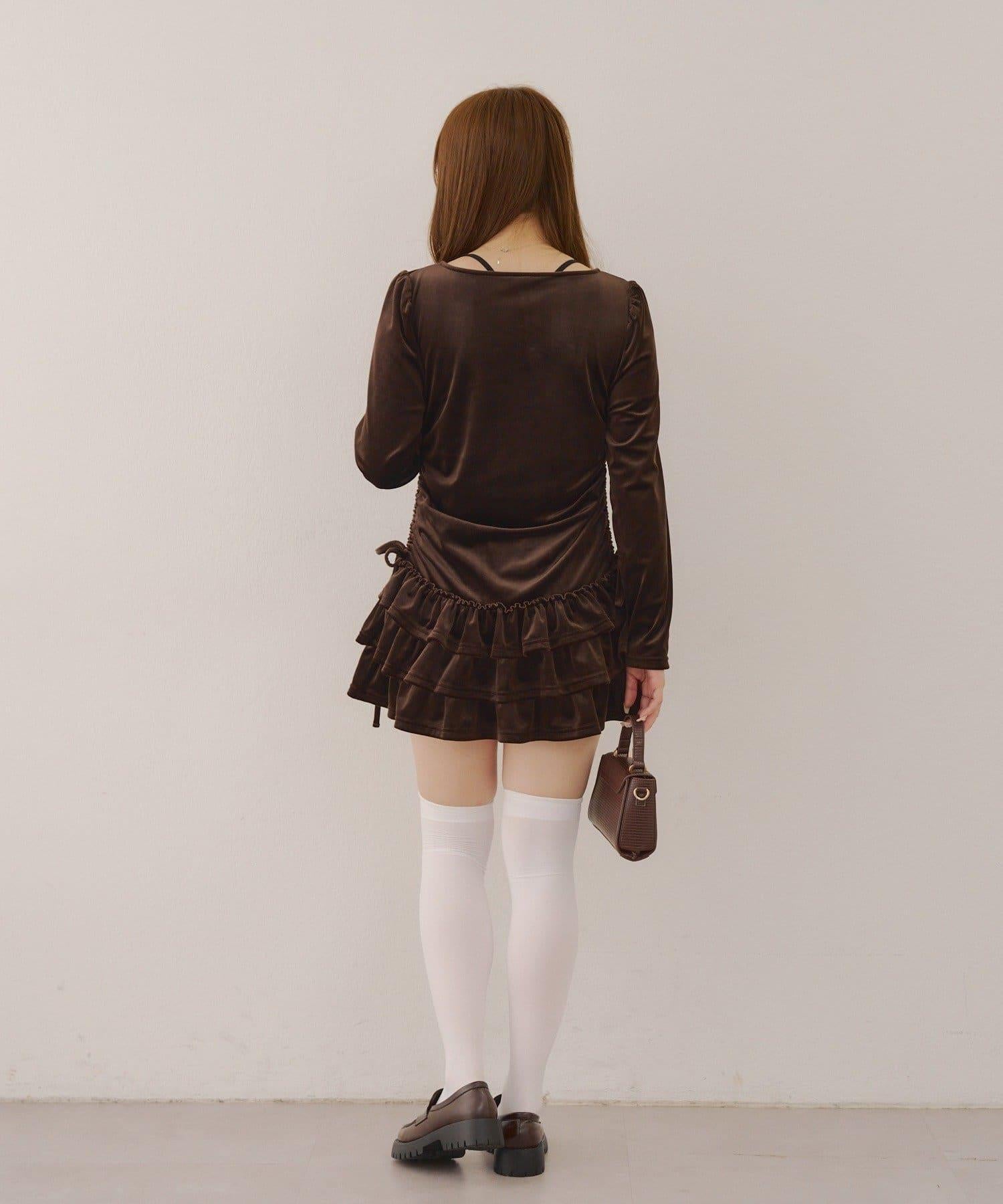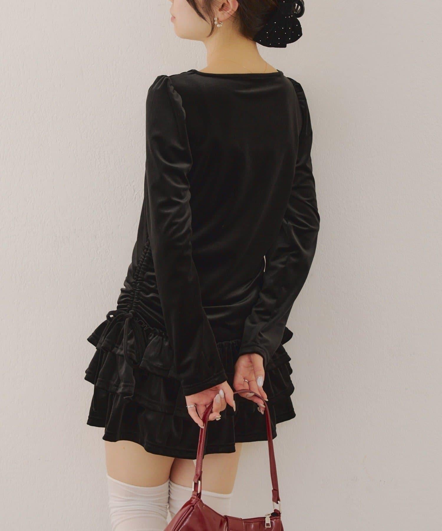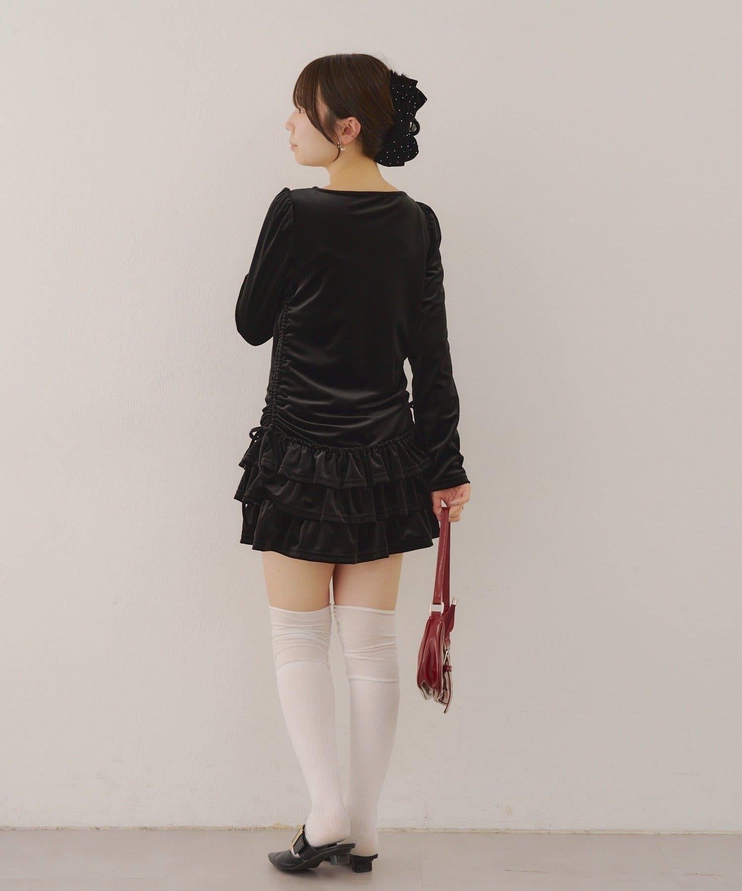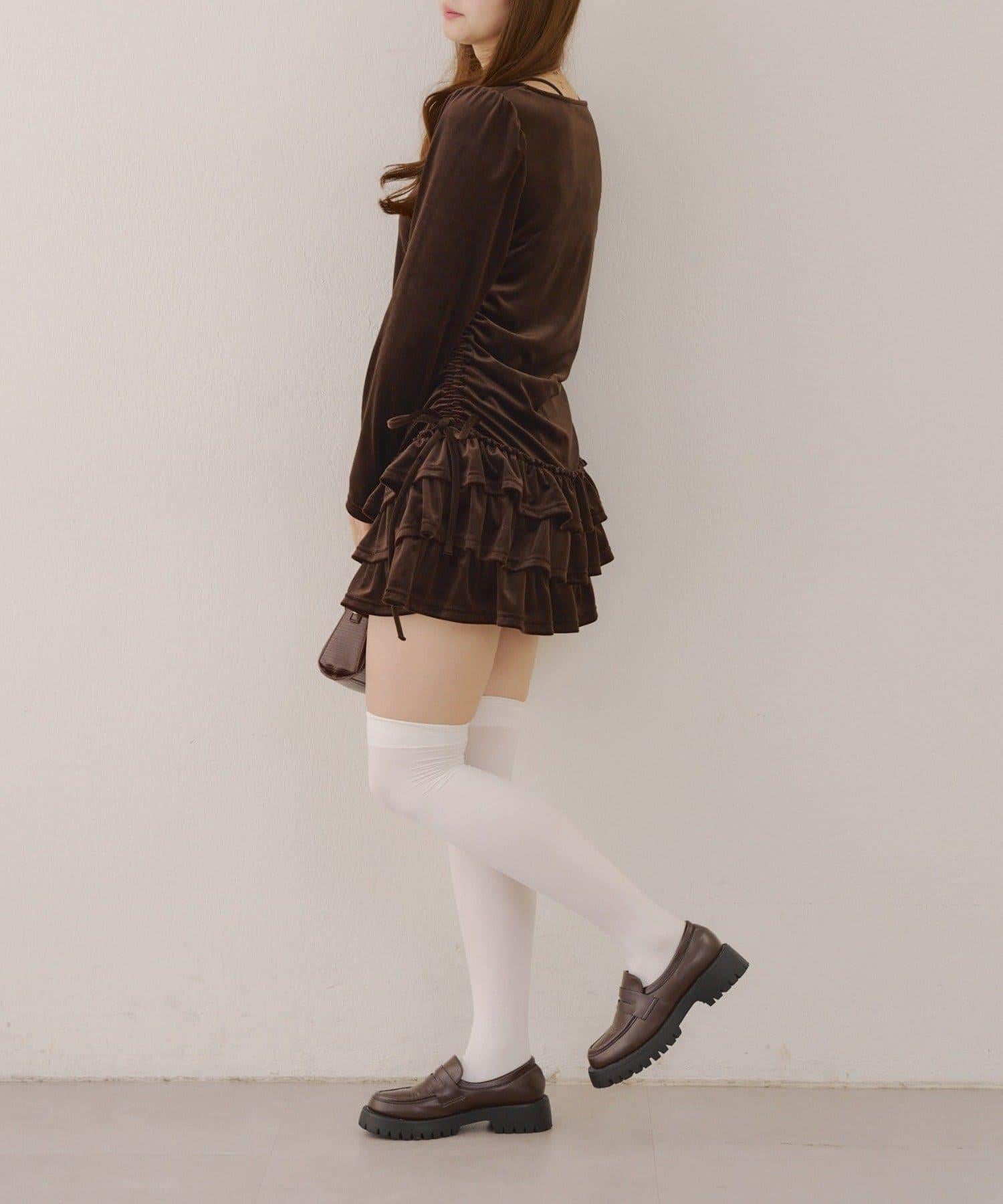 【めい@may_81oセレクト】天鵝絨下襬荷葉邊迷你連衣裙