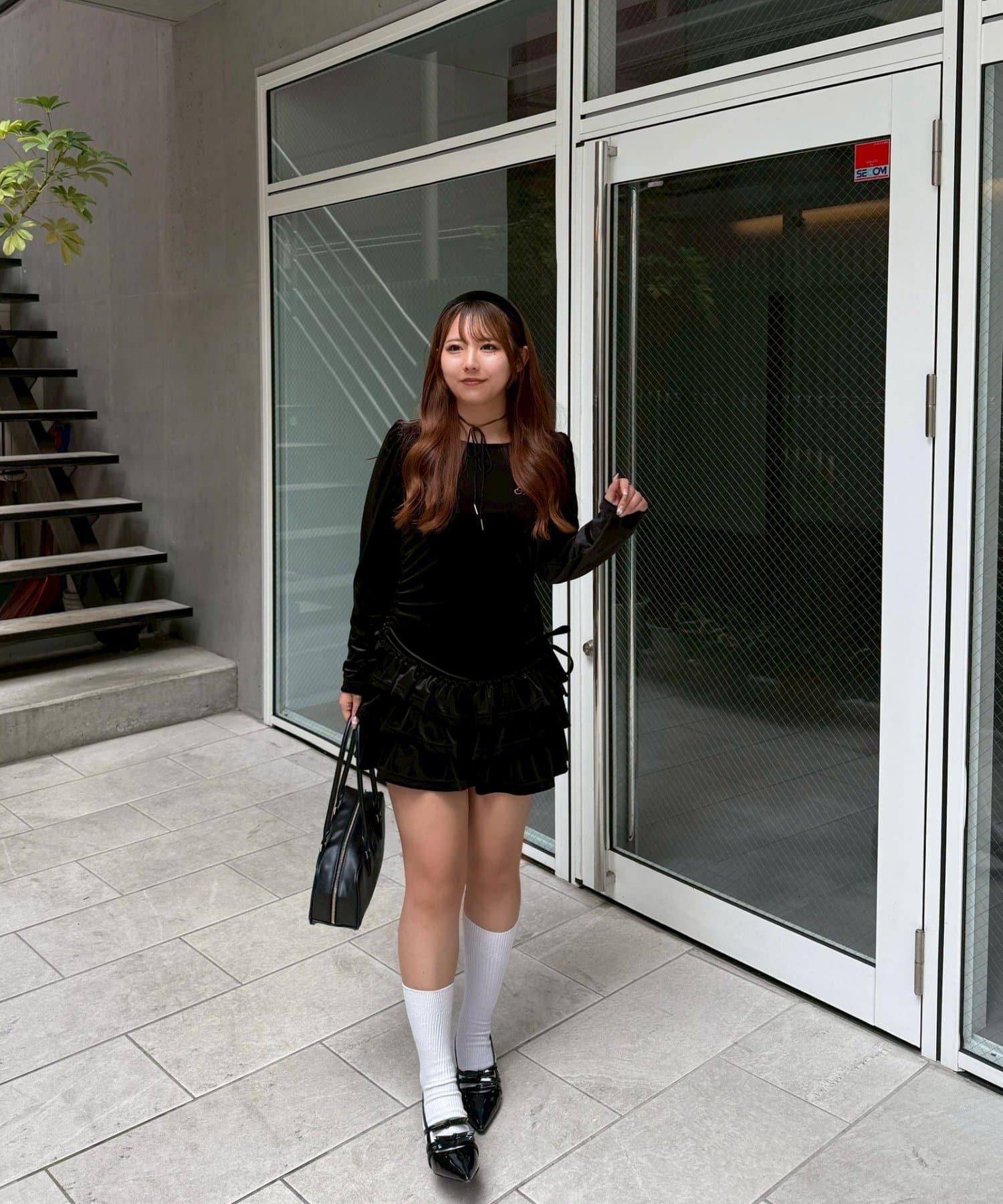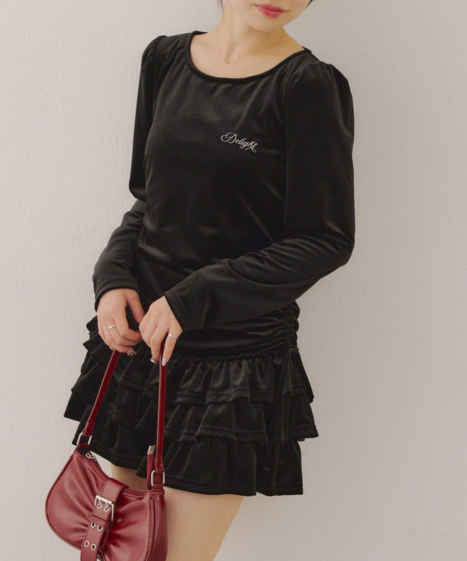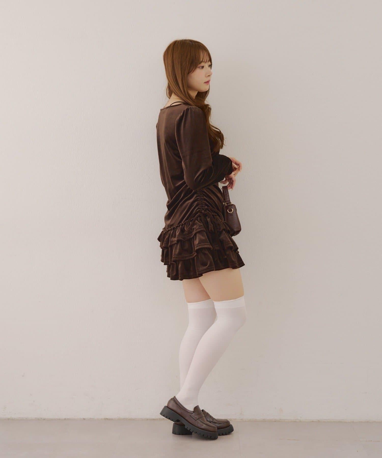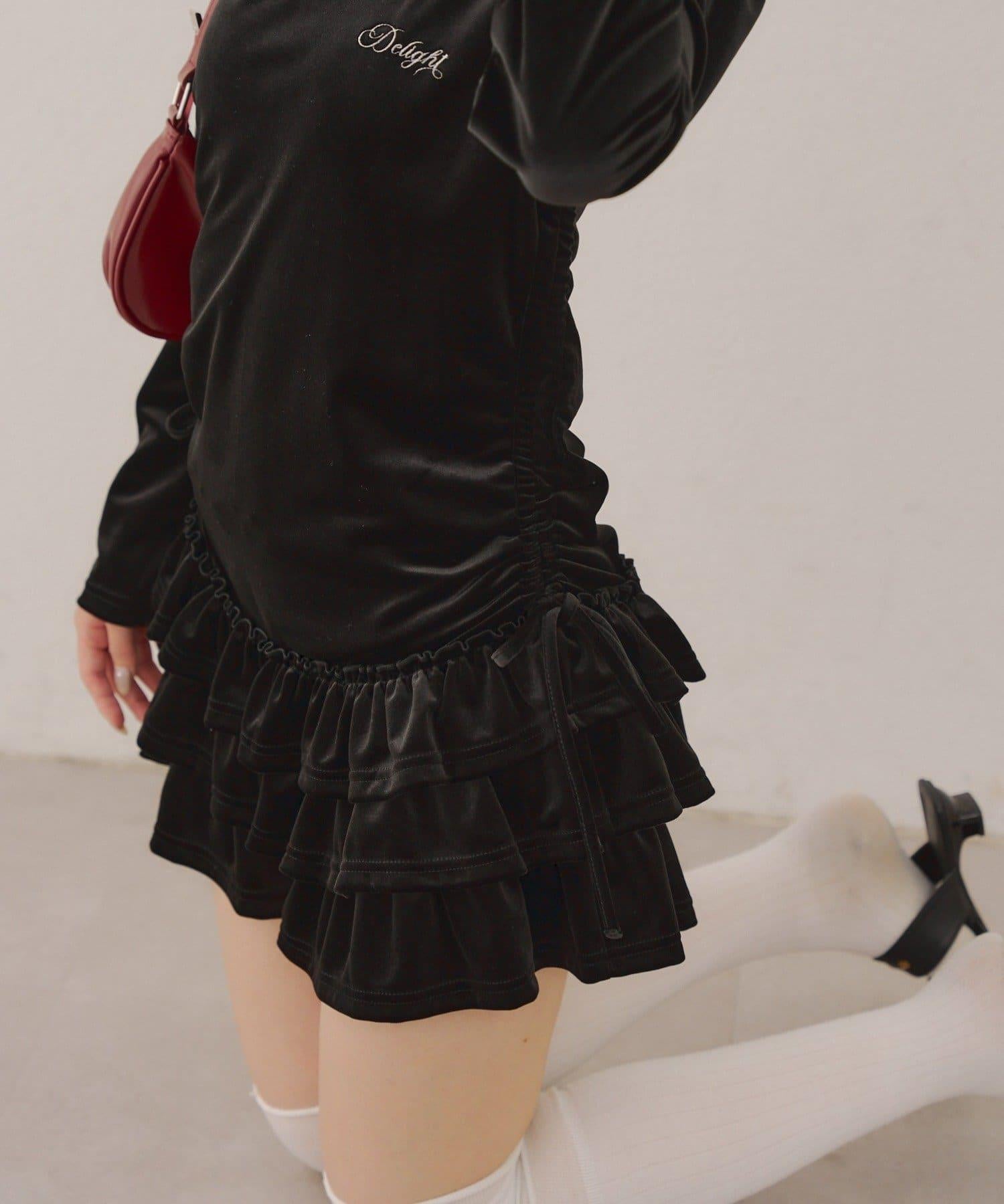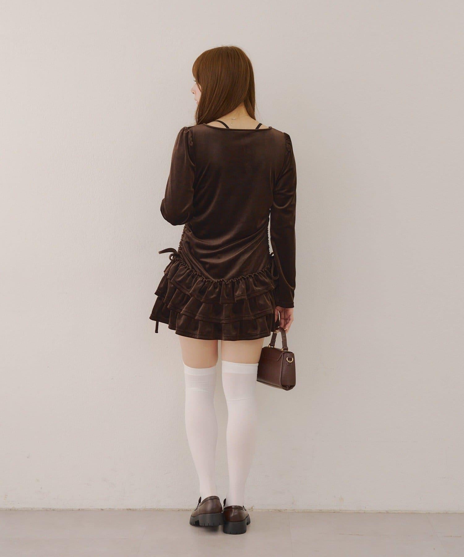 【めい@may_81oセレクト】天鵝絨下襬荷葉邊迷你連衣裙