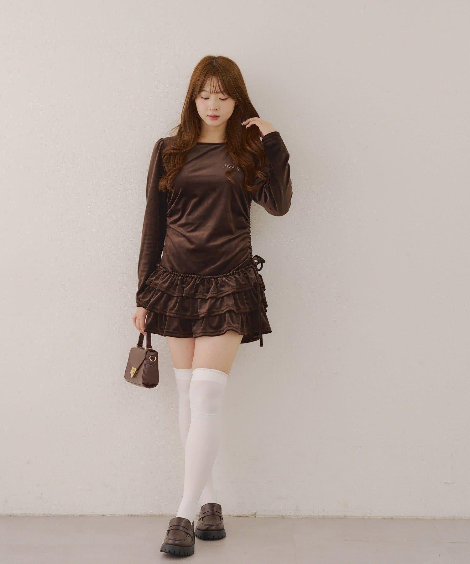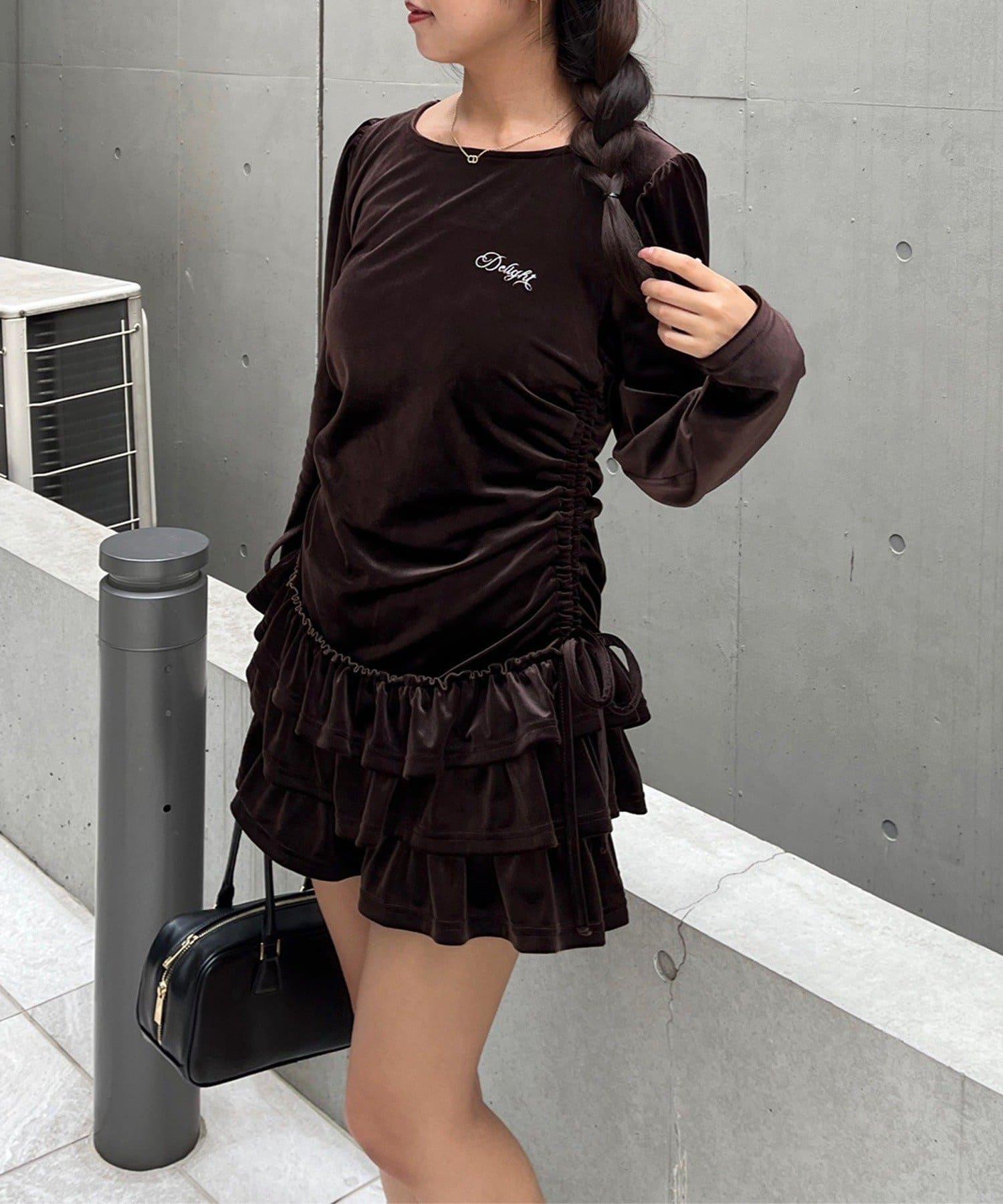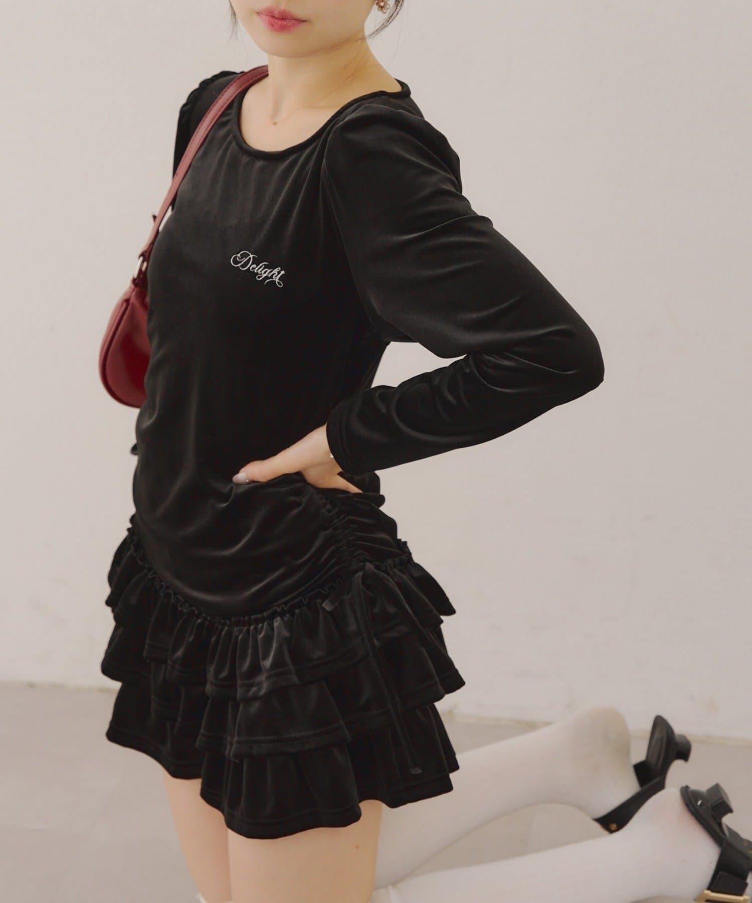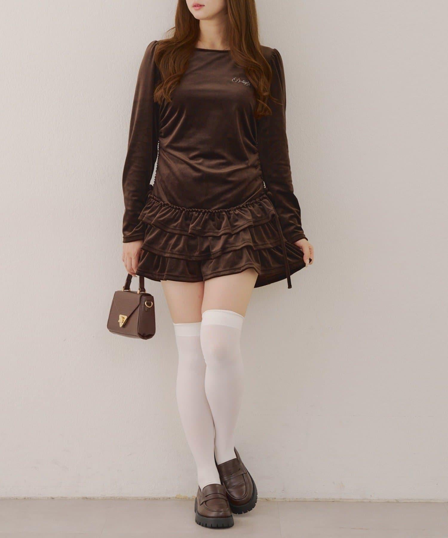 【めい@may_81oセレクト】天鵝絨下襬荷葉邊迷你連衣裙