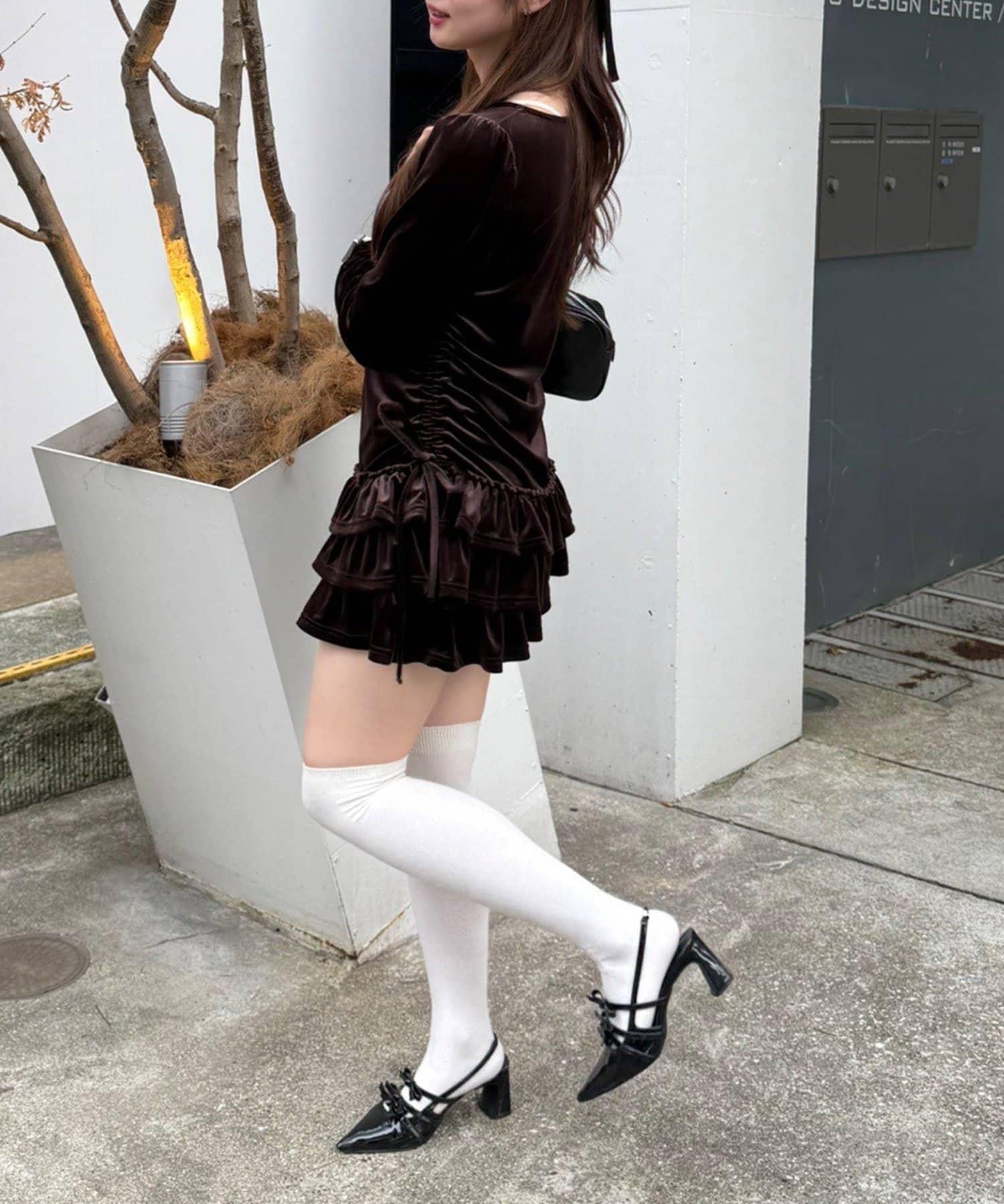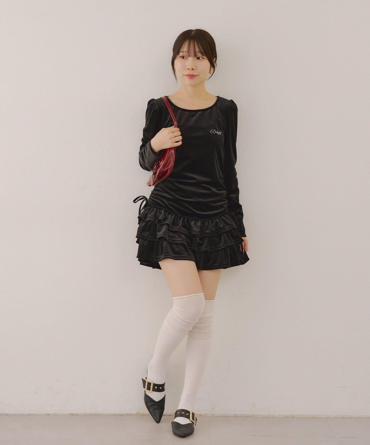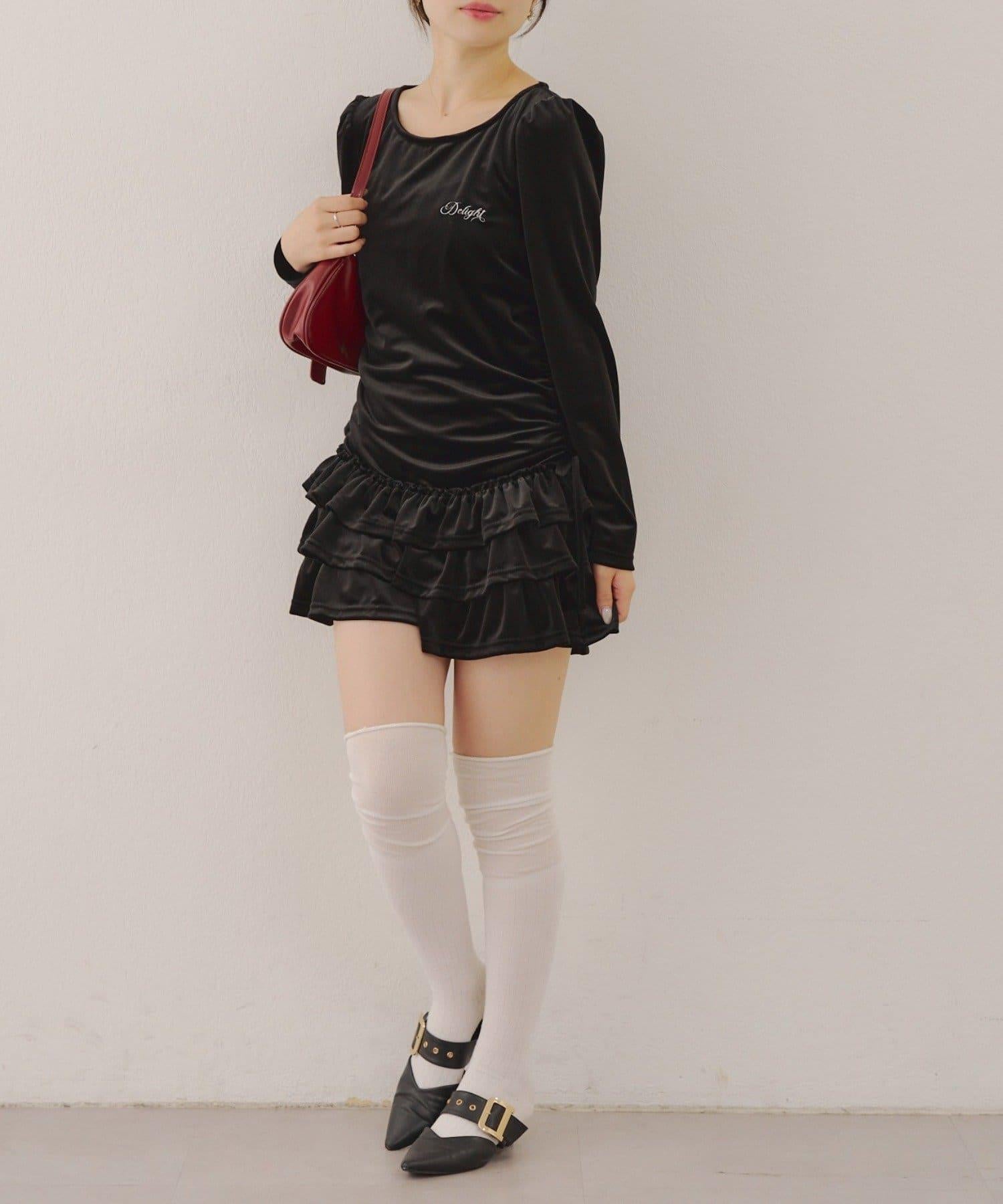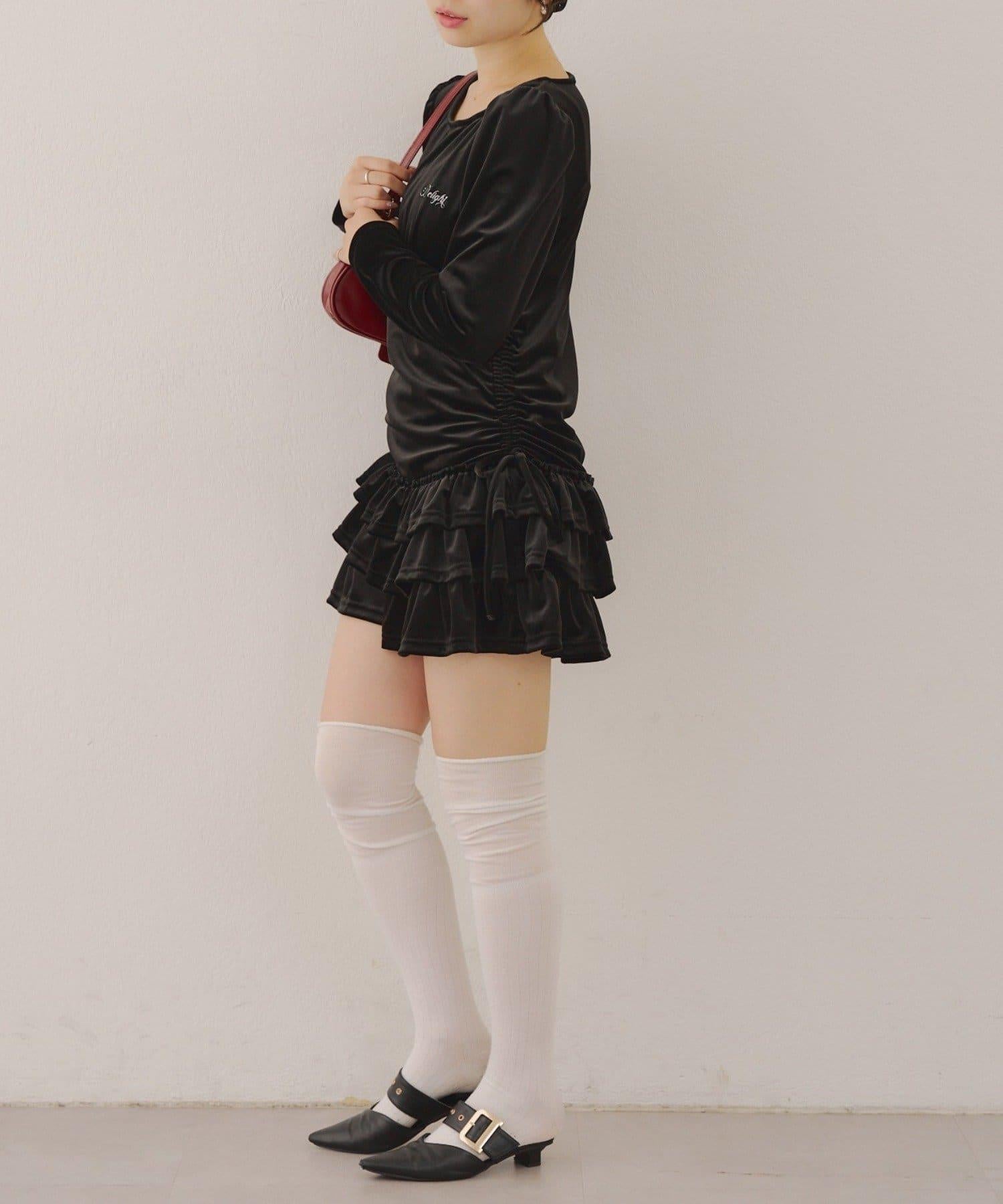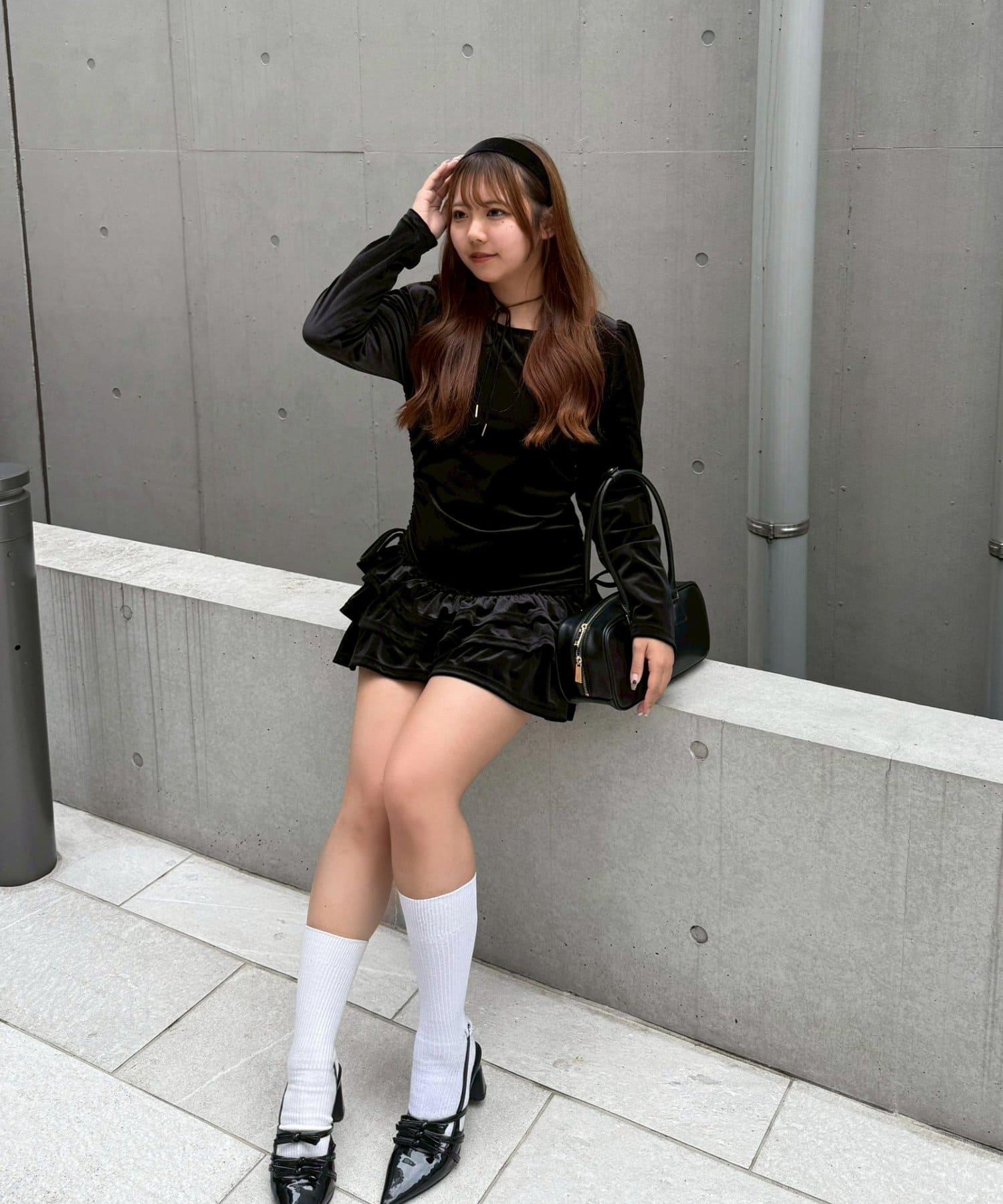 【めい@may_81oセレクト】天鵝絨下襬荷葉邊迷你連衣裙