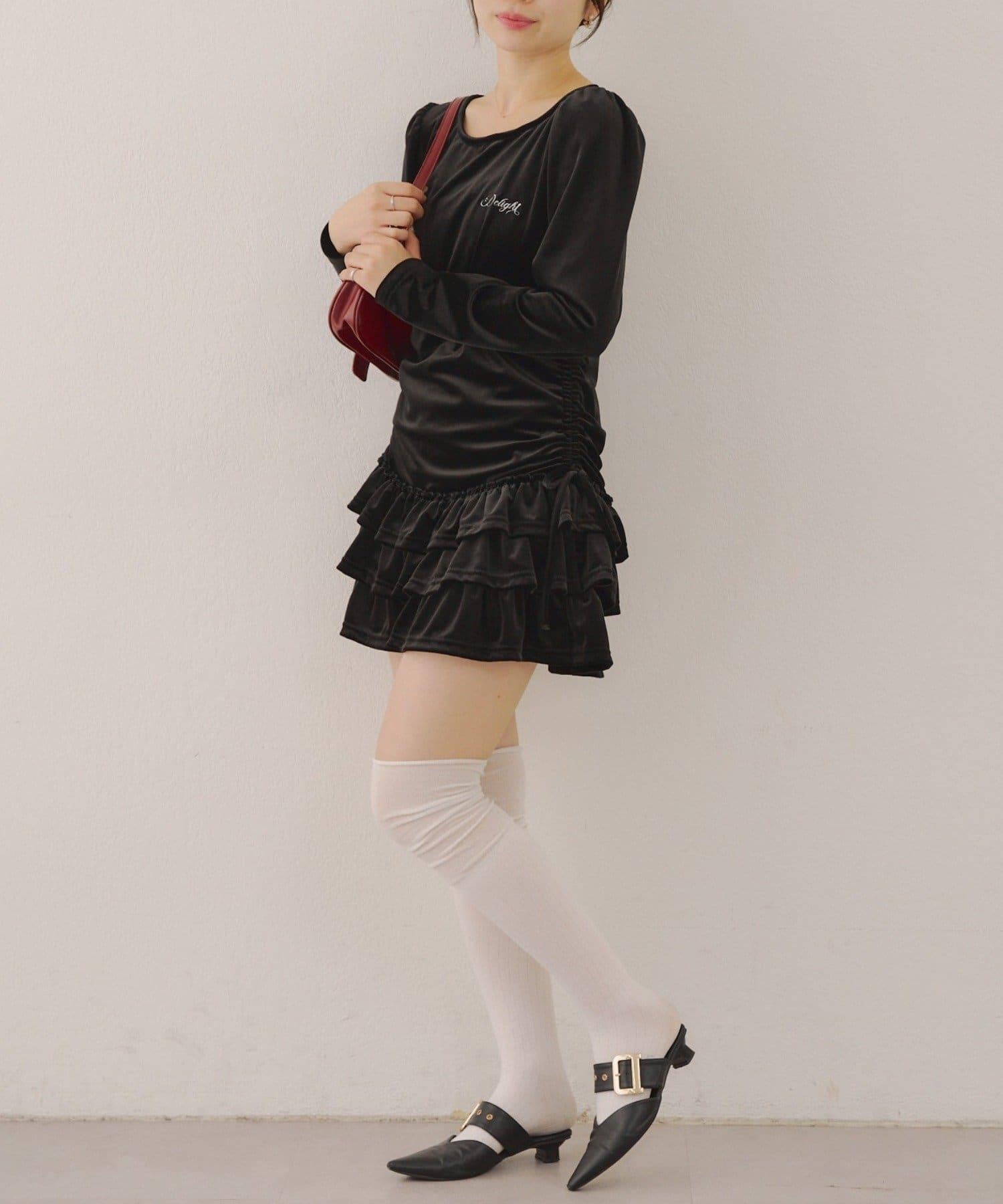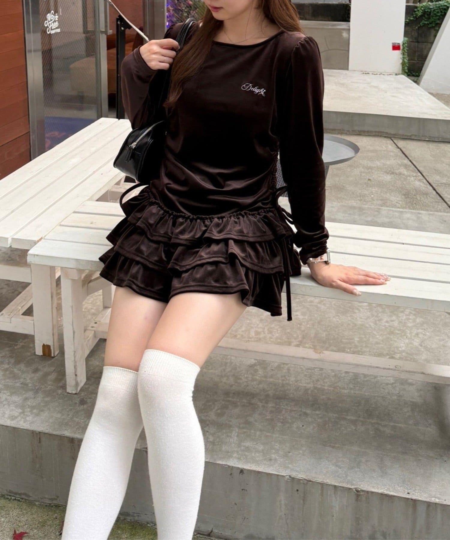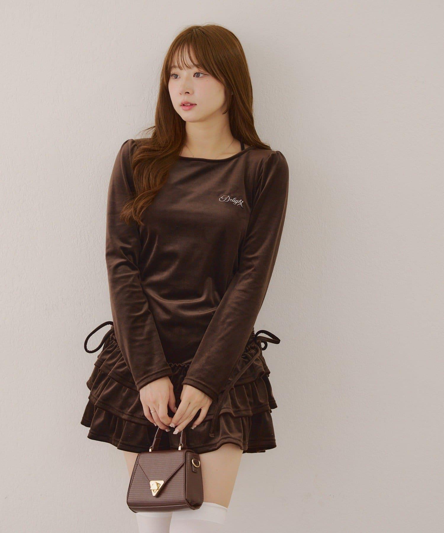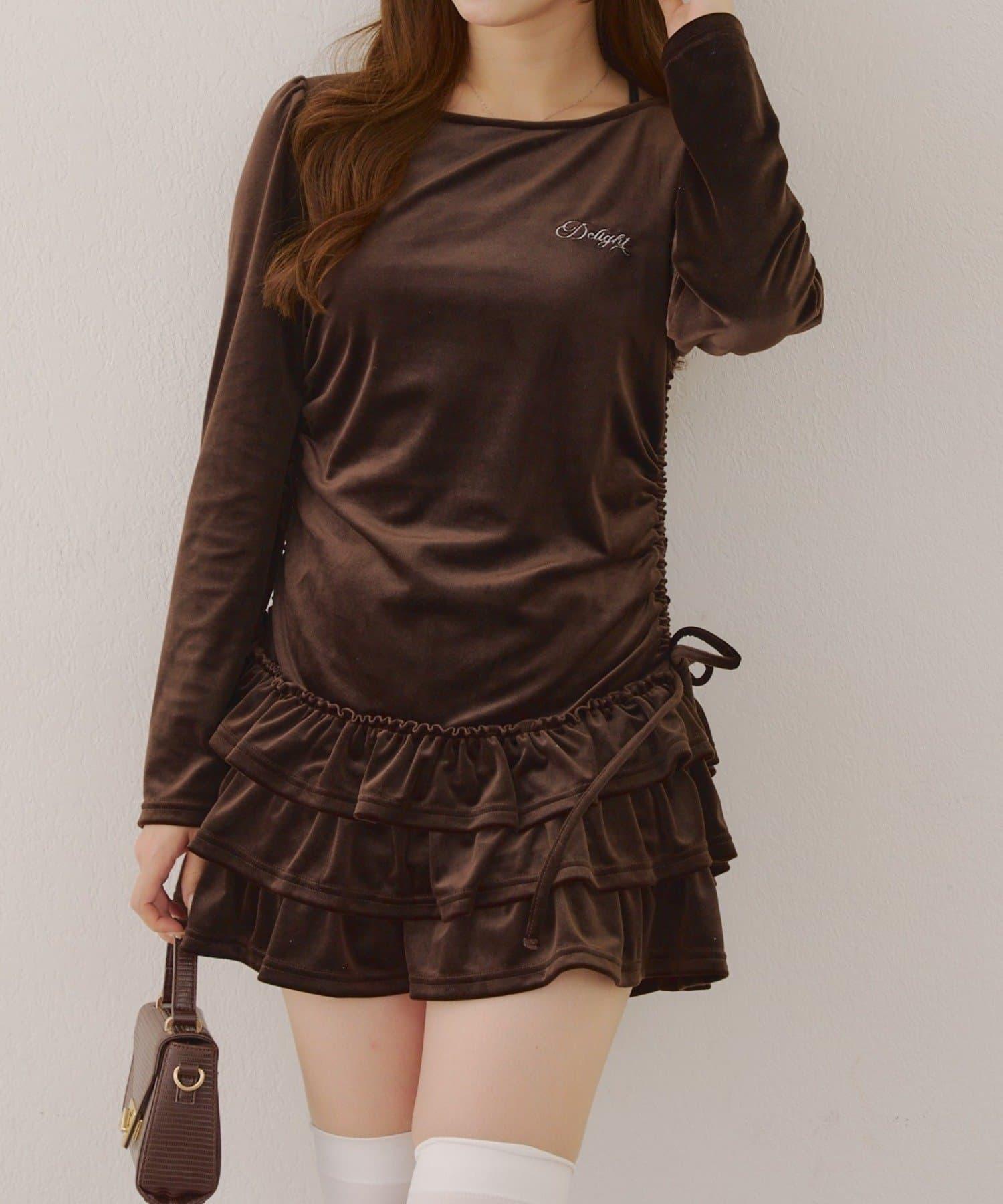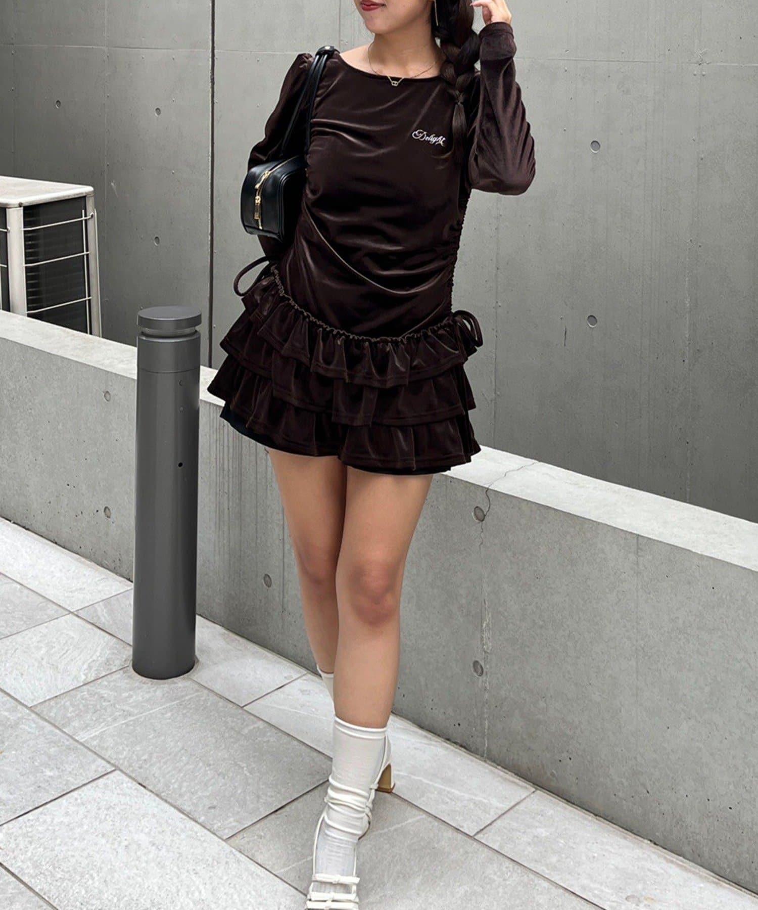 【めい@may_81oセレクト】天鵝絨下襬荷葉邊迷你連衣裙