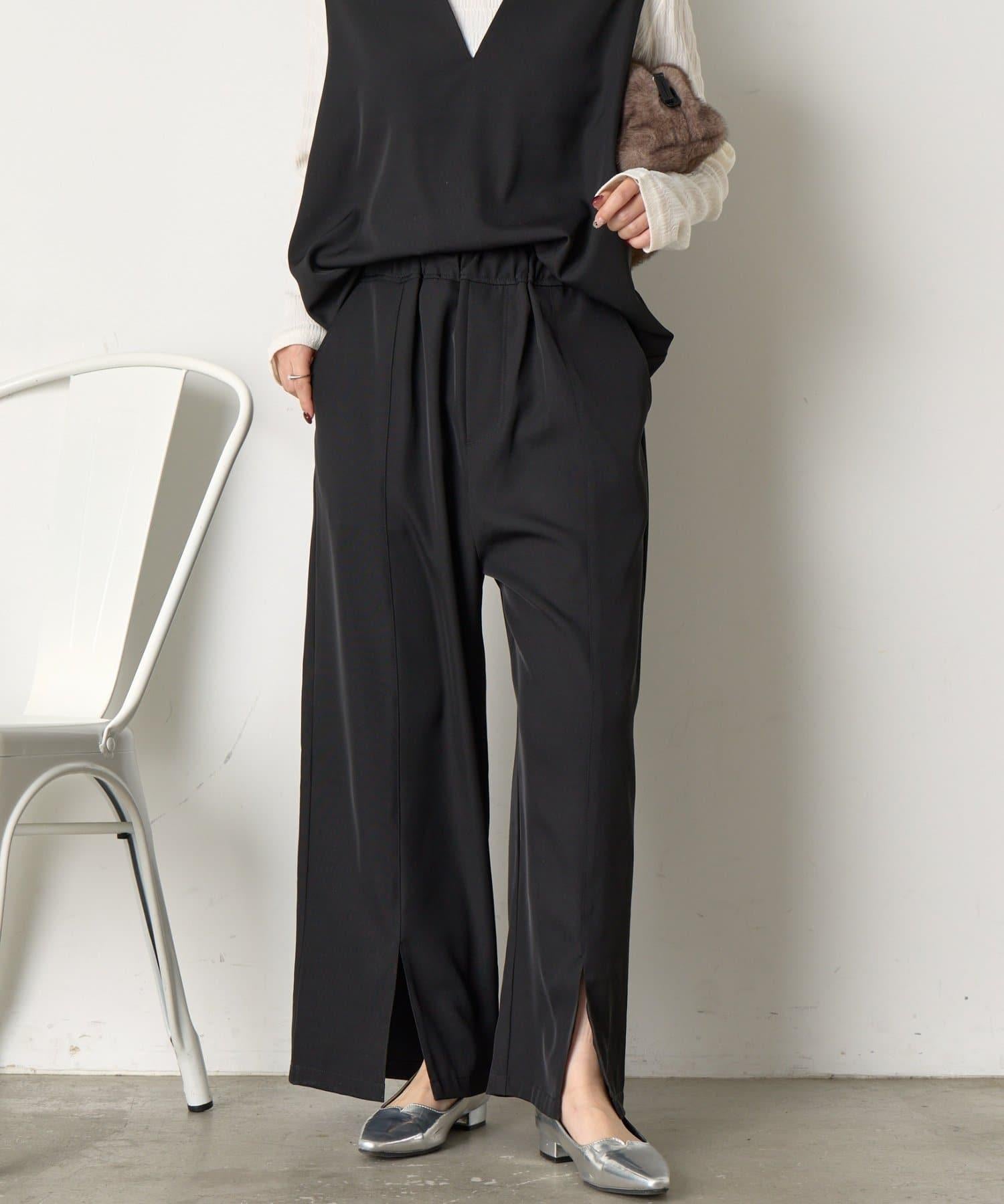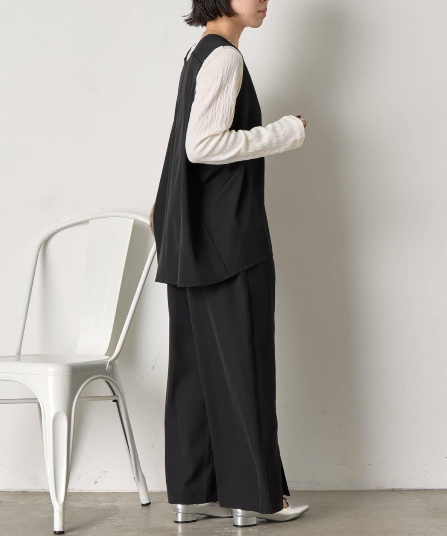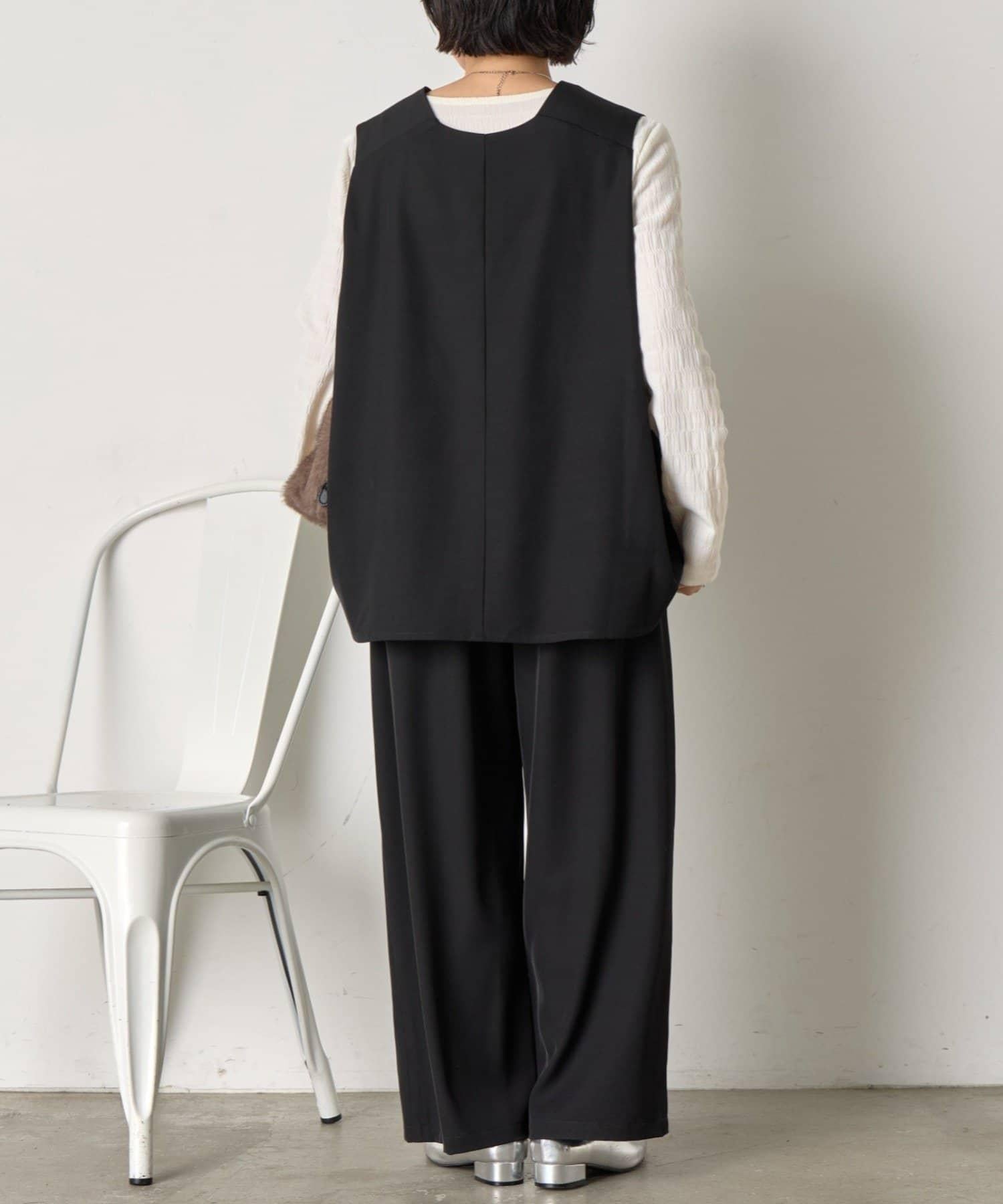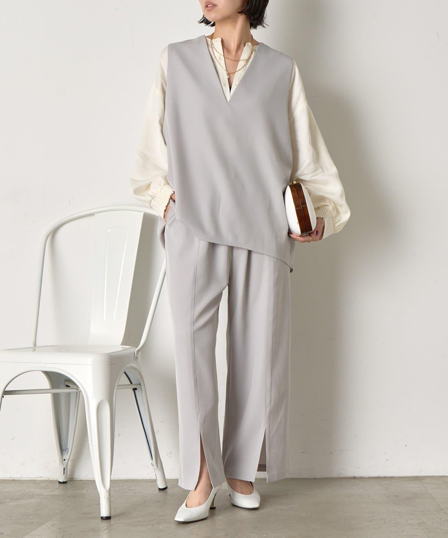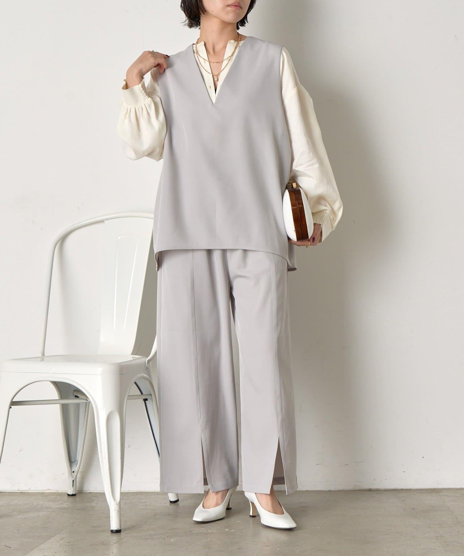 上衣採用深 V 領設計,廓形寬鬆,不挑身體線條。