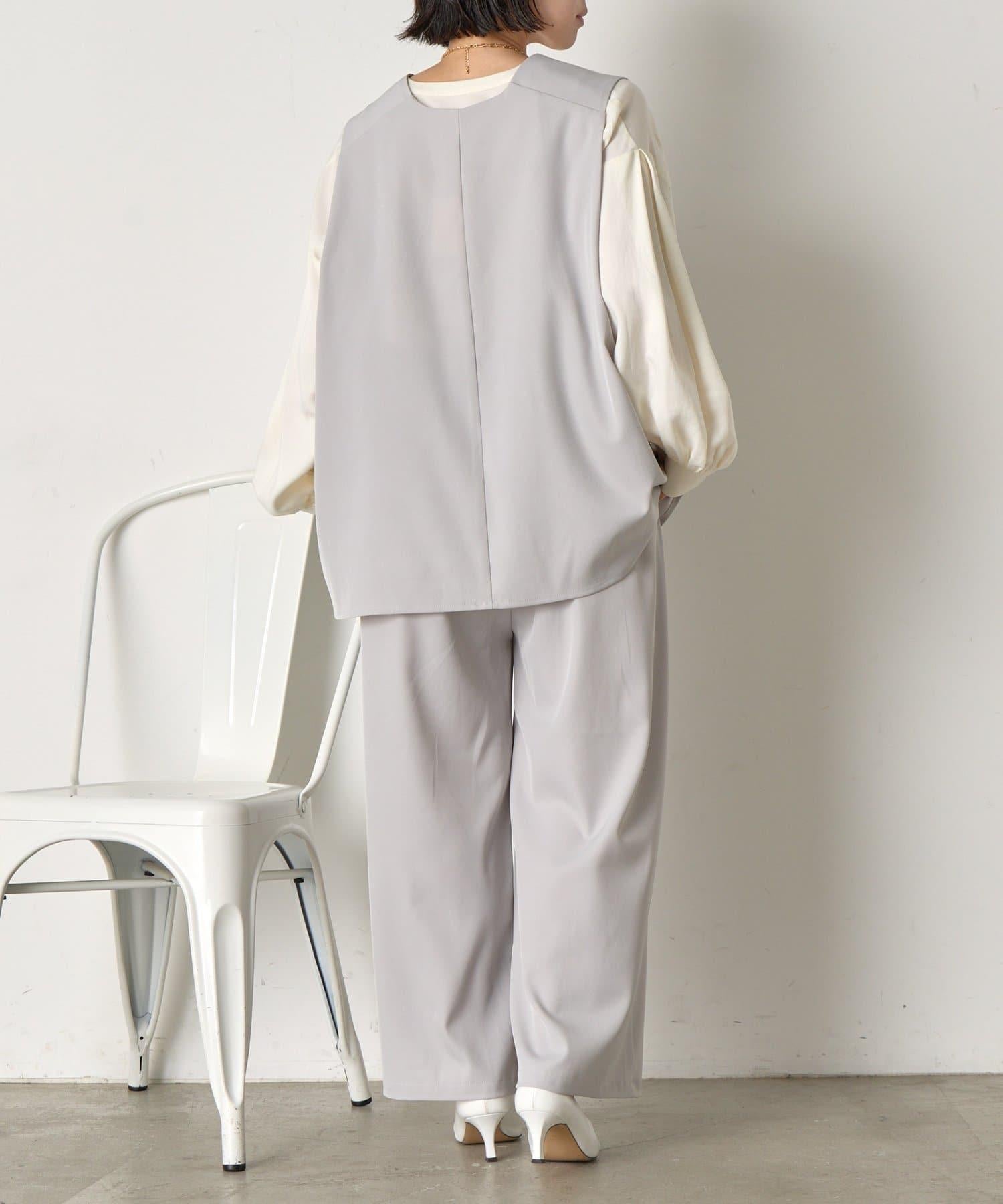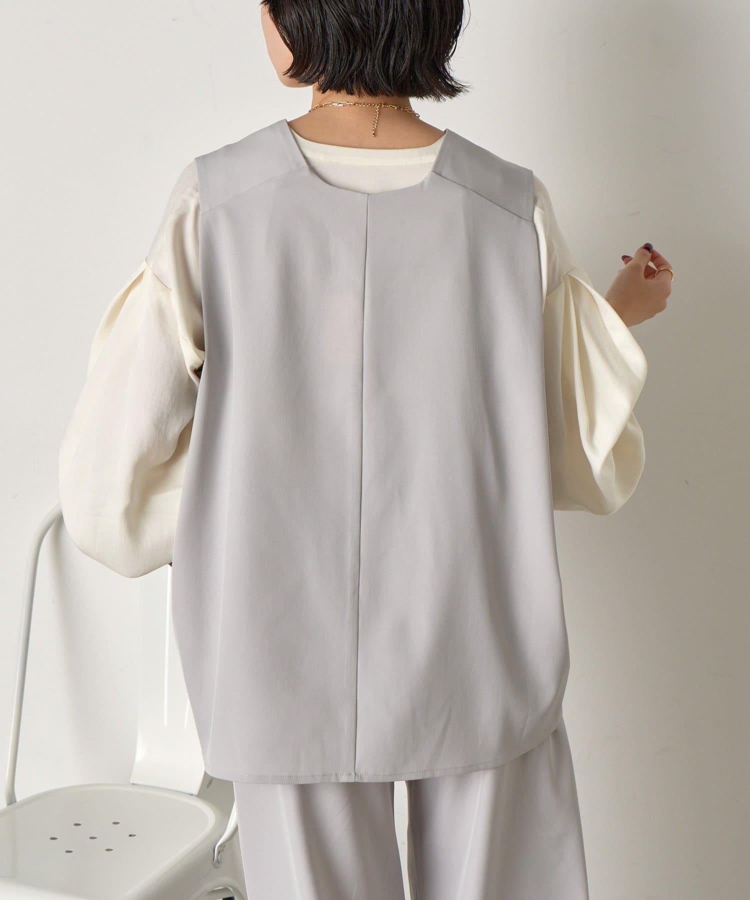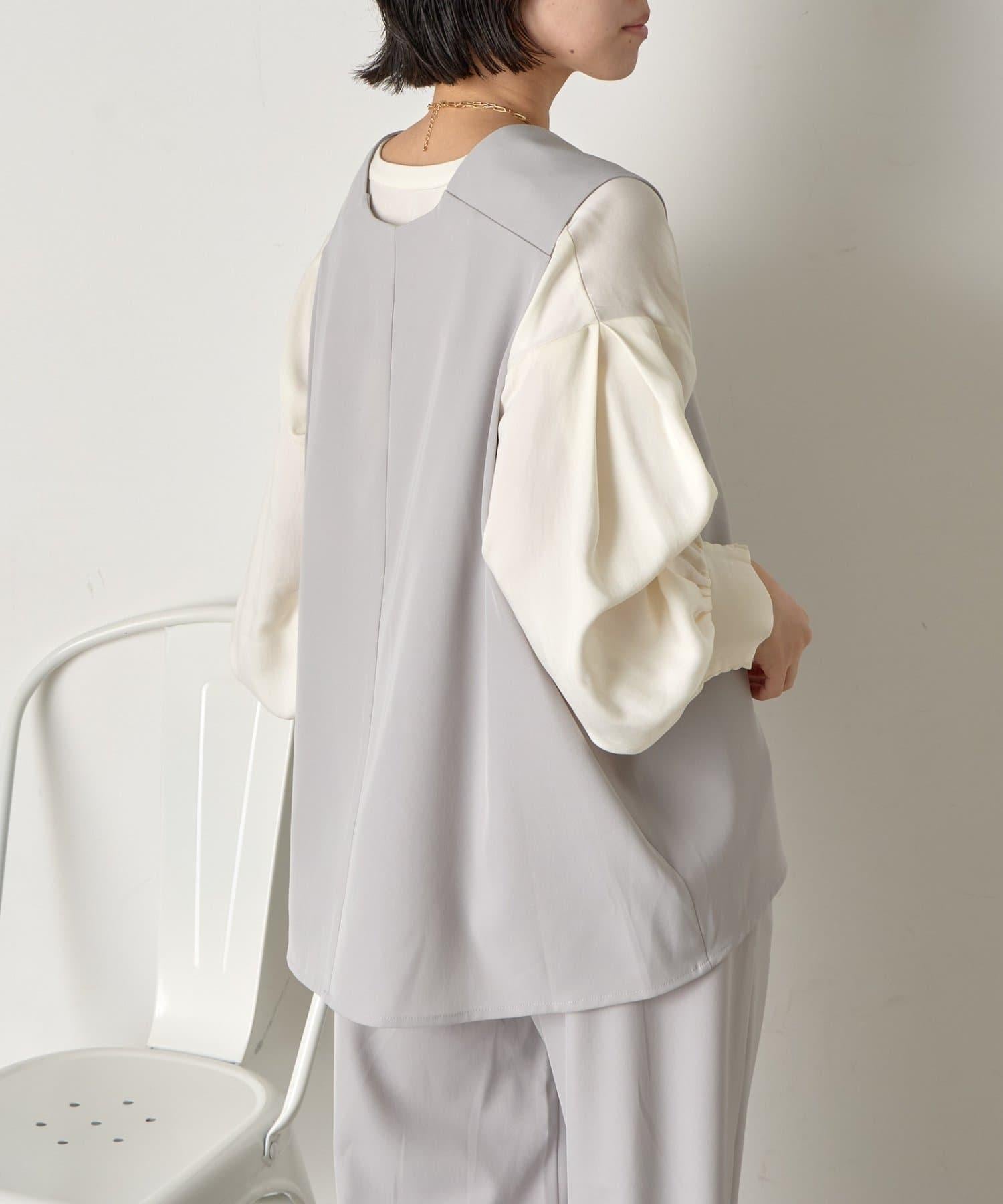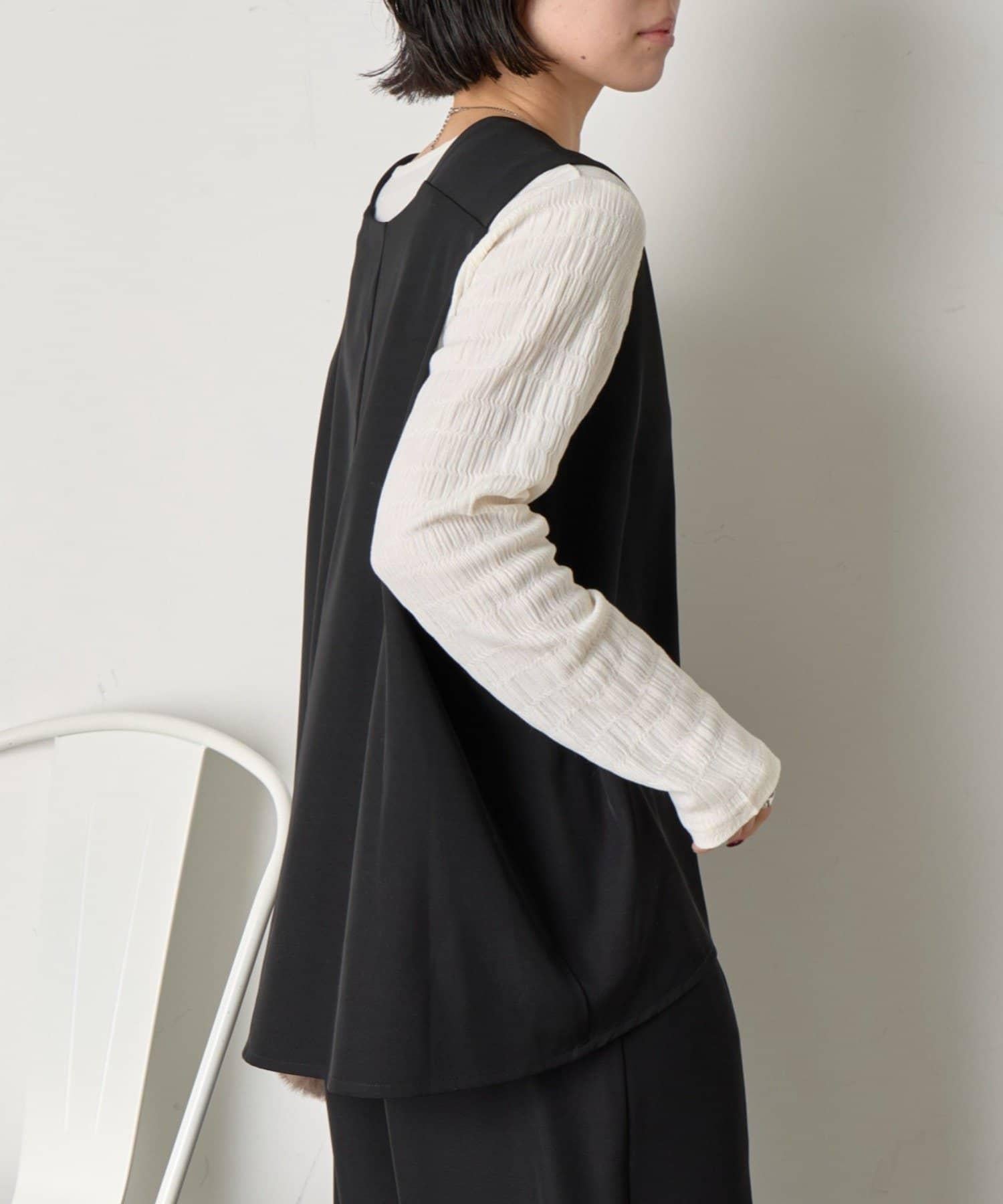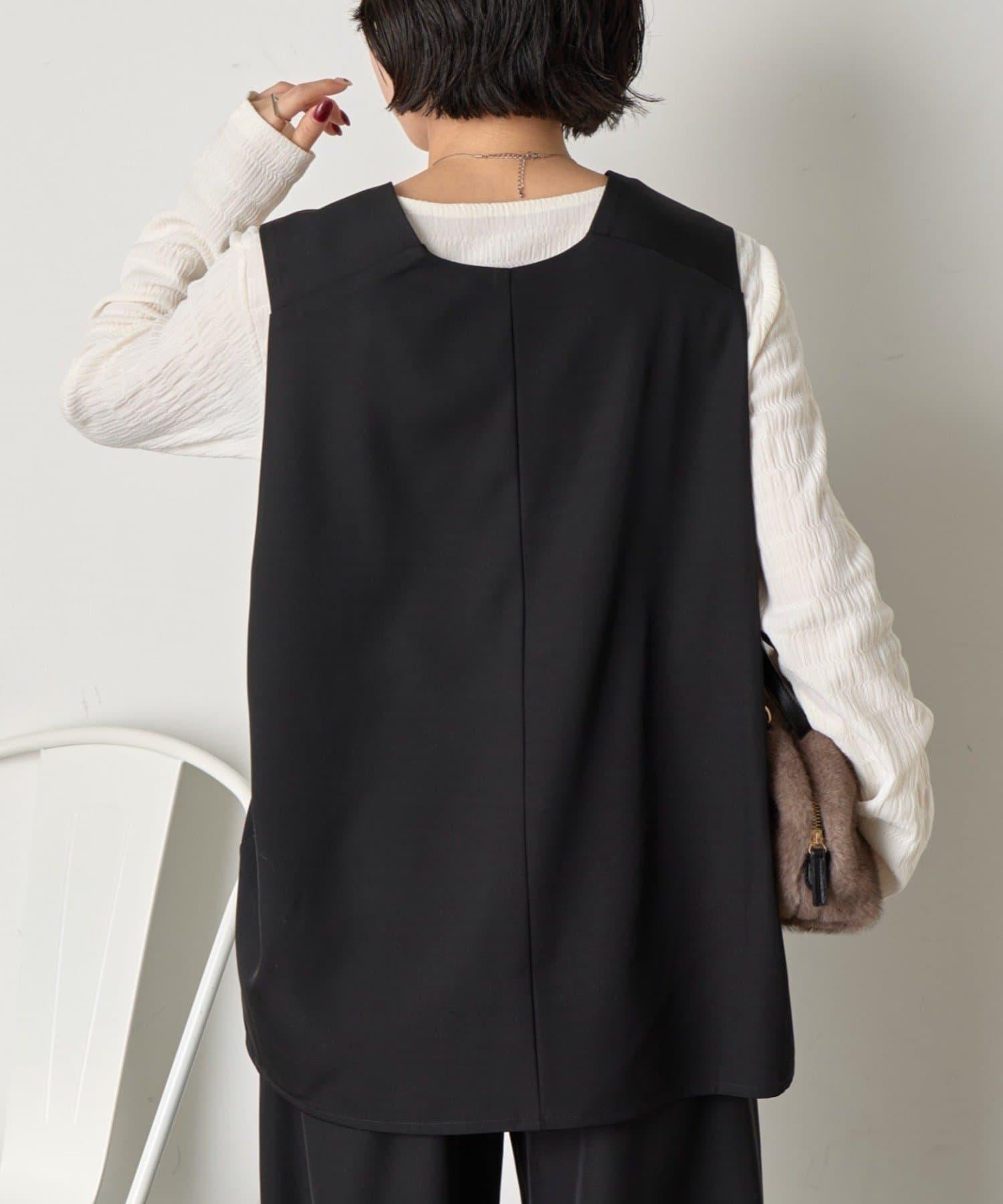 上衣採用深 V 領設計,頸部線條簡潔,版型寬鬆,不會勾勒出身體線條。