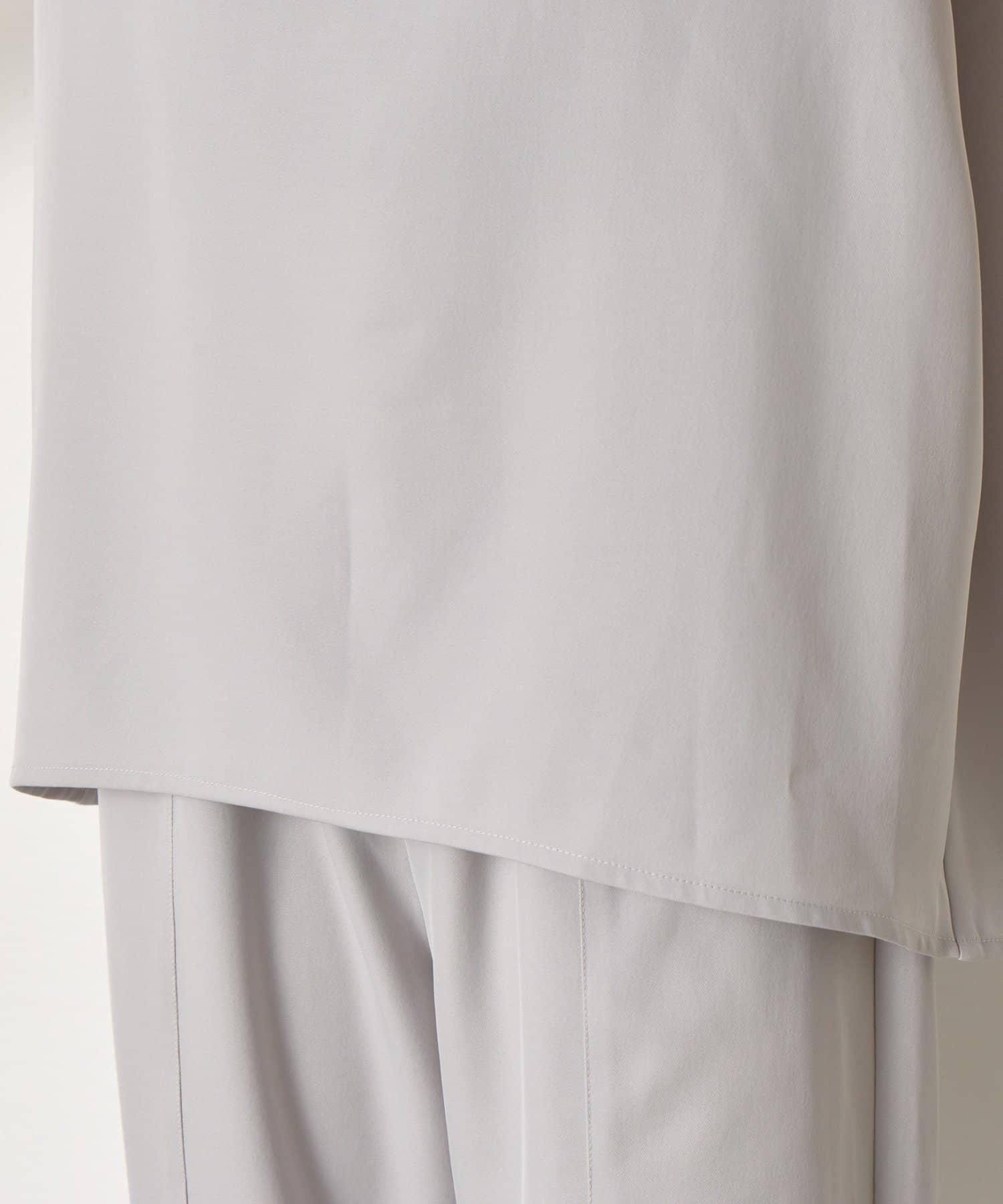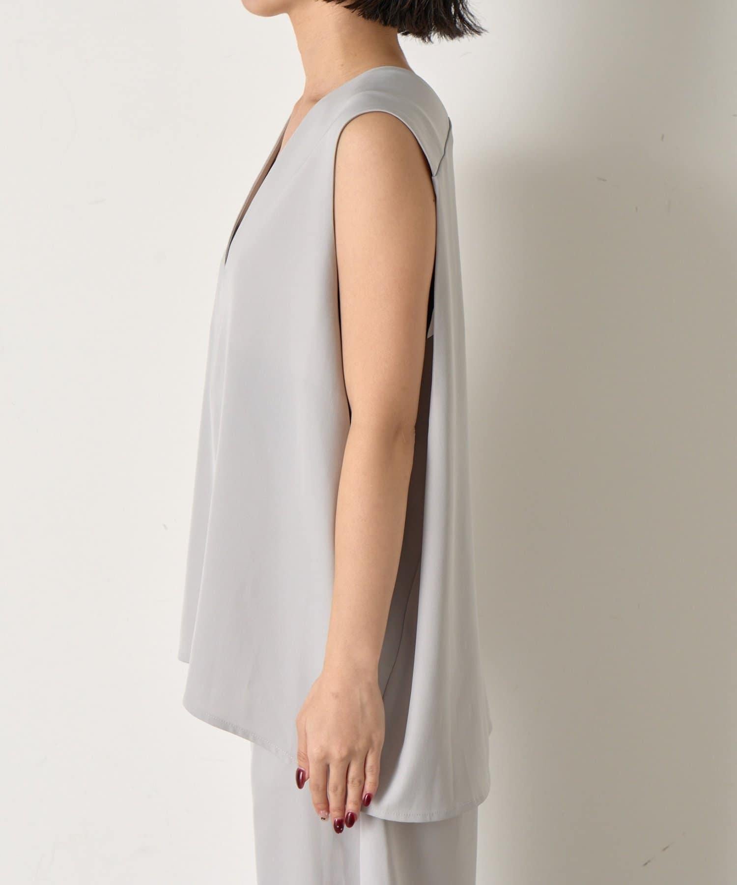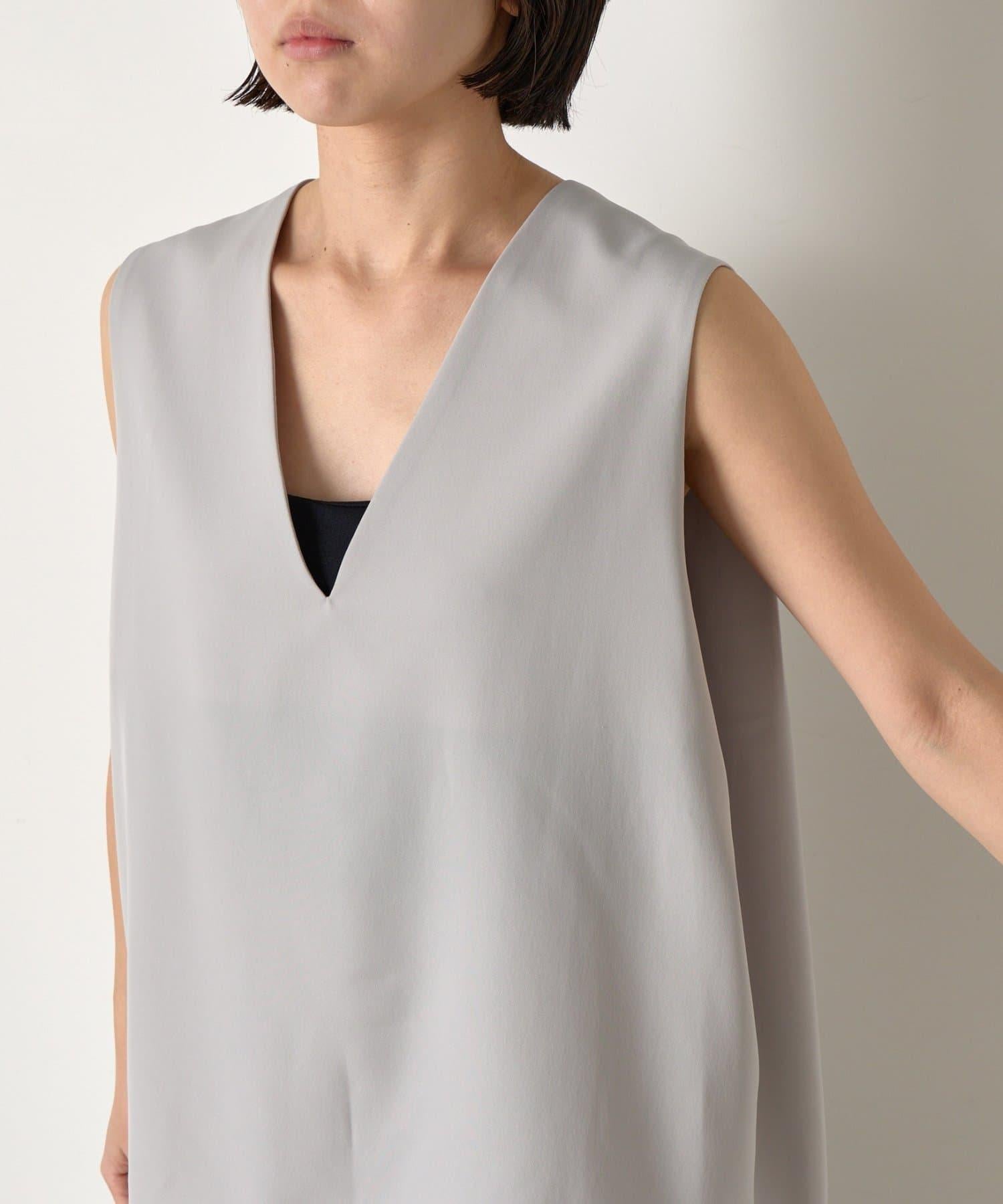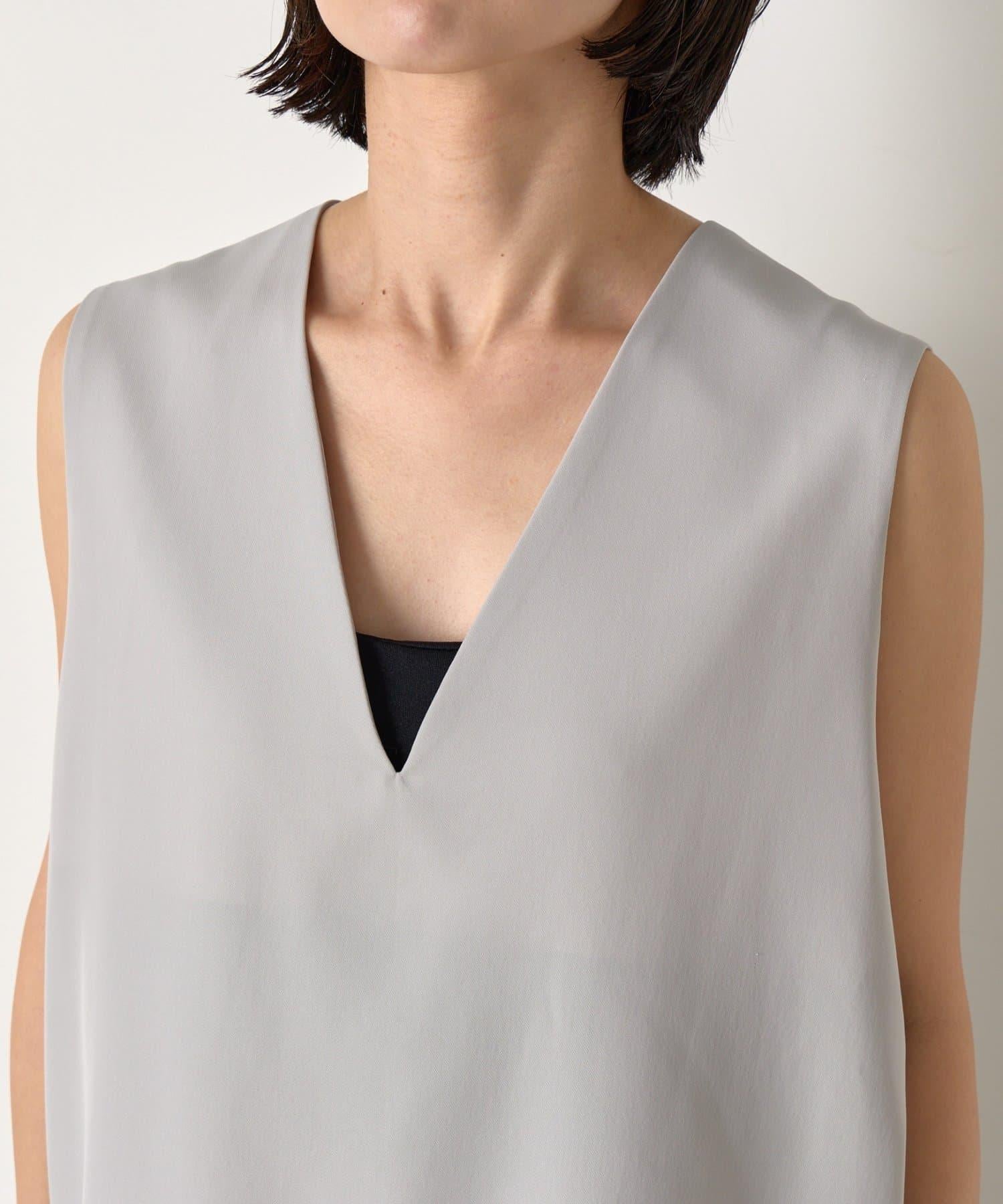 上衣採用深 V 領設計,使頸部看起來更簡潔,寬鬆的剪裁不會勾勒出身體線條。