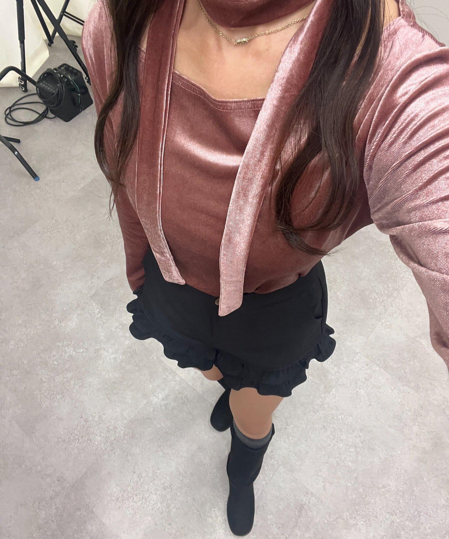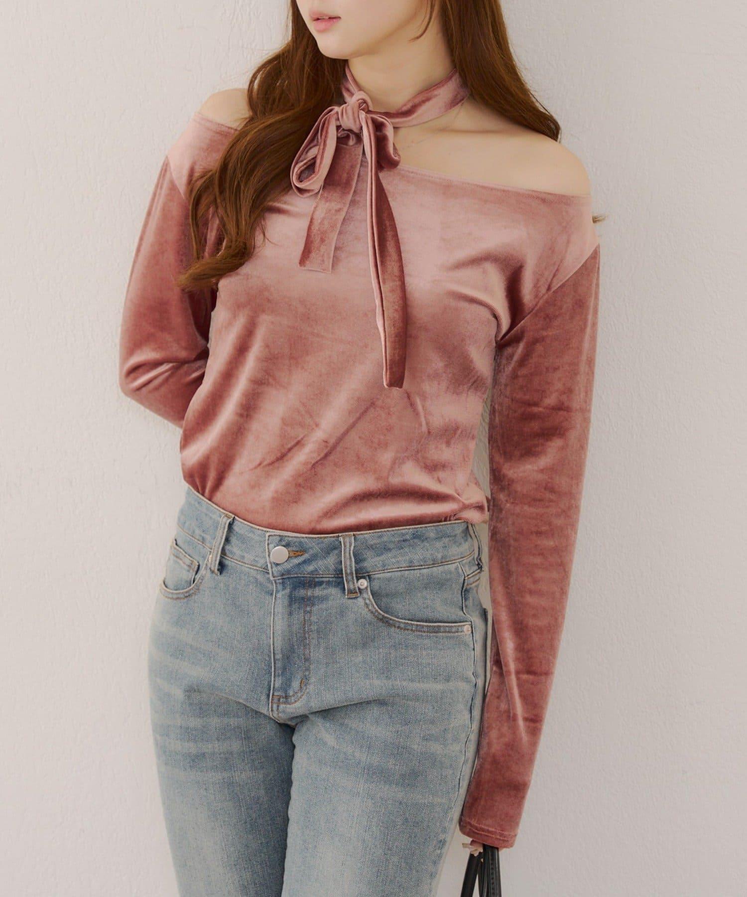 一款帶有choker的上衣,可作為單肩或露肩上衣穿著!