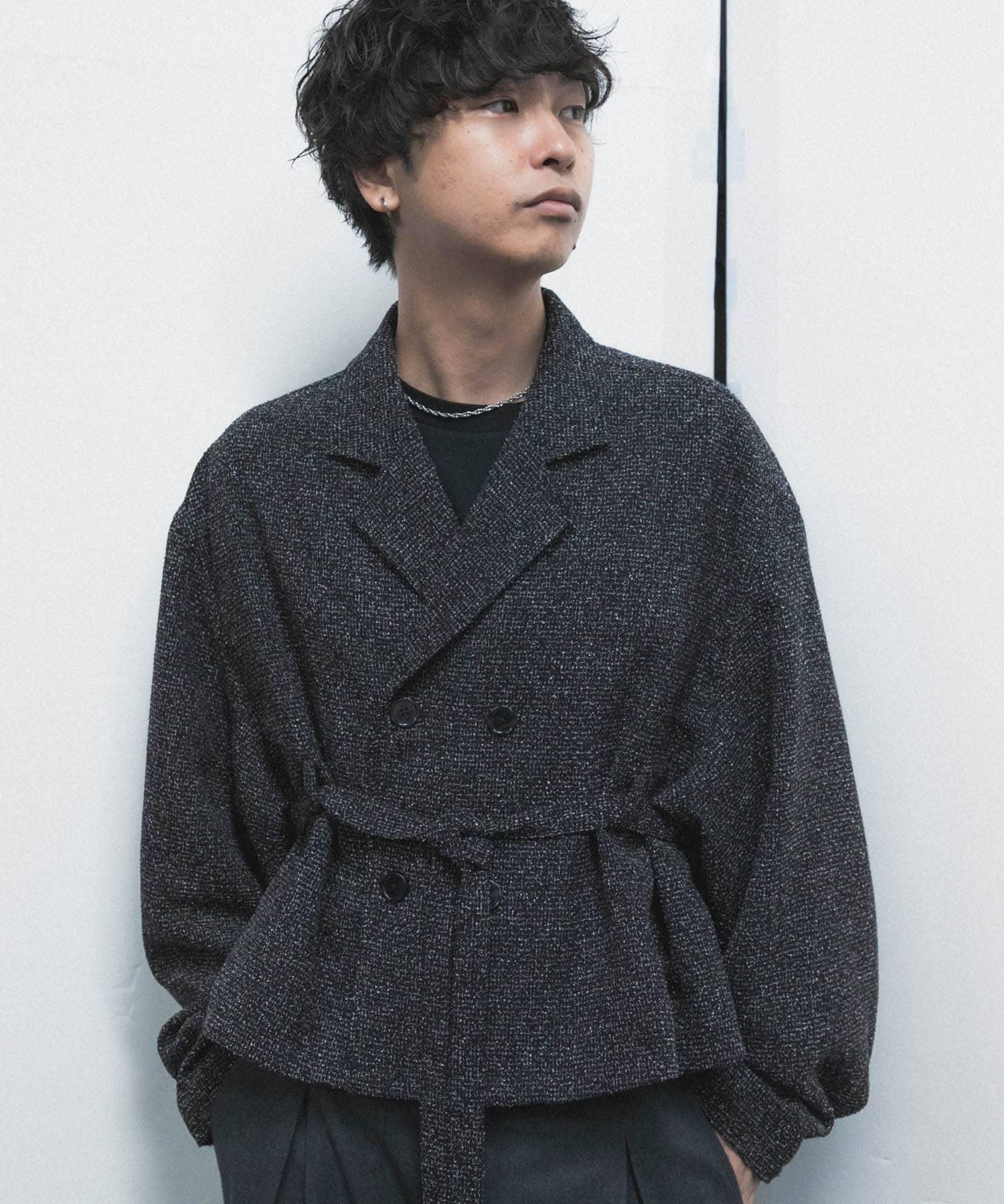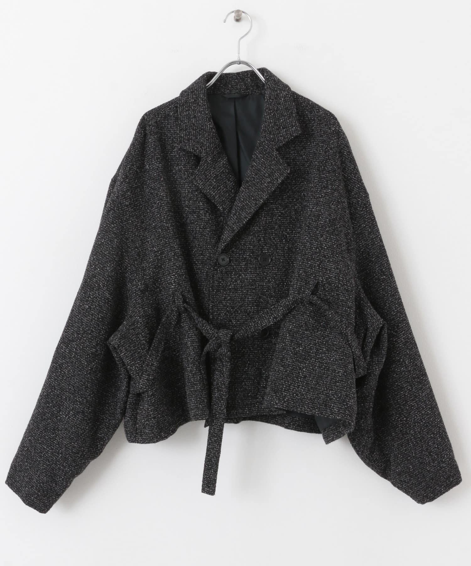 『わたべ×SOP』『套裝可搭配』粗花呢雙排扣短款西裝夾克