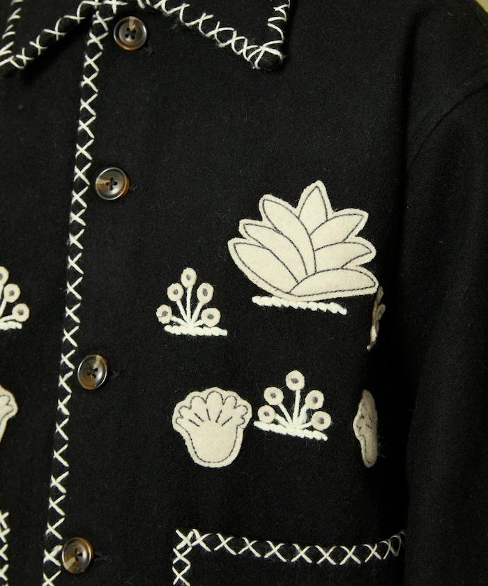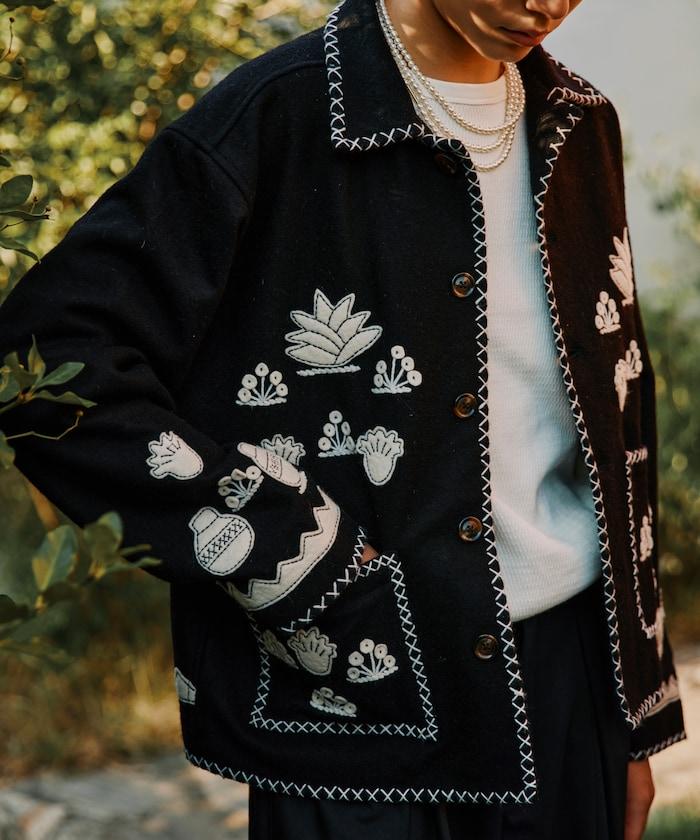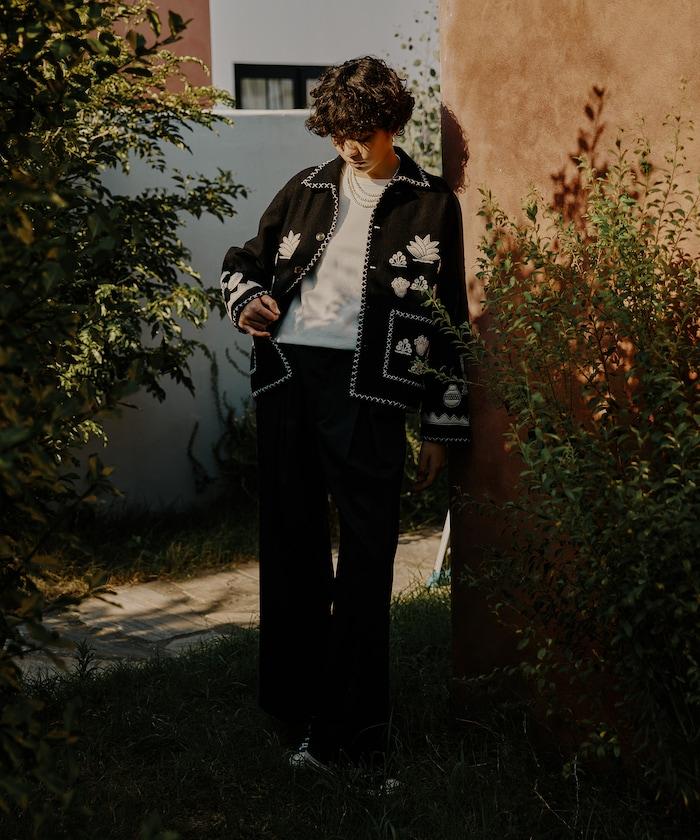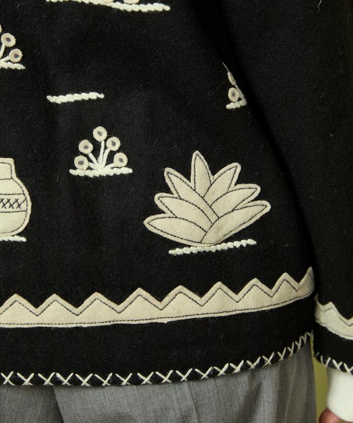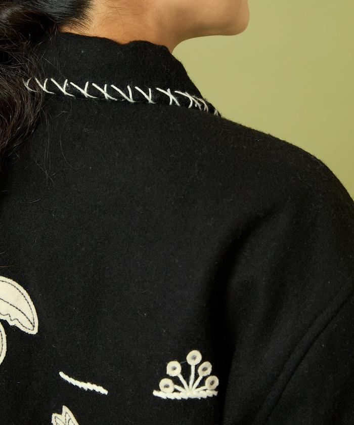 它是一件精心製作的服裝,經過多道工序精心製作而成,包括毛氈交織和手工羊毛刺繡。
