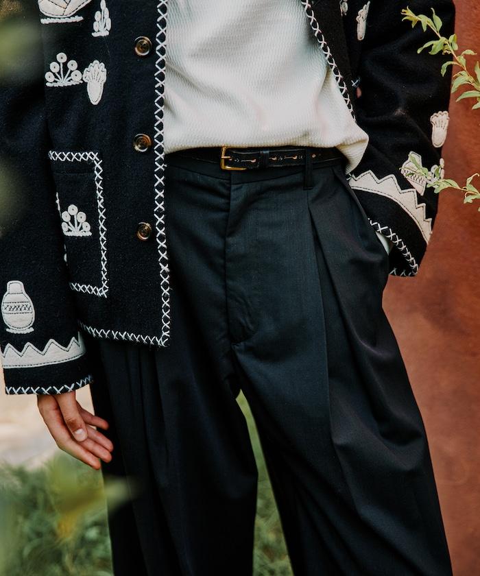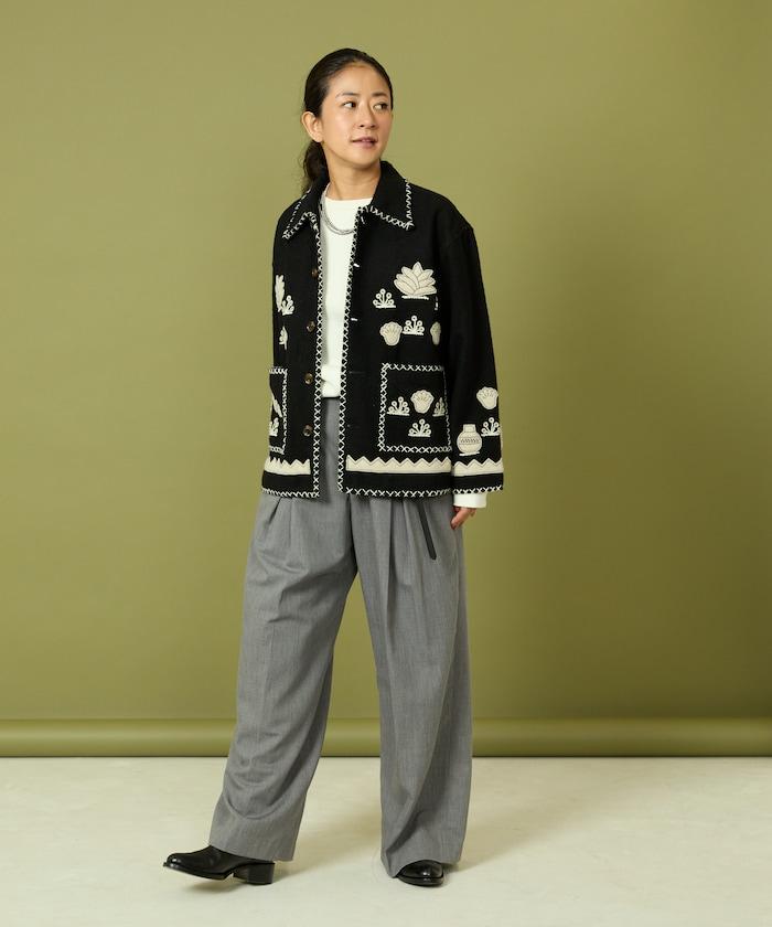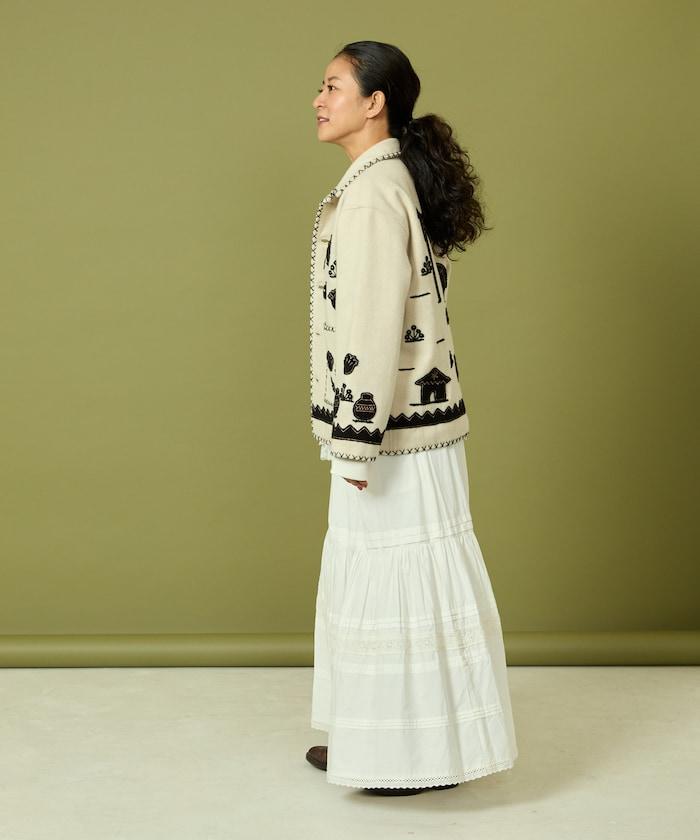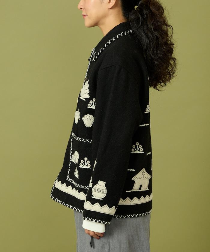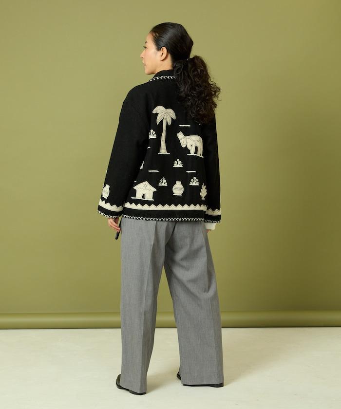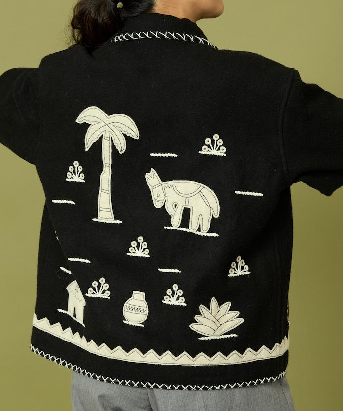 它是一件精心製作的服裝,經過多道工序精心製作而成,包括毛氈交織和手工羊毛刺繡。