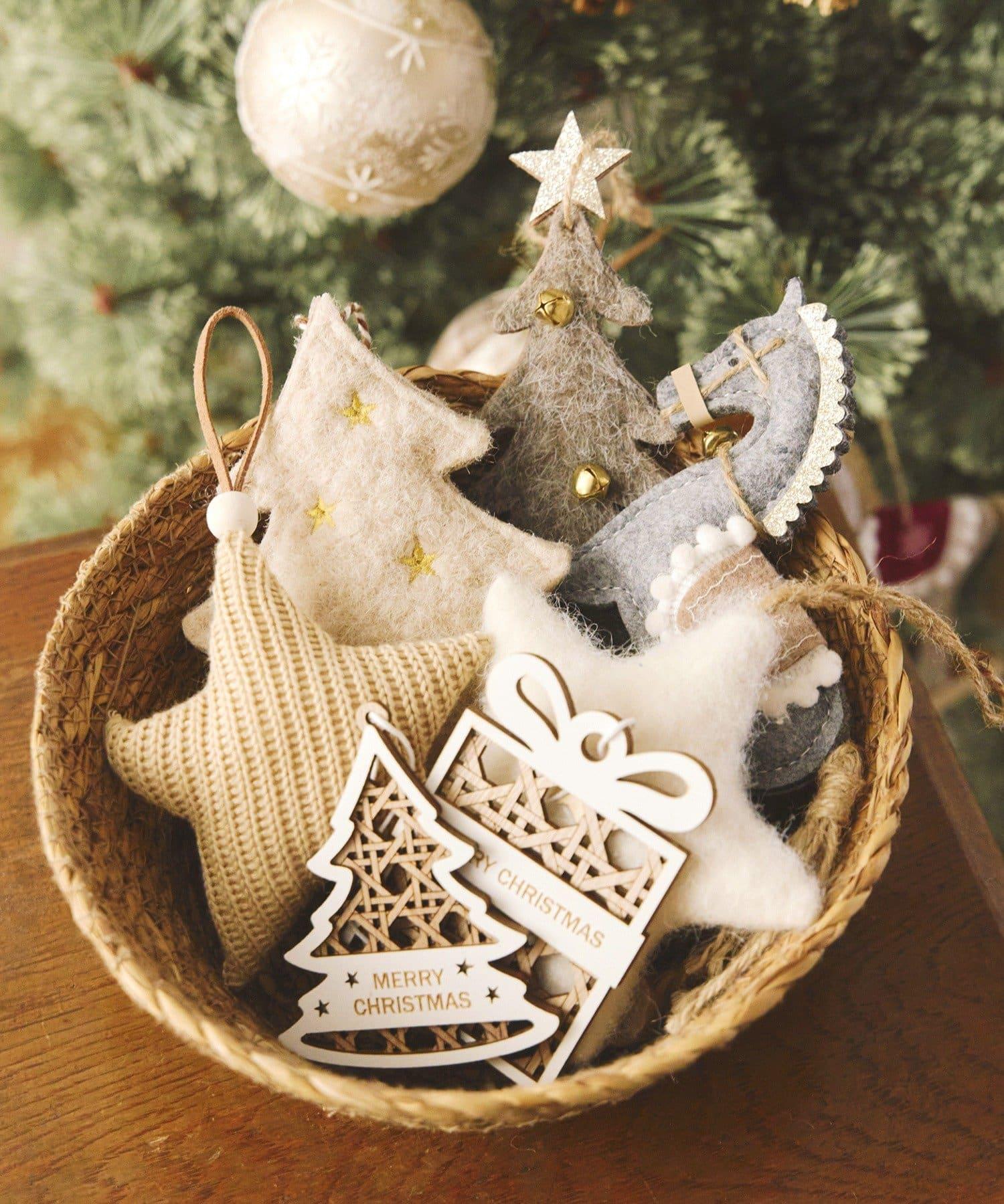 ウッドカゴ編みベルオーナメント/ナチュラルクリスマス