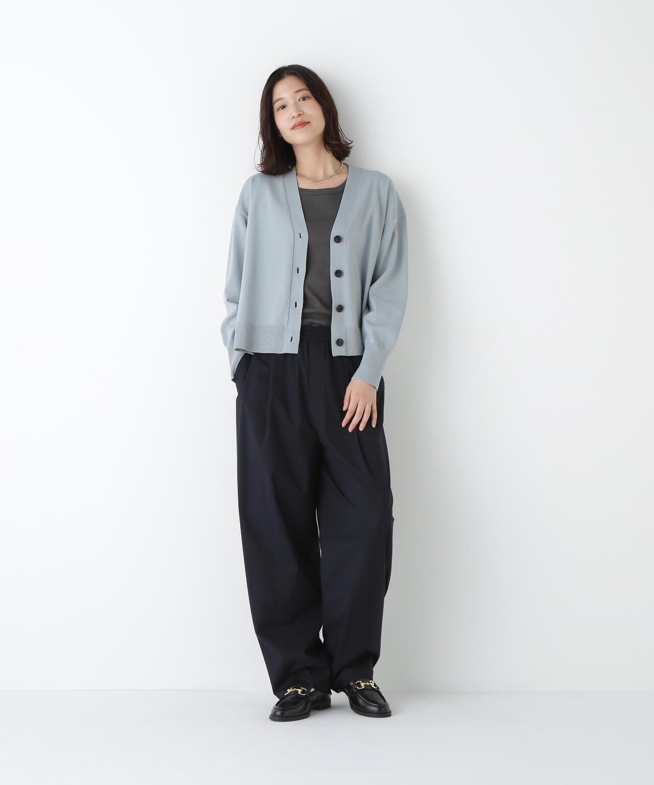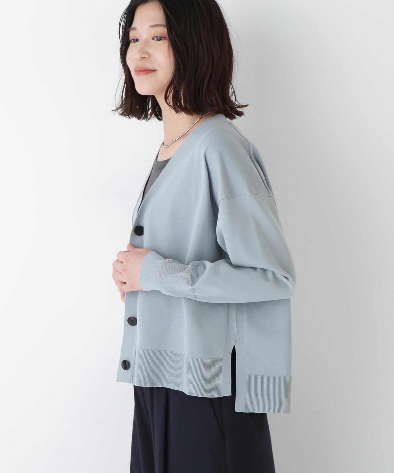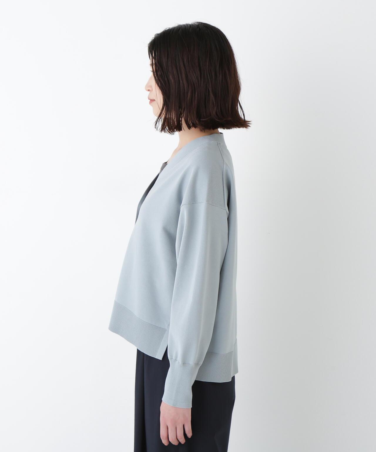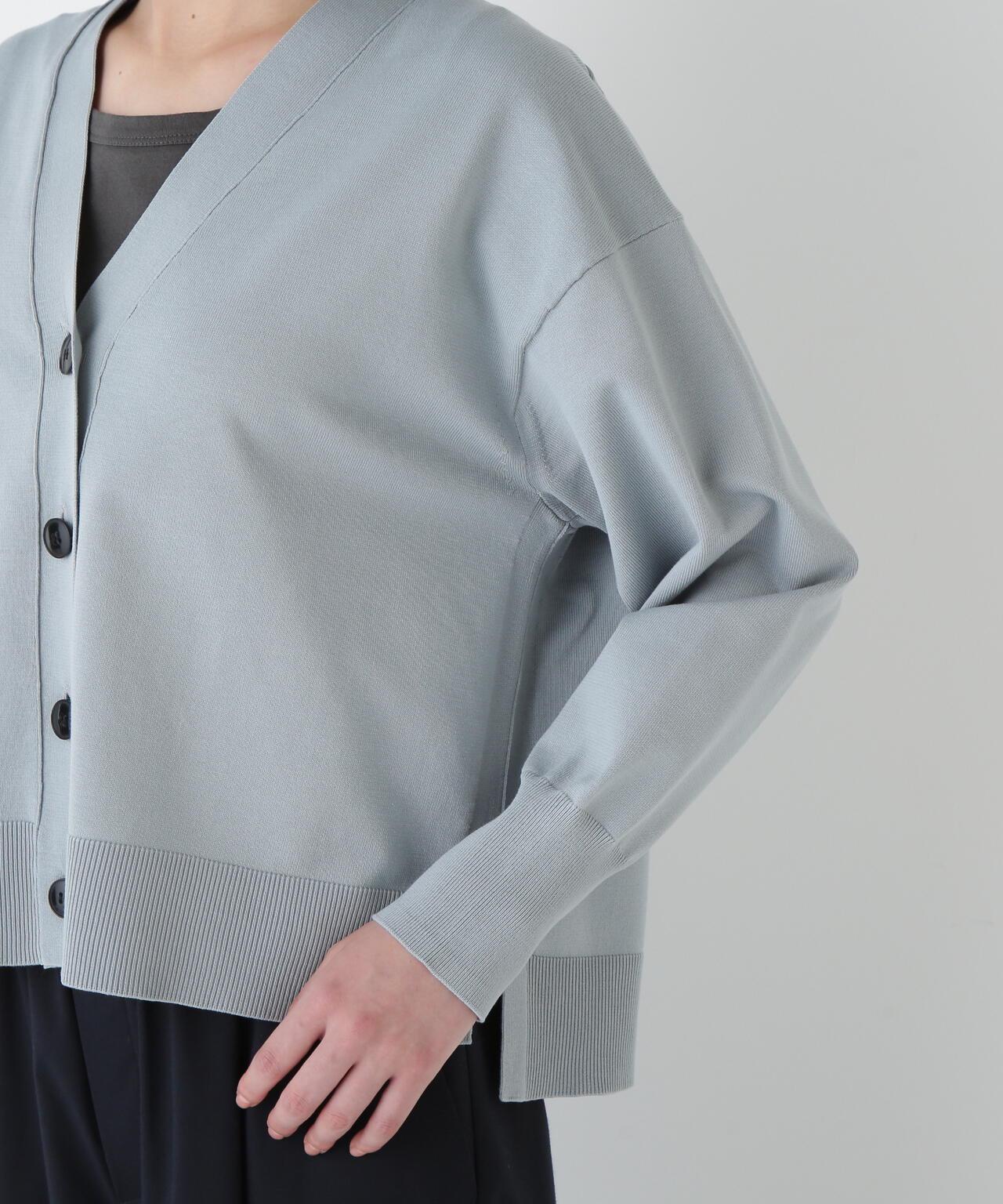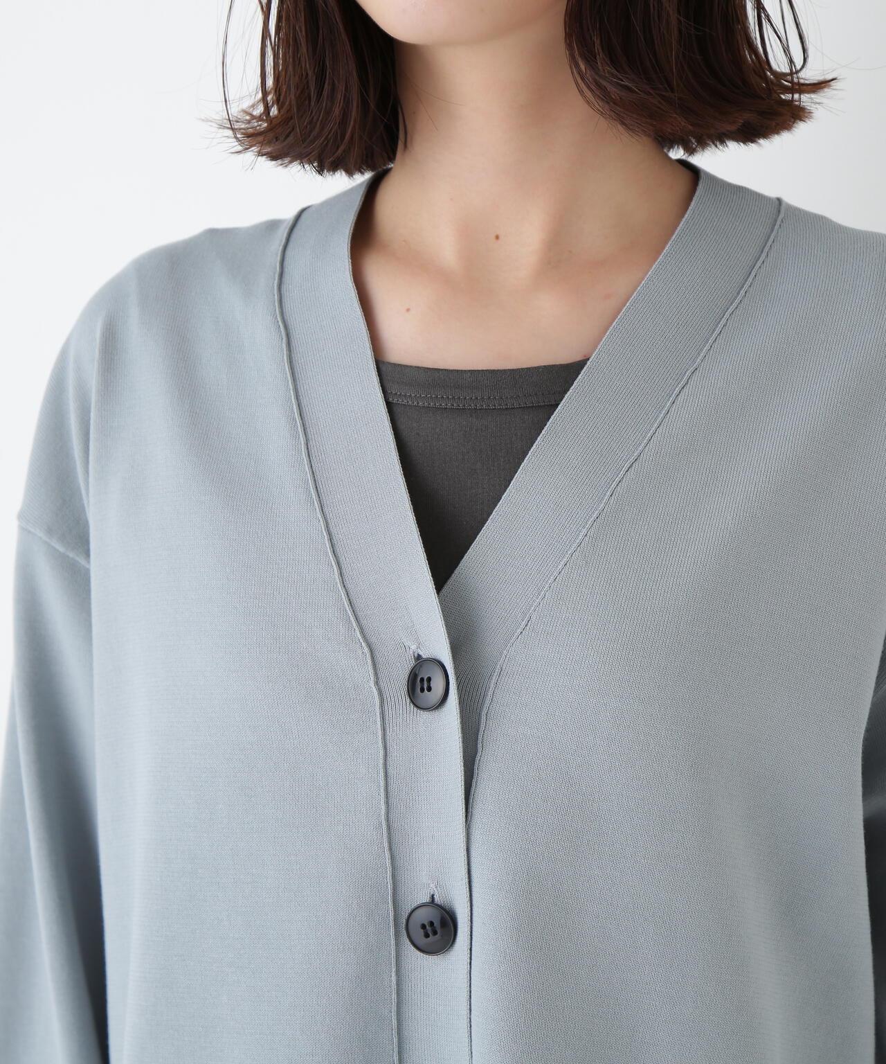 👍適合日常穿著的 V 領開衫 [設計特色] 這款 V 領開衫袖子豐滿,在不長不短的長度和寬鬆的衣身之間取得了全新的平衡。本季,通過在前後增加不同的長度,使穿著更加方便。深色紐扣是一大特色。面料由鍍有天然纖維的有機棉製成,表面紋理細膩。這款 V 領開衫非常適合日常穿著,無論上班還是下班都可以穿。扣上紐扣後還可以當套頭衫穿。它是一款非常適合搭配寬鬆下裝的單品。