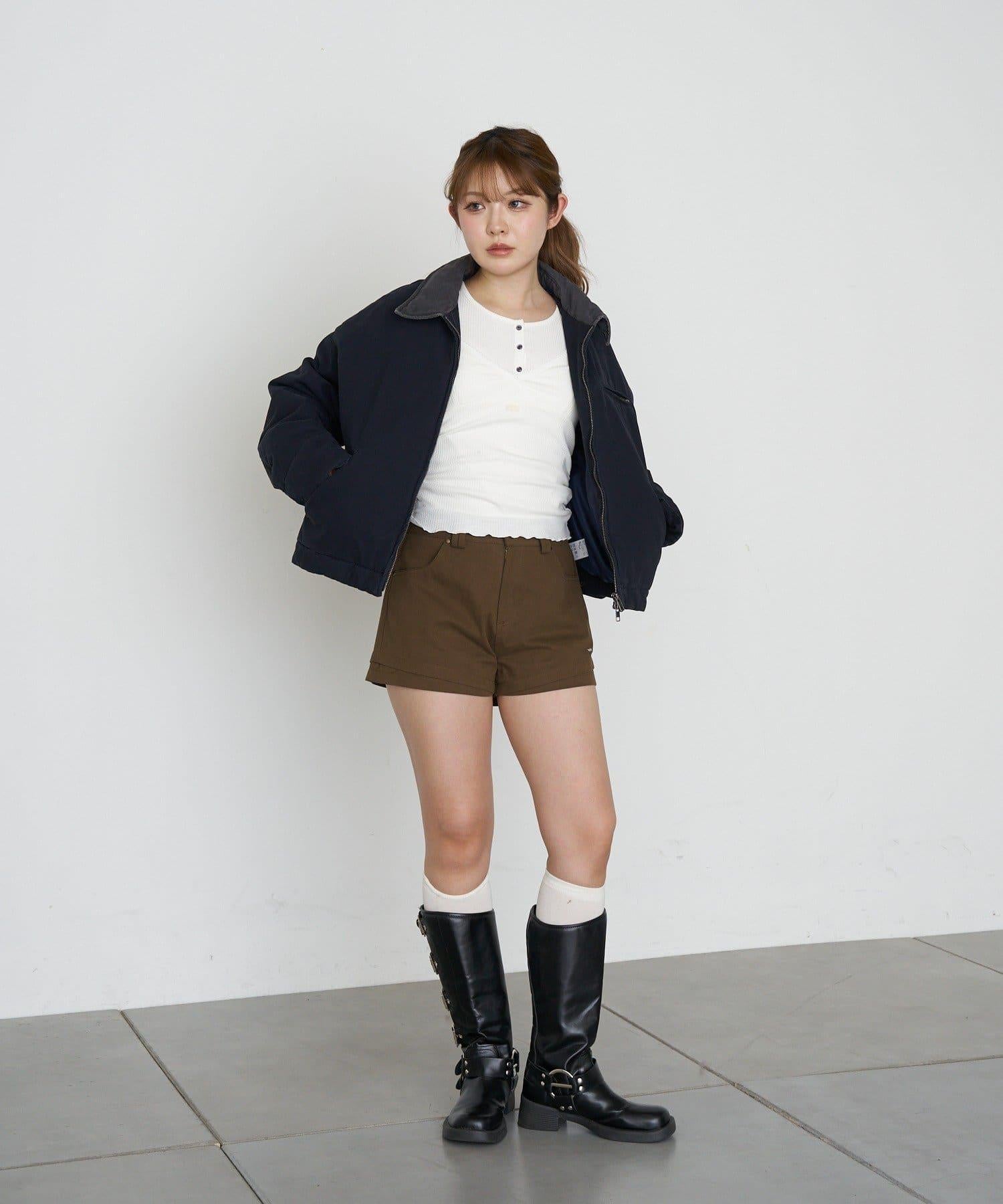 新款迷你短褲,下襬有層次感。