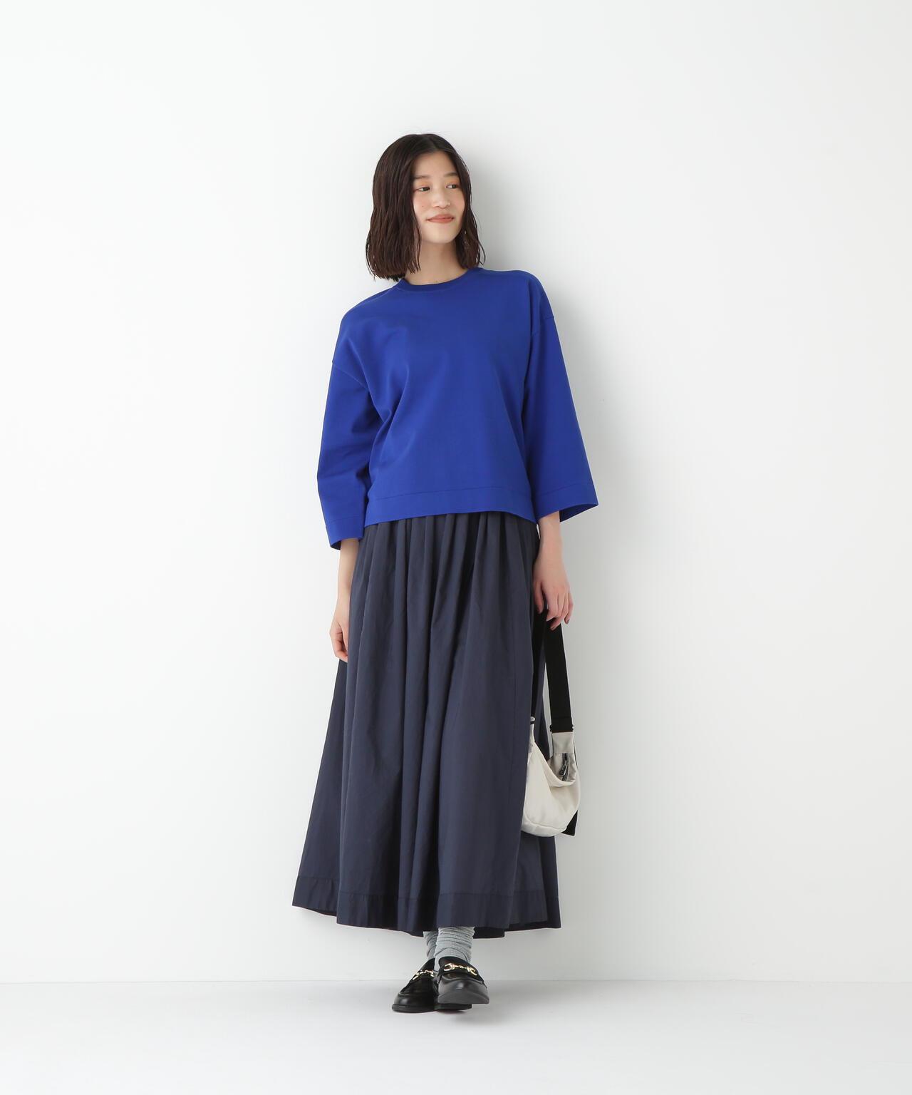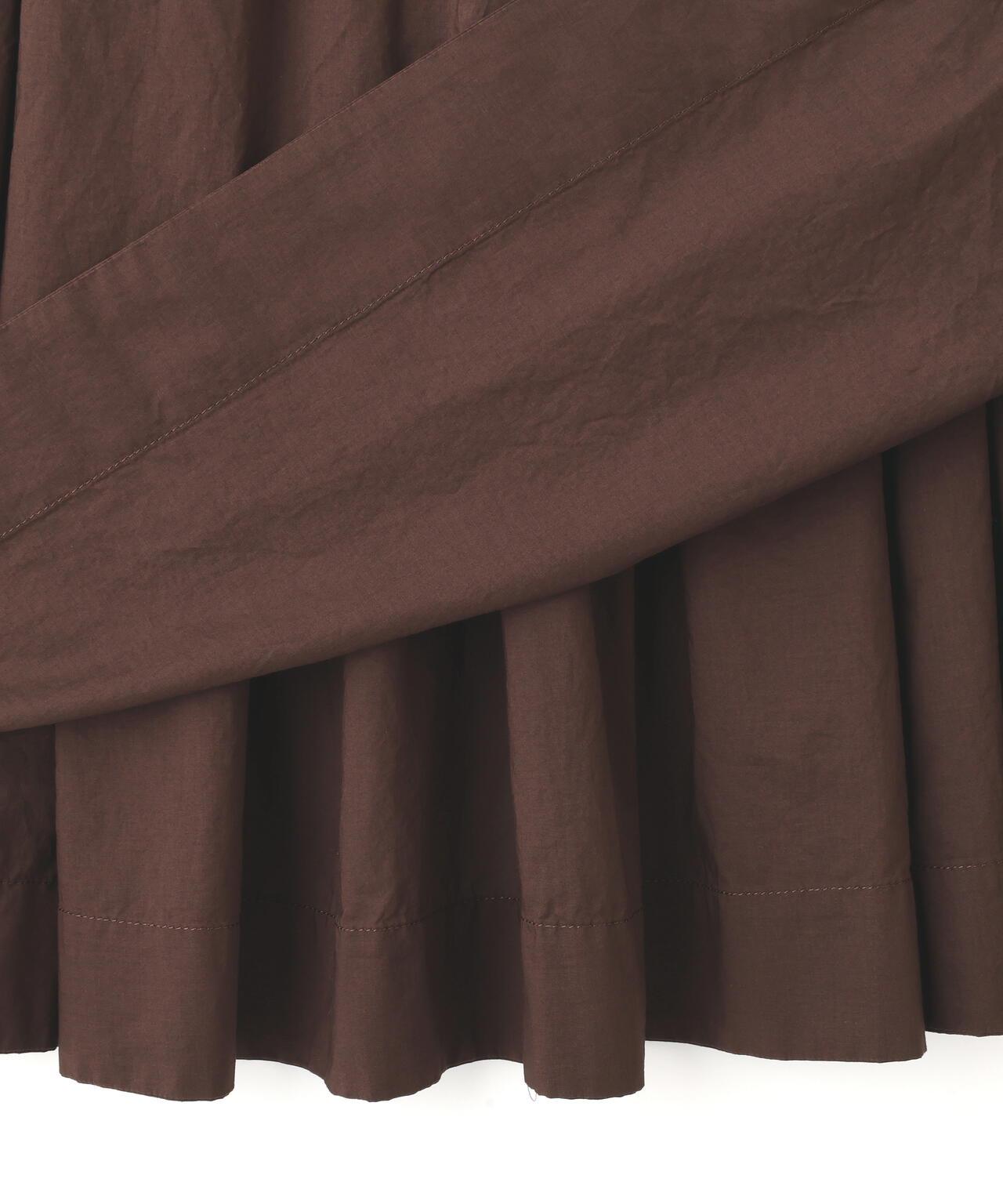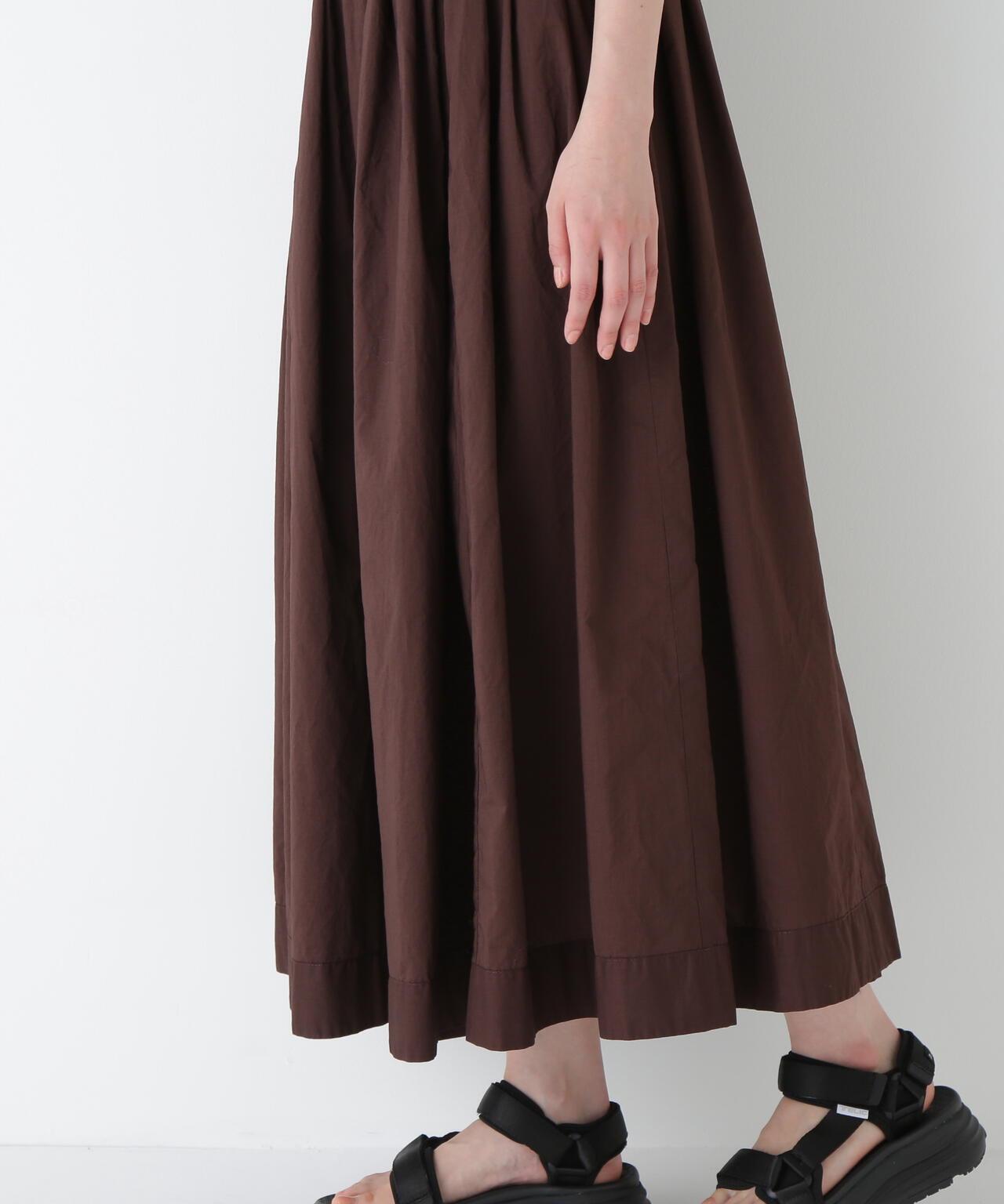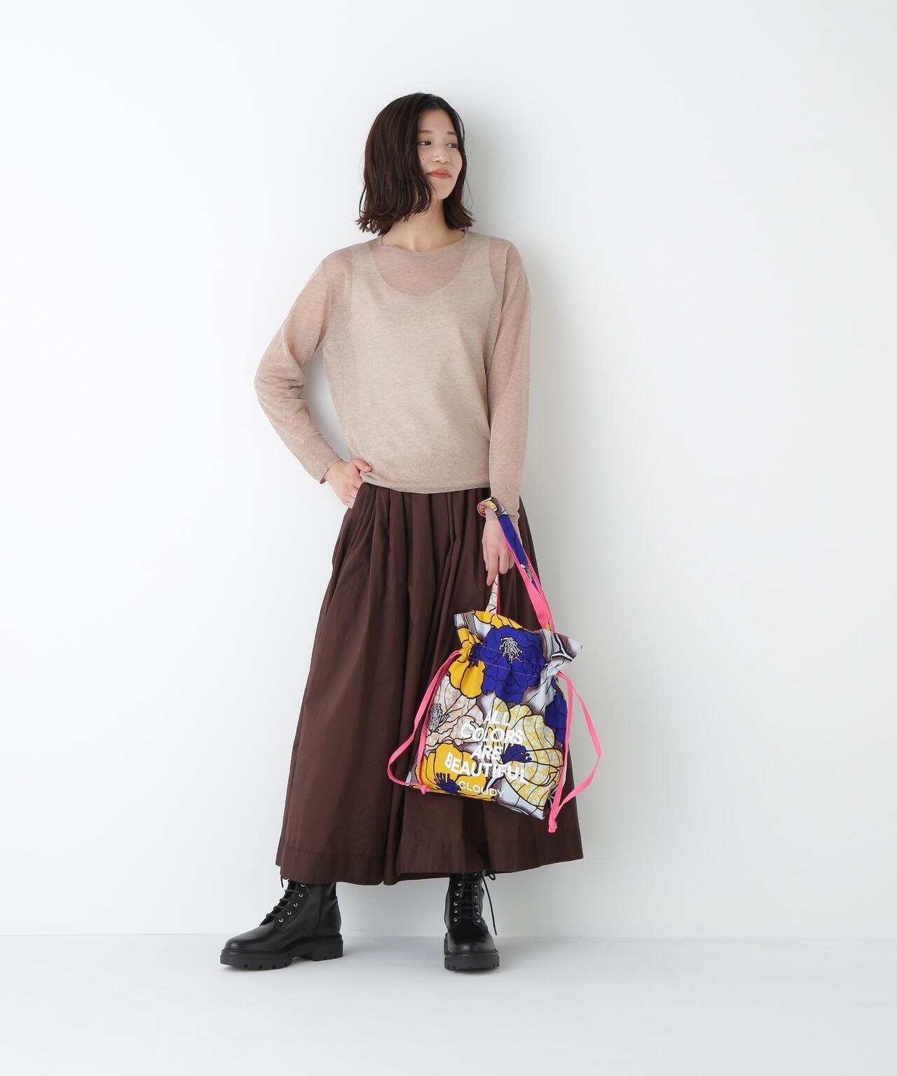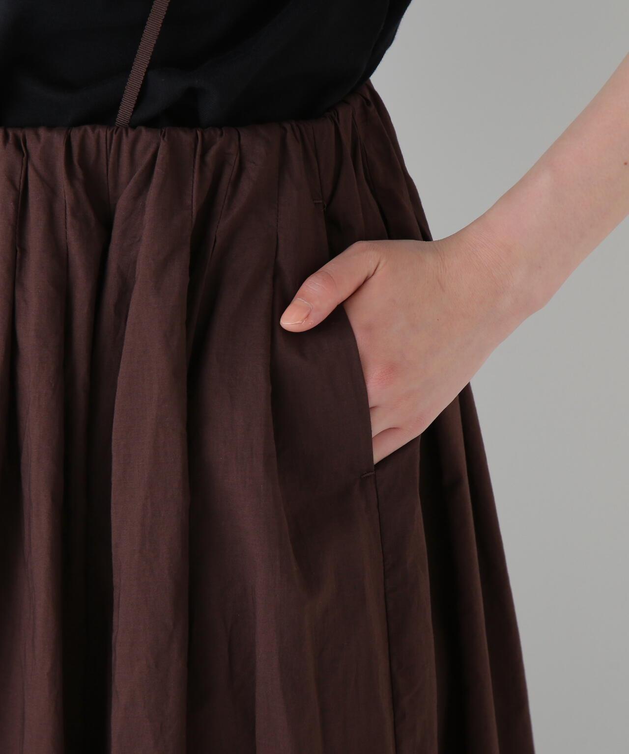 帶肩帶的褶皺長裙,可佈置成成人休閒風格 [設計要點] 這款豐盈的長裙腰部收得很細,內側有鬆緊帶摺疊。裙子上有一條精緻的羅緞絲帶懸掛繩。裙子由薄而輕的 60 號有機棉製成。裙子的腰部有鬆緊帶,在腰部牢牢固定,因此肩帶既可以掛起來穿,也可以垂在兩側穿。上衣為 T 恤或背心,建議搭配輕便的梭織上衣,造型休閒。