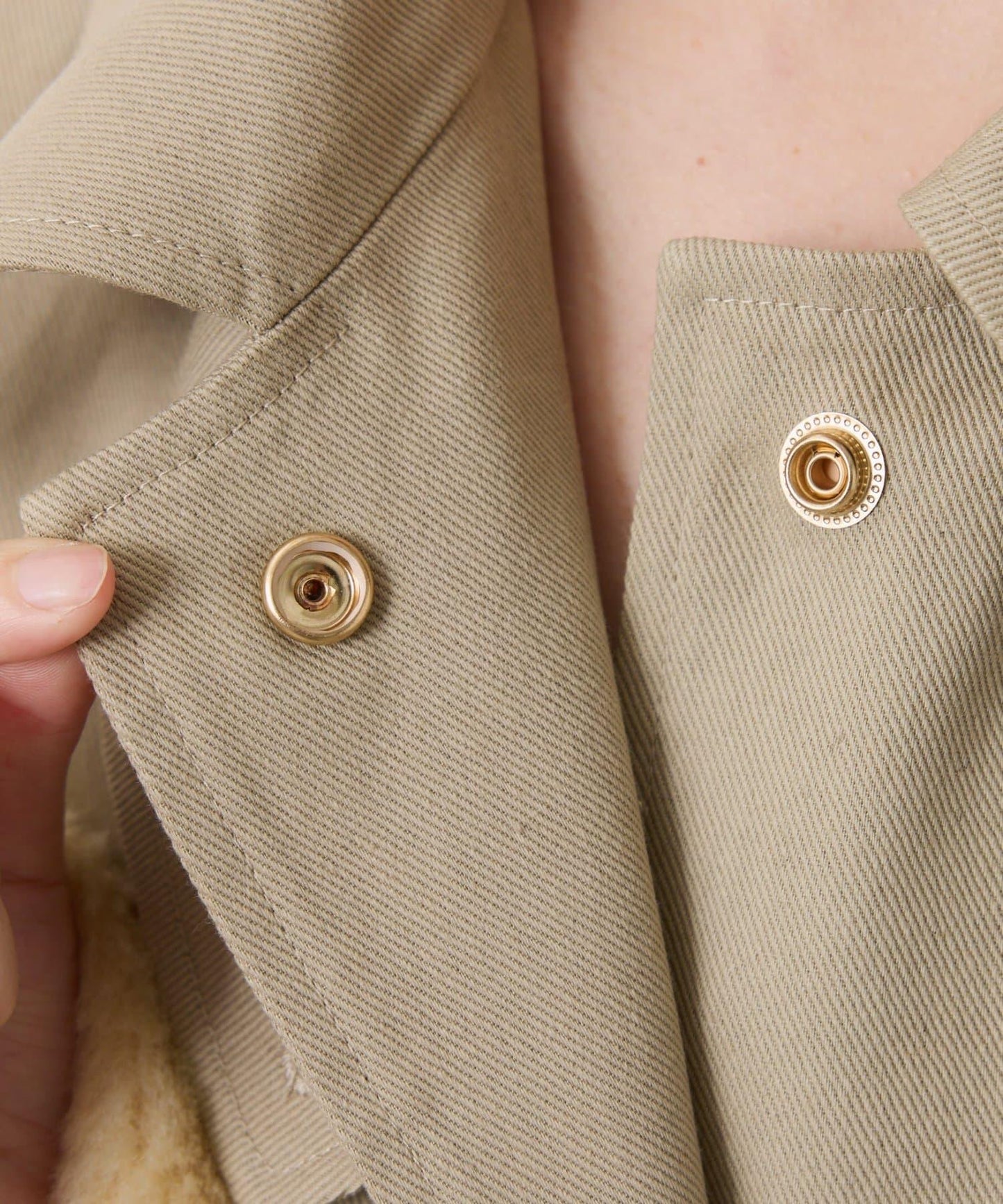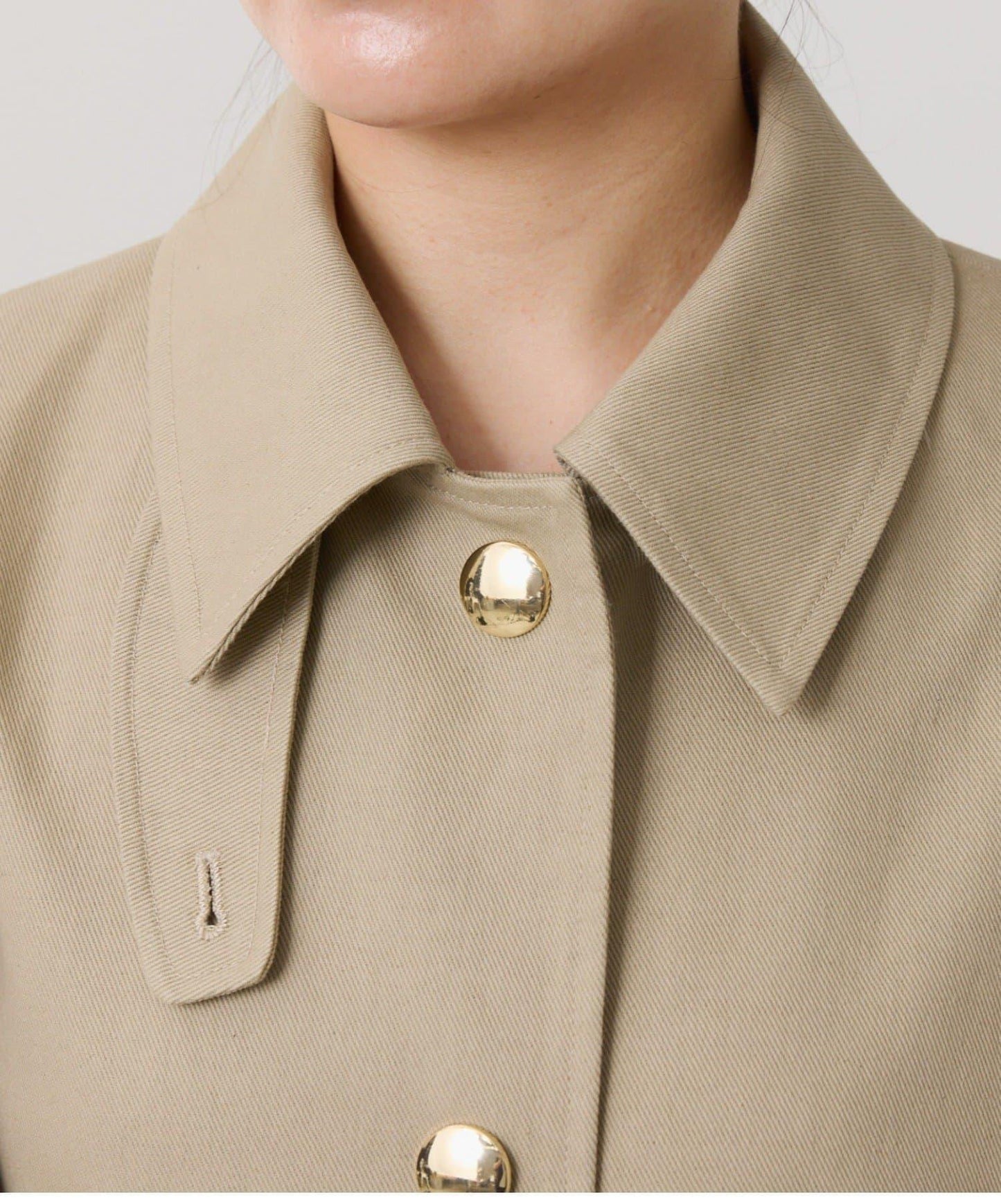 風衣採用單前襟和大圓點紐扣,設計獨特。