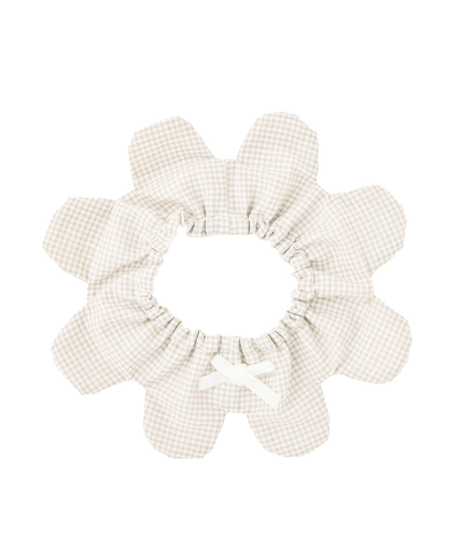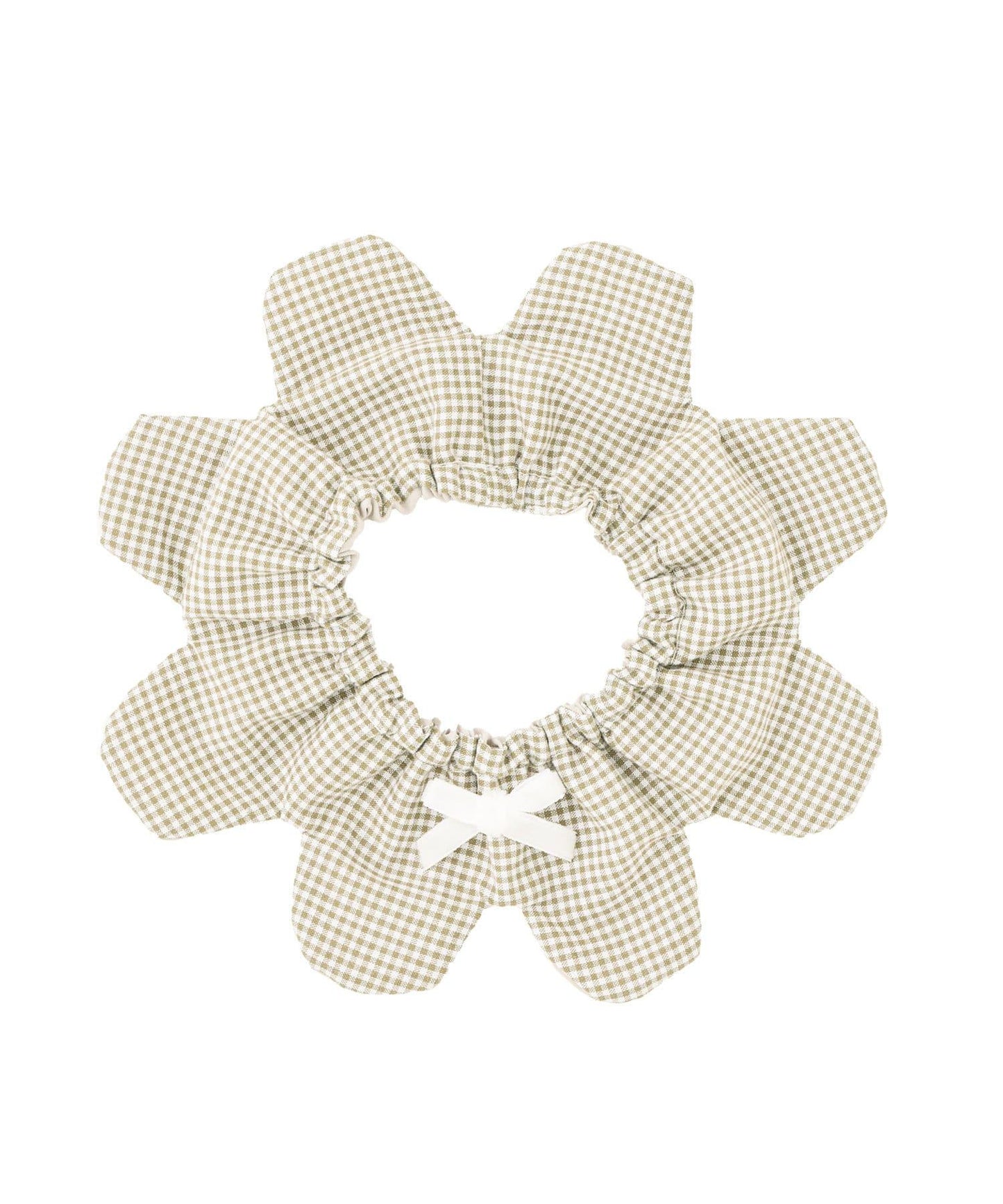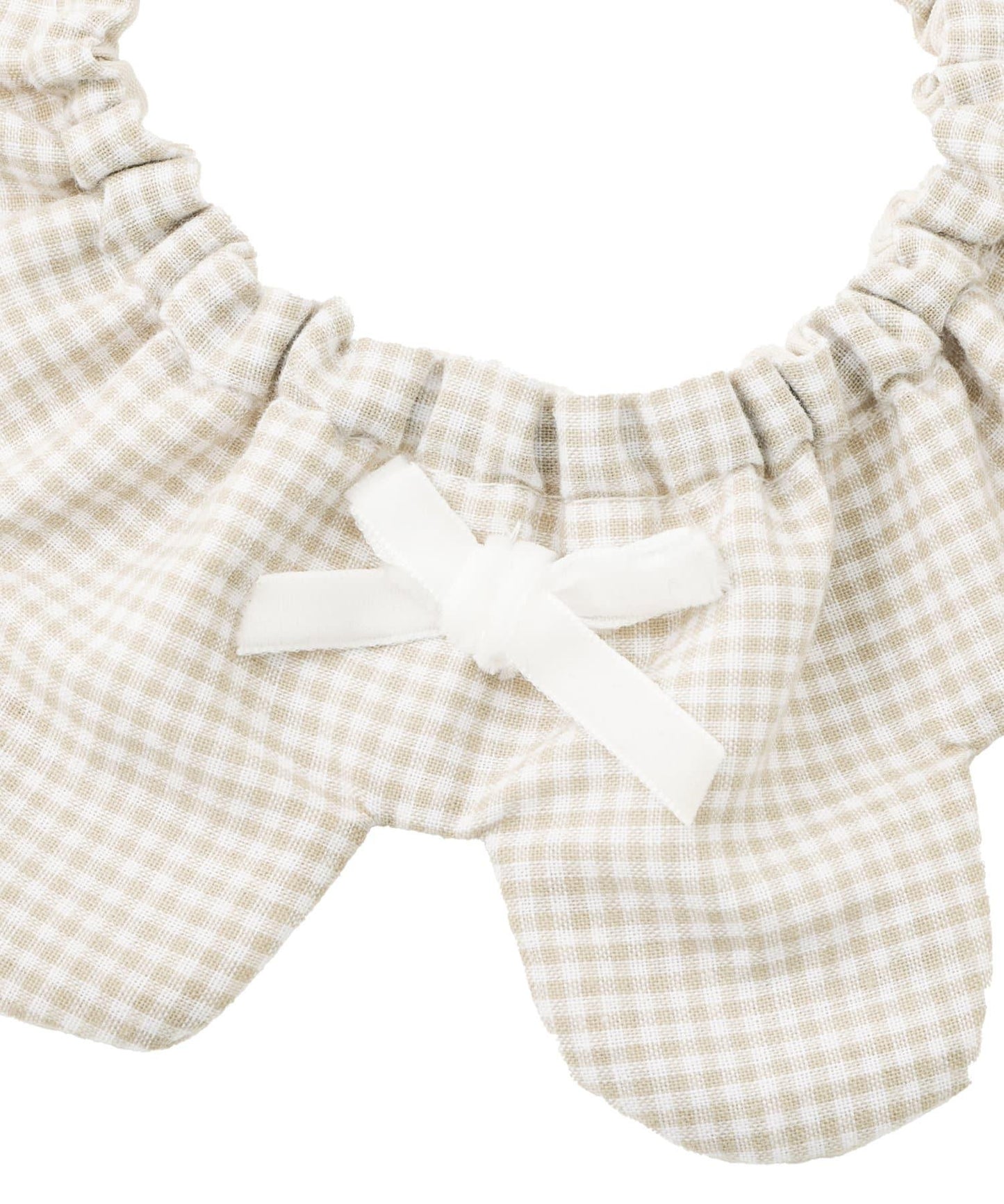 色彩柔和的棋盤格圖案上點綴著一條小絲帶。