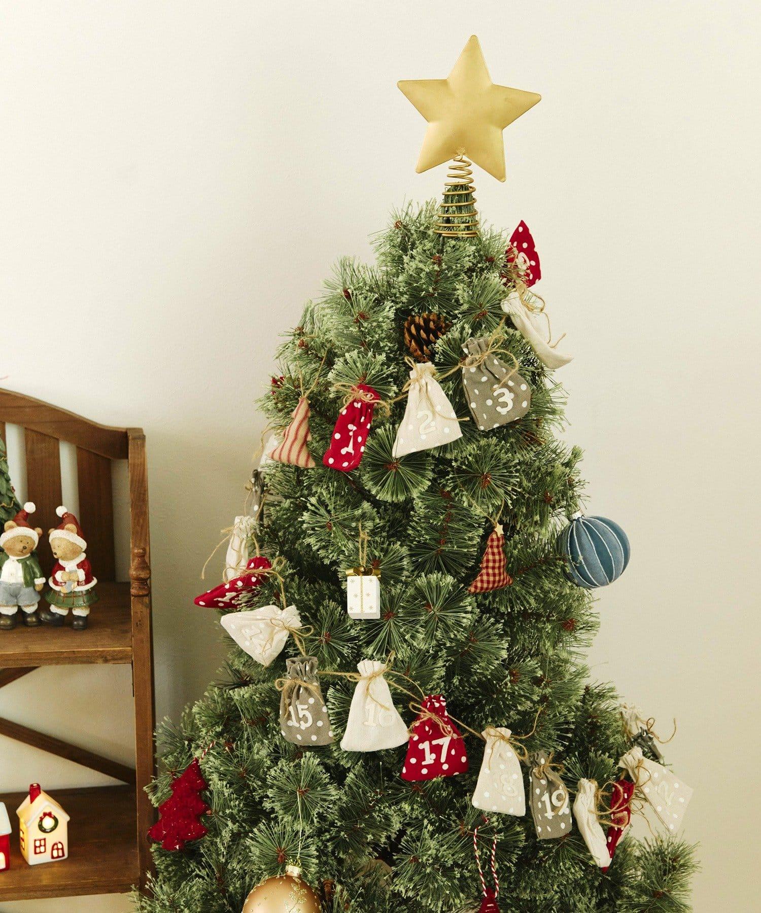 星星造型是暗金色的立體星形,為整棵聖誕樹增添了一抹魅力。