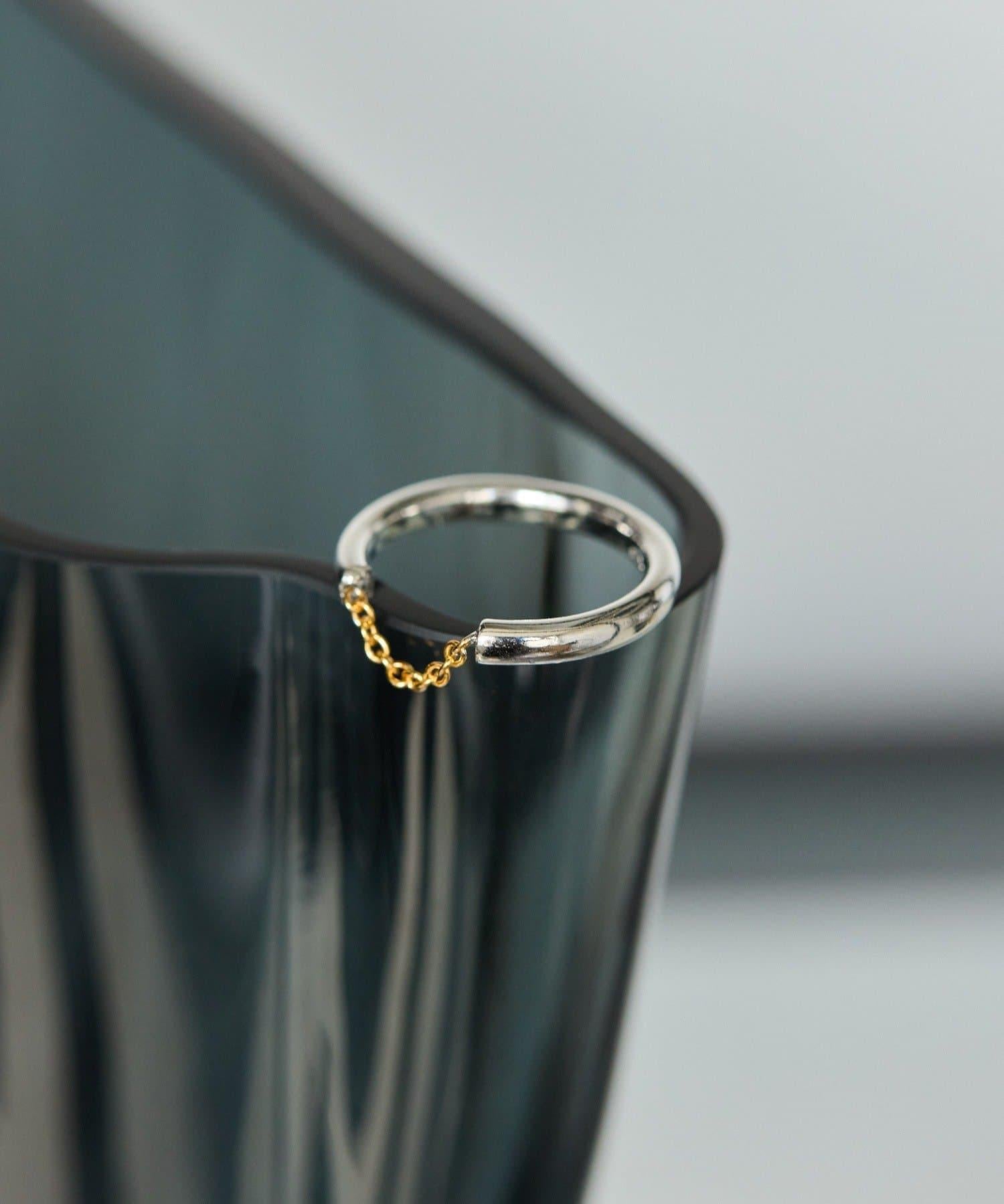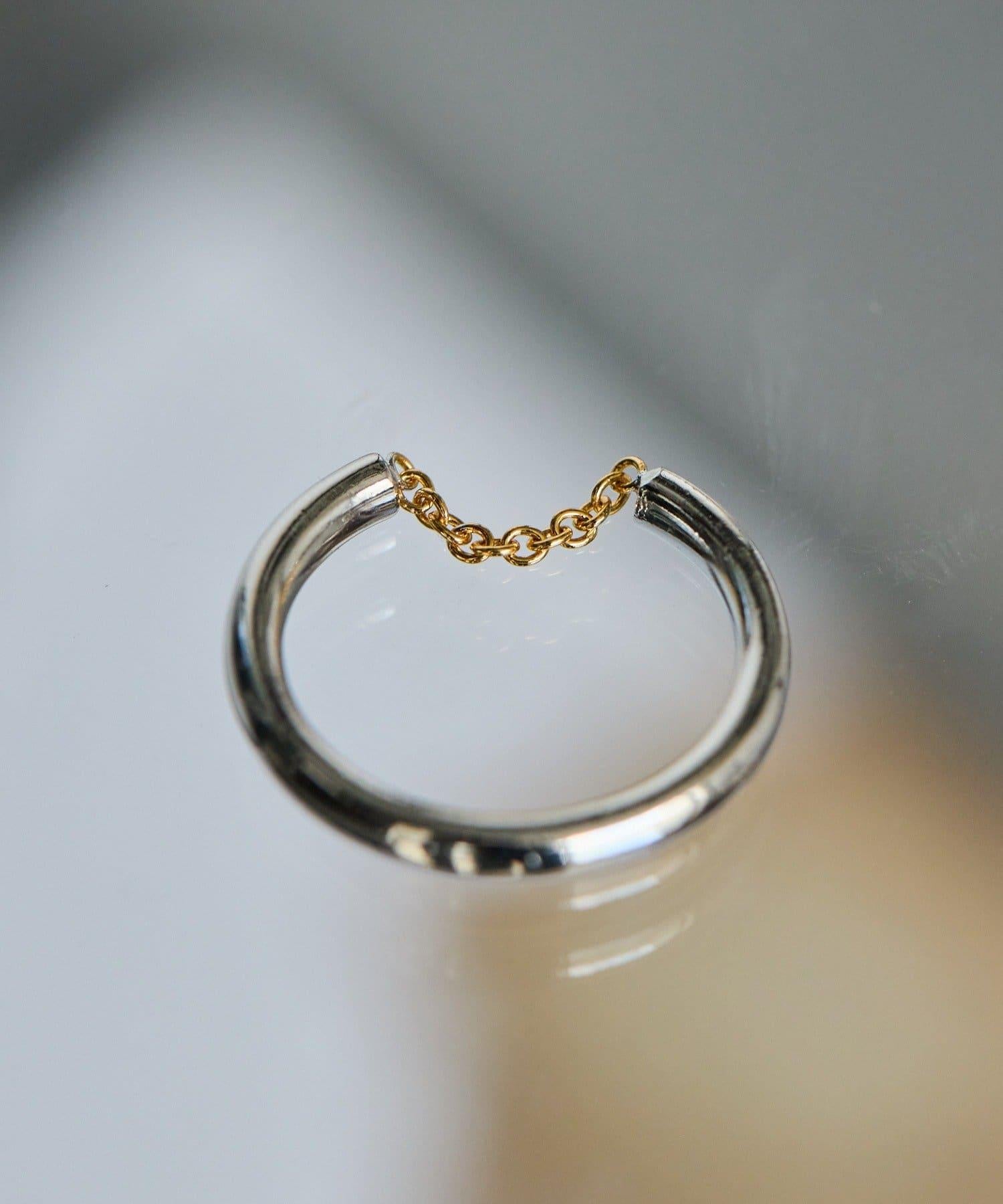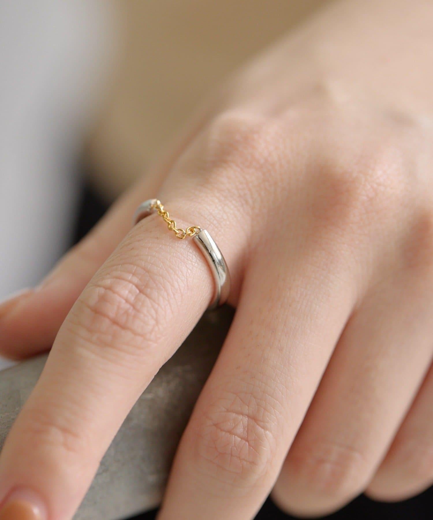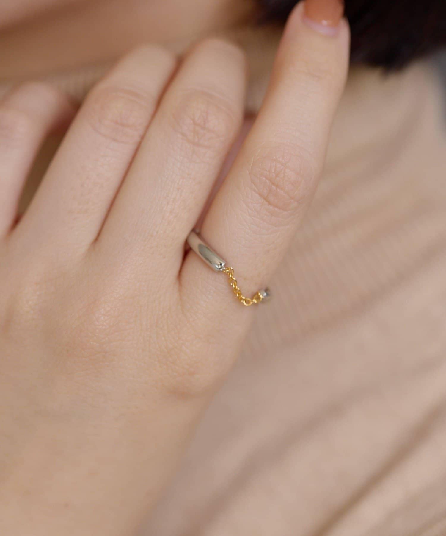 Front Chain 戒指是一款設計俏皮的戒指,帶有一條引人注目的金色鏈條。