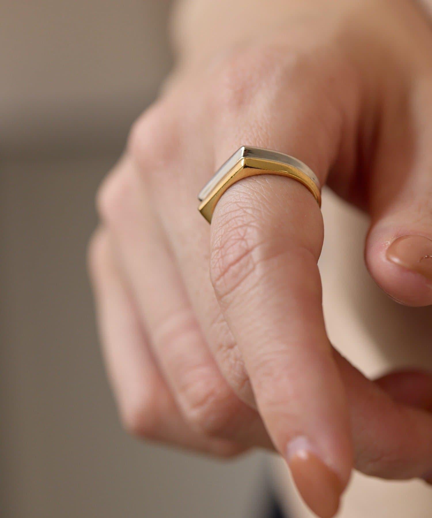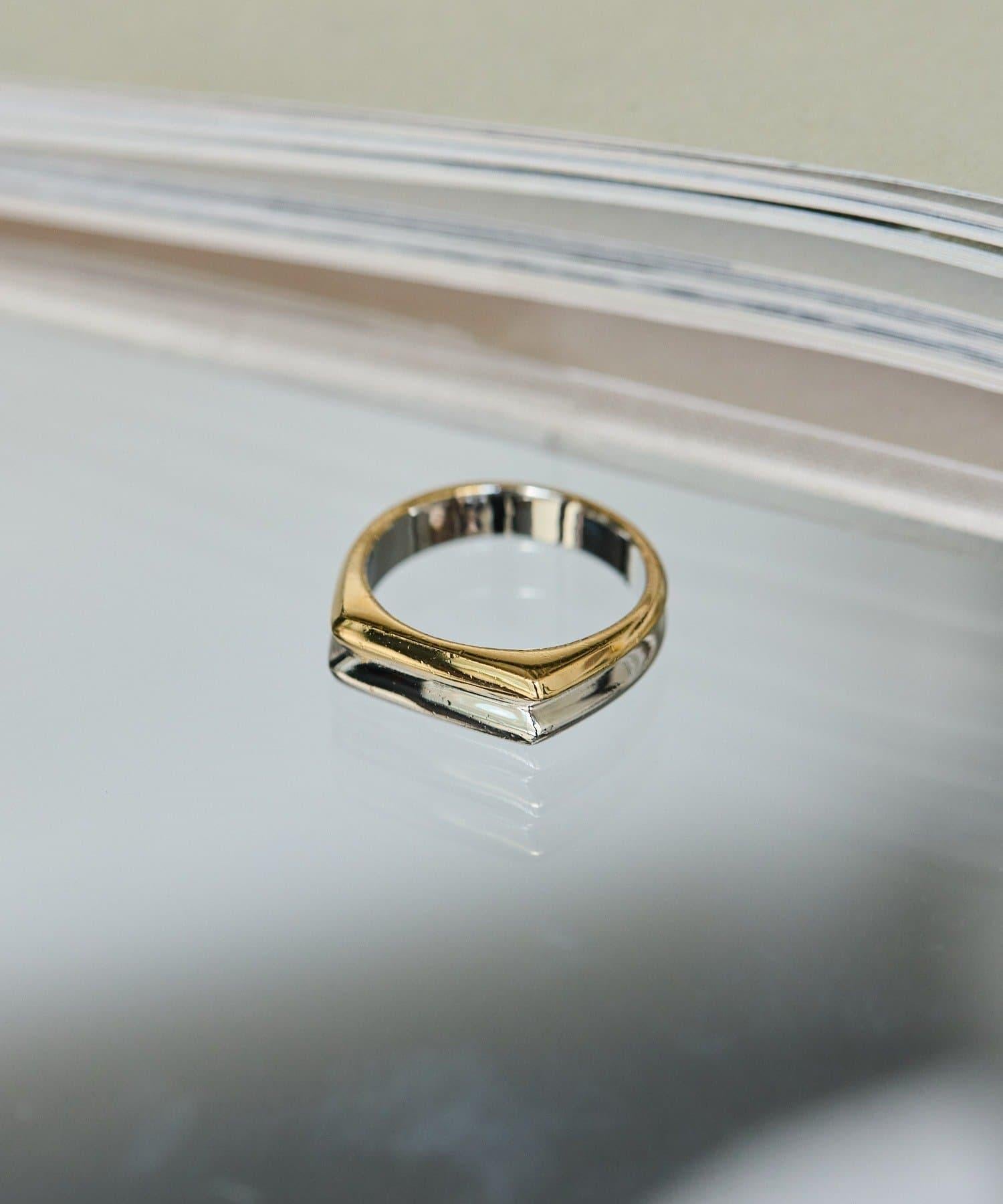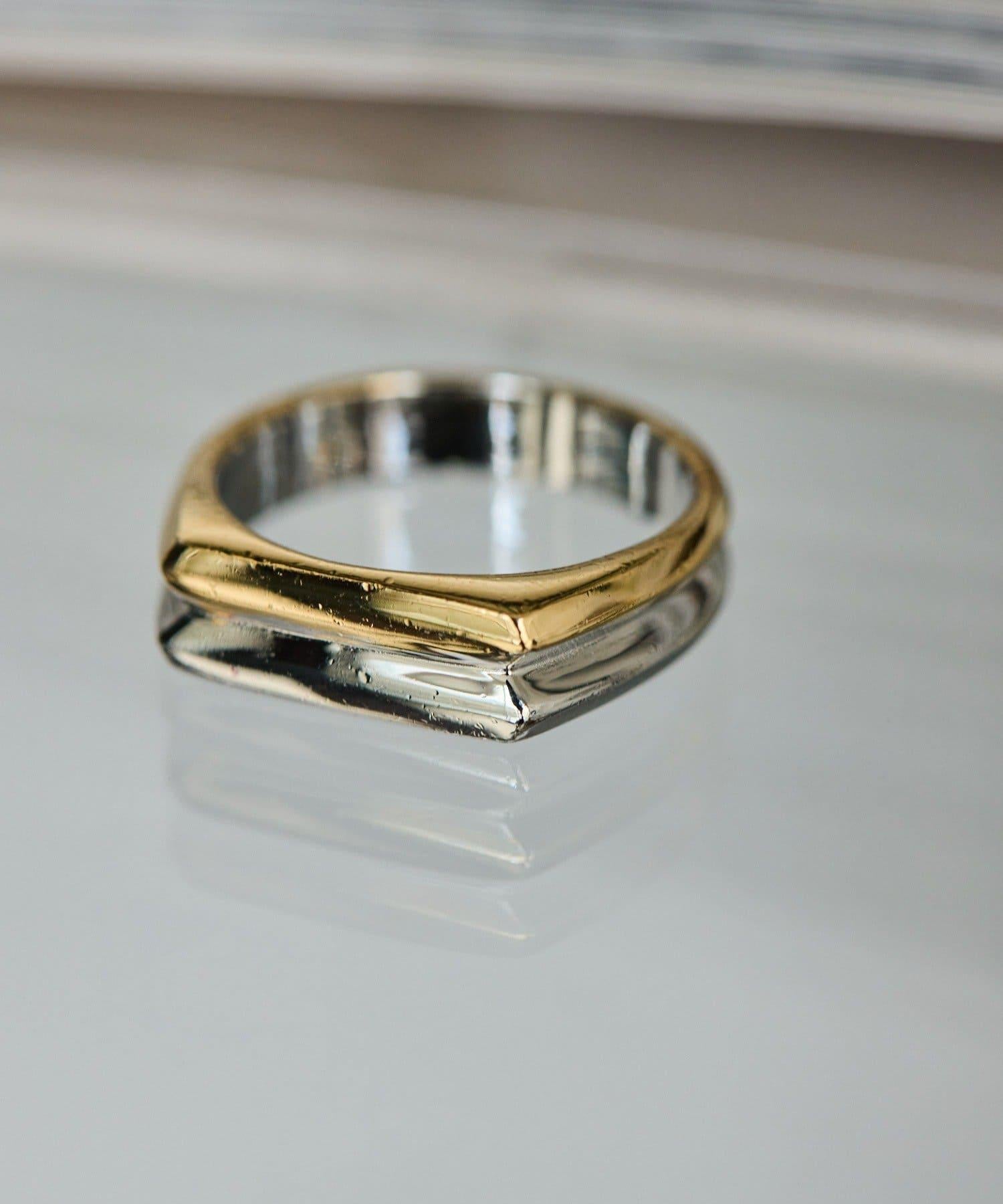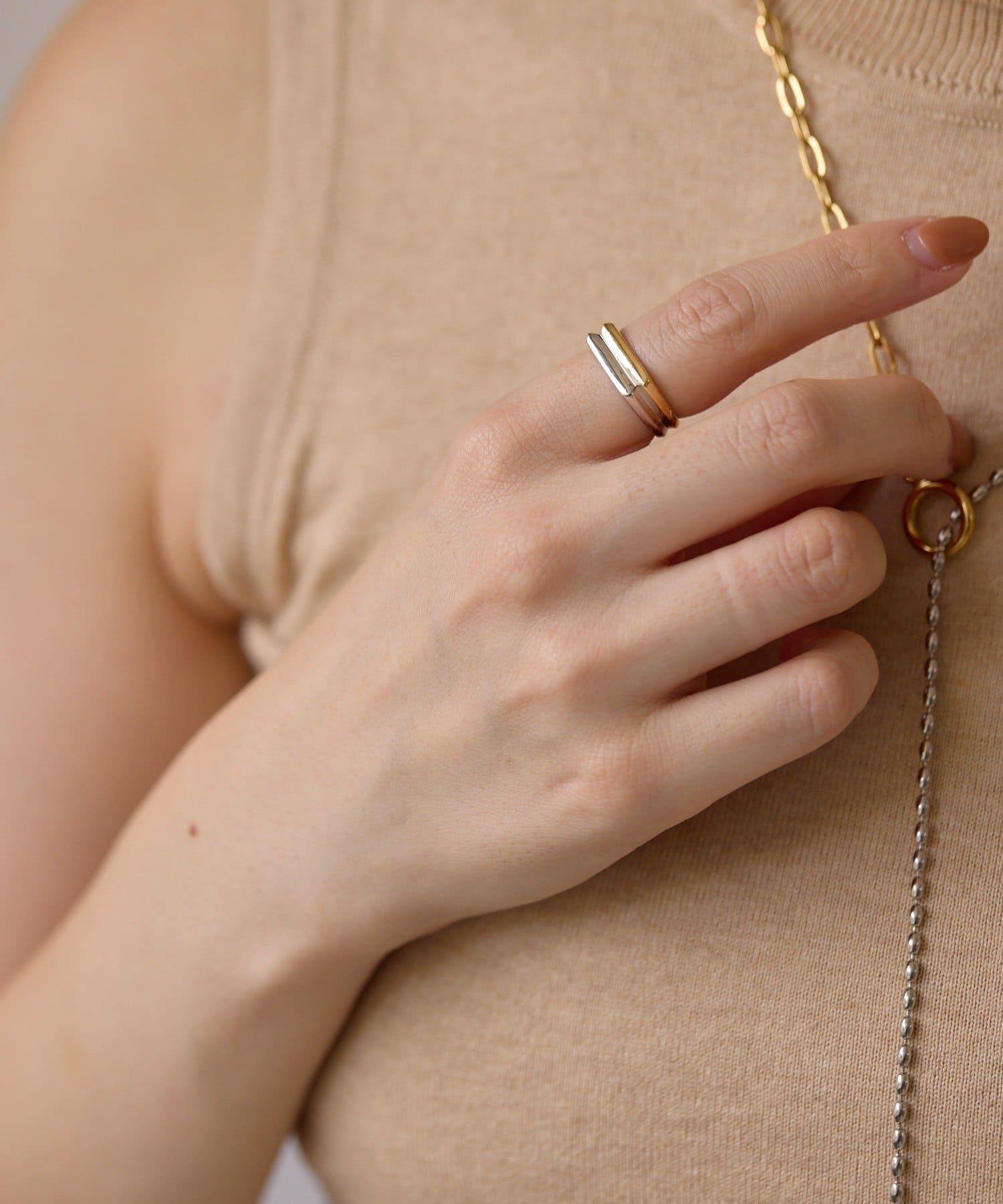 《スターリングシルバー使用》雙色扁平戒指