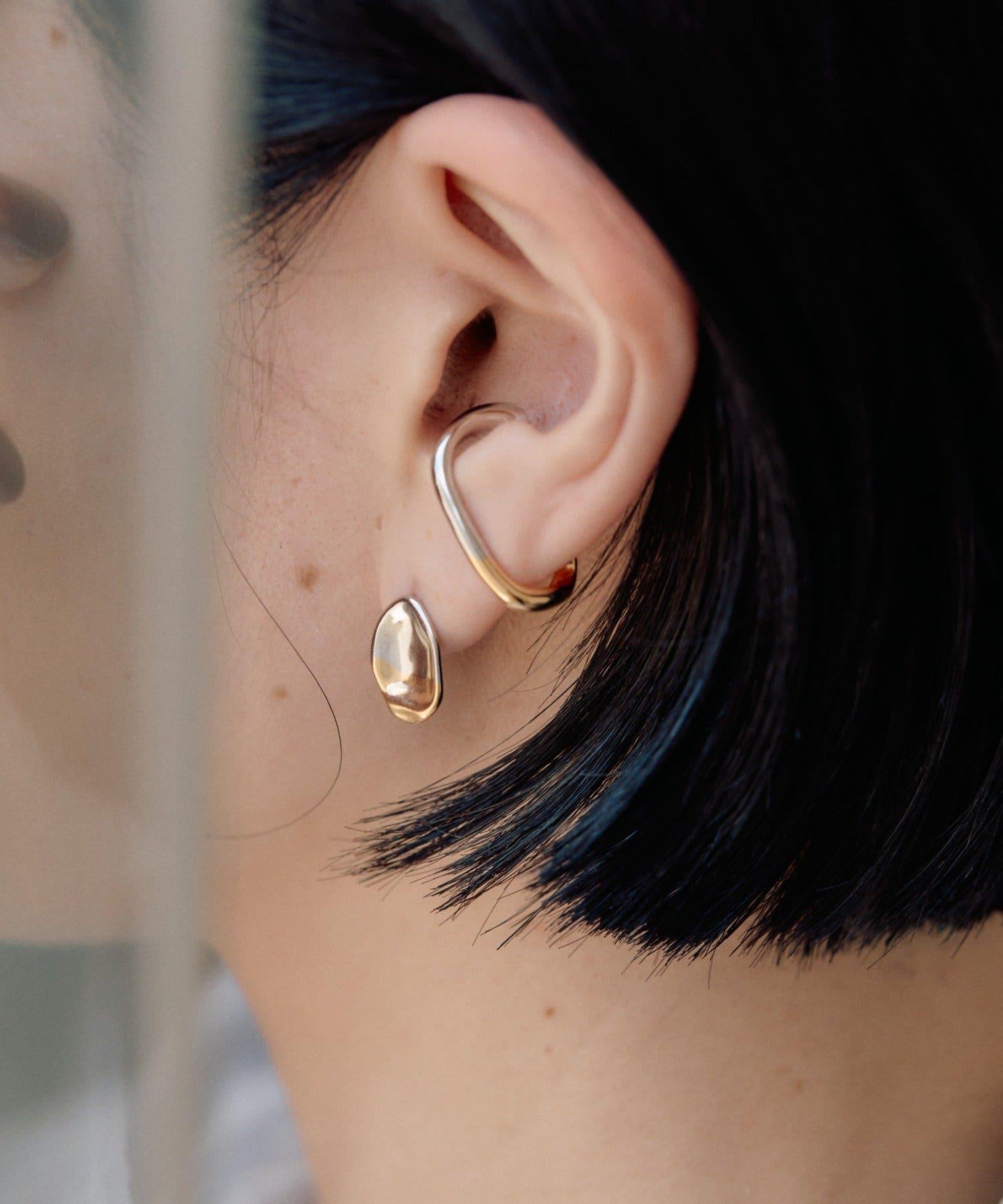 《スターリングシルバー使用》雙色變形圈式耳夾