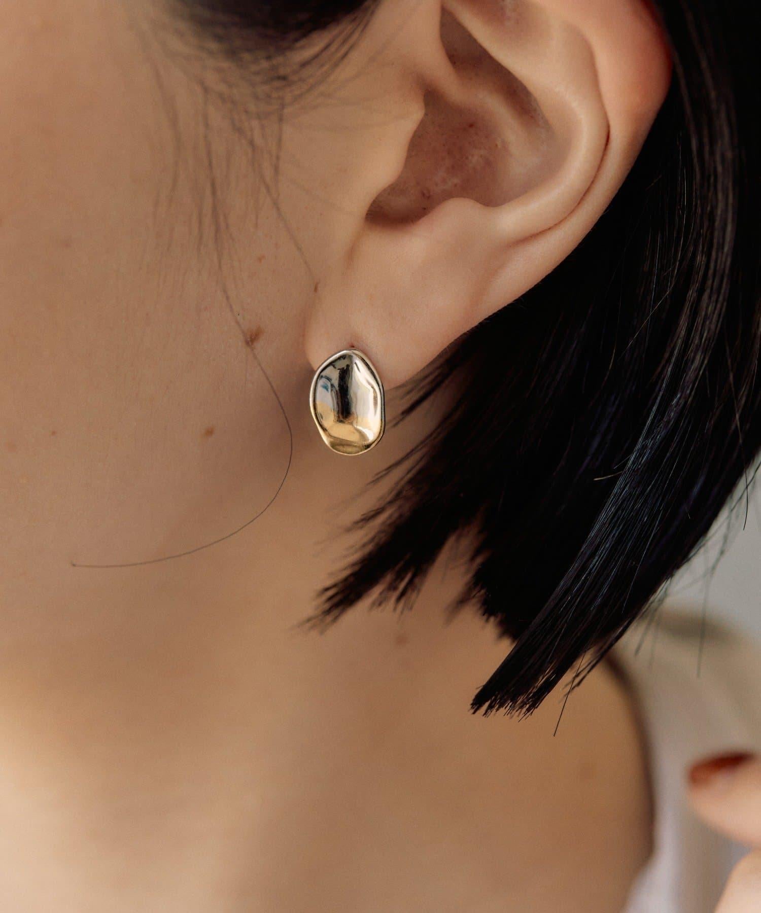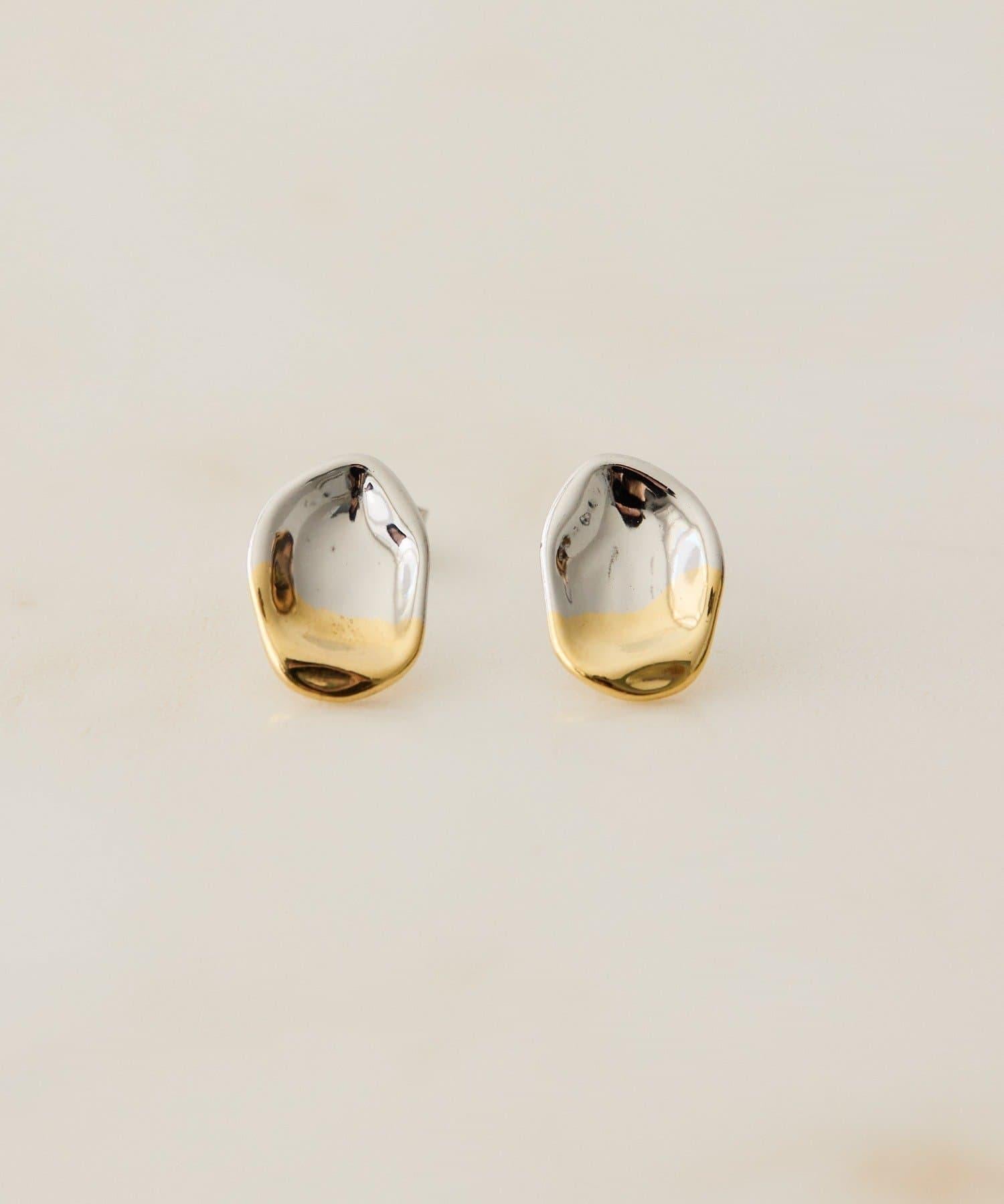 《スターリングシルバー使用》雙色迷你圓牌耳釘