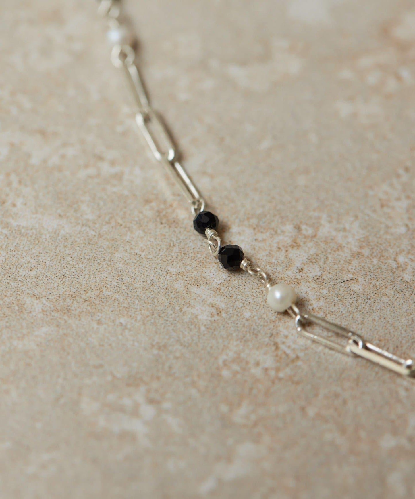縞瑪瑙和淡水珍珠的組合增添了微妙而優質的光澤,提升了成年人的女性氣質。