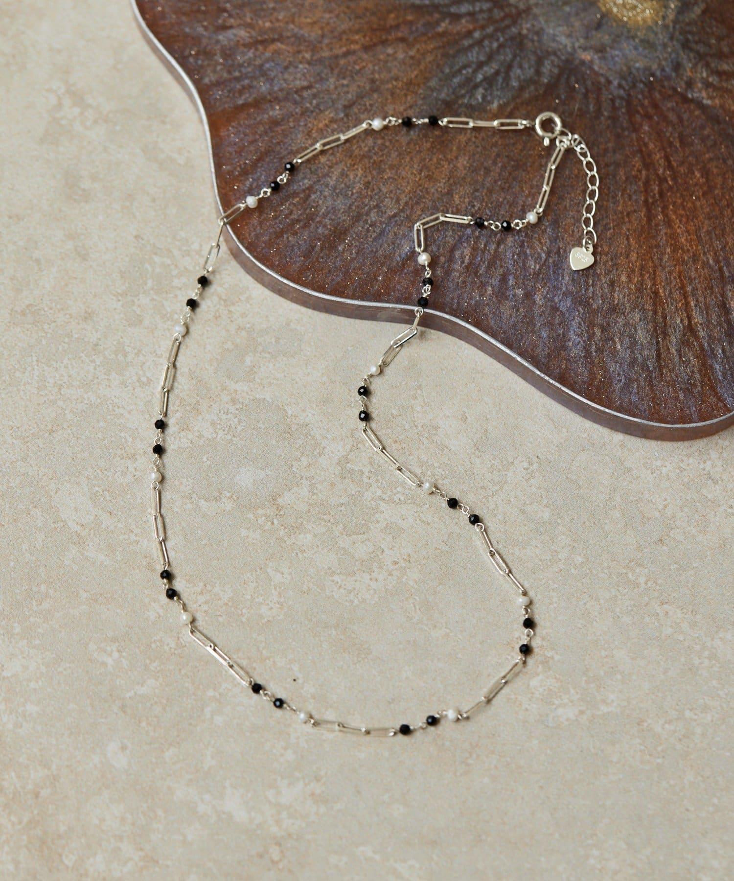 單色項鍊的設計鏈條由天然材料製成,給人以精緻典雅的印象。