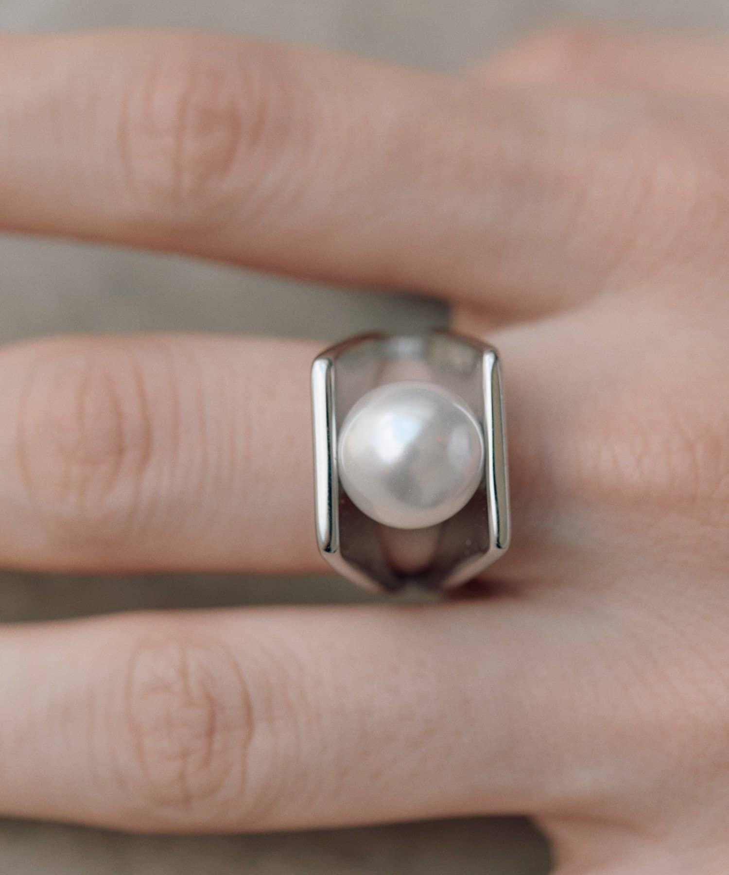 珍珠的使用為戒指增添了酷炫的現代感。