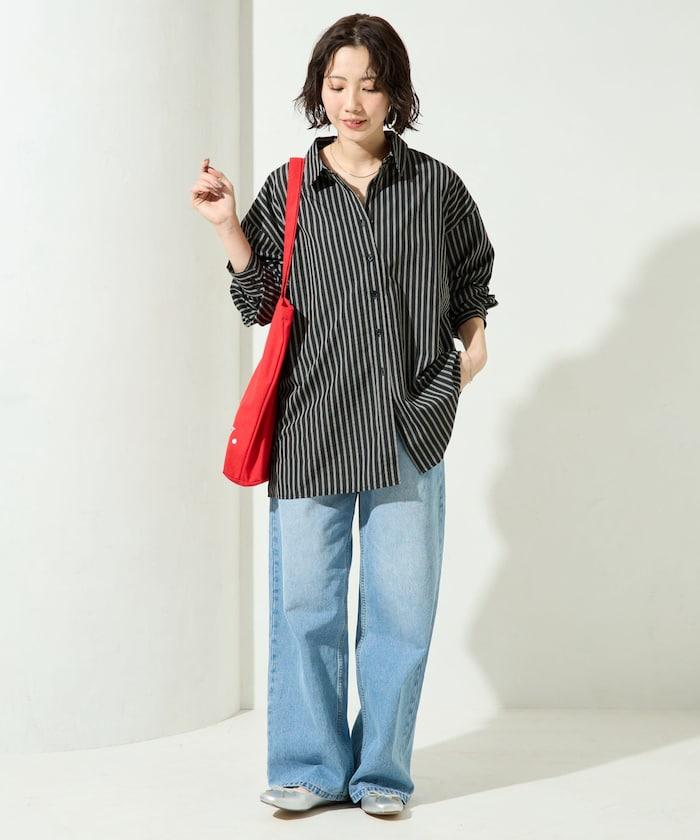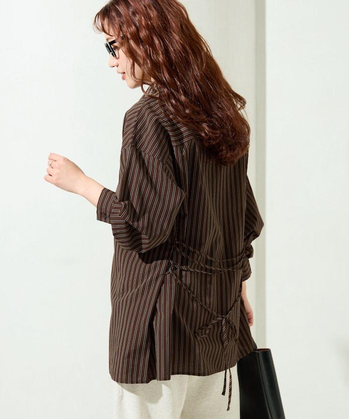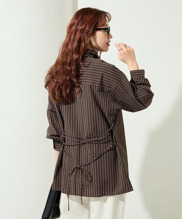 ストライプバックレースアップシャツ【限定展開】