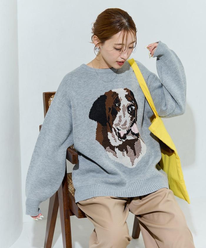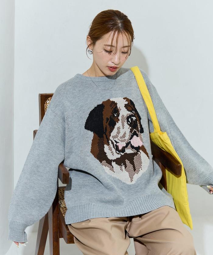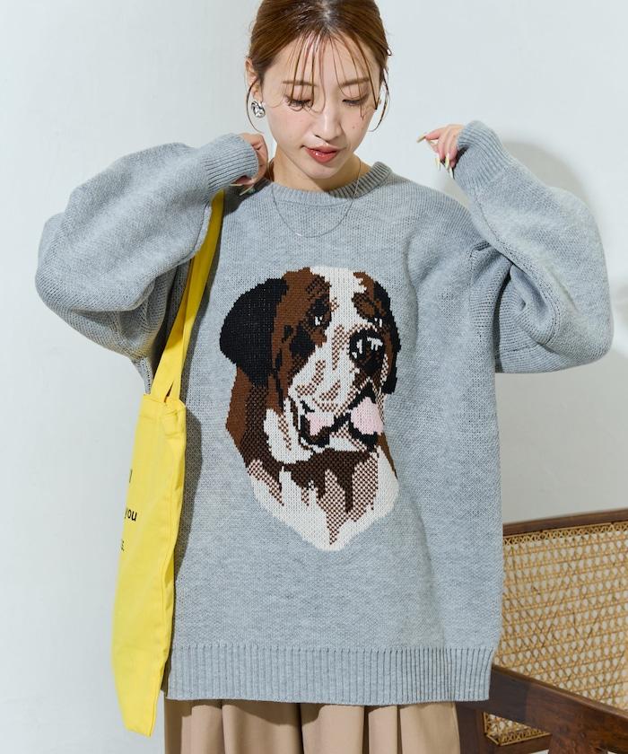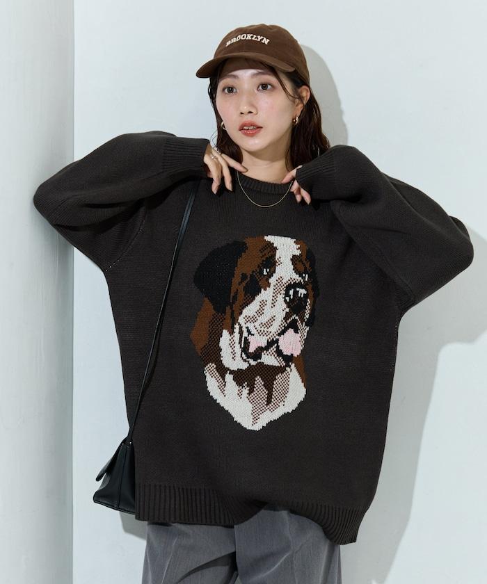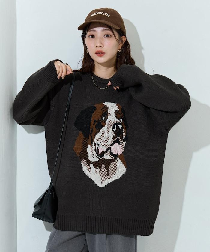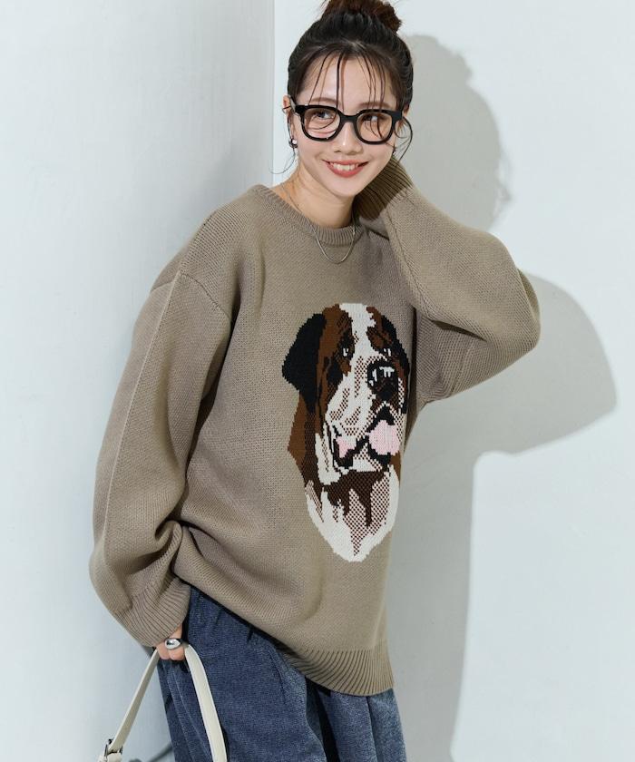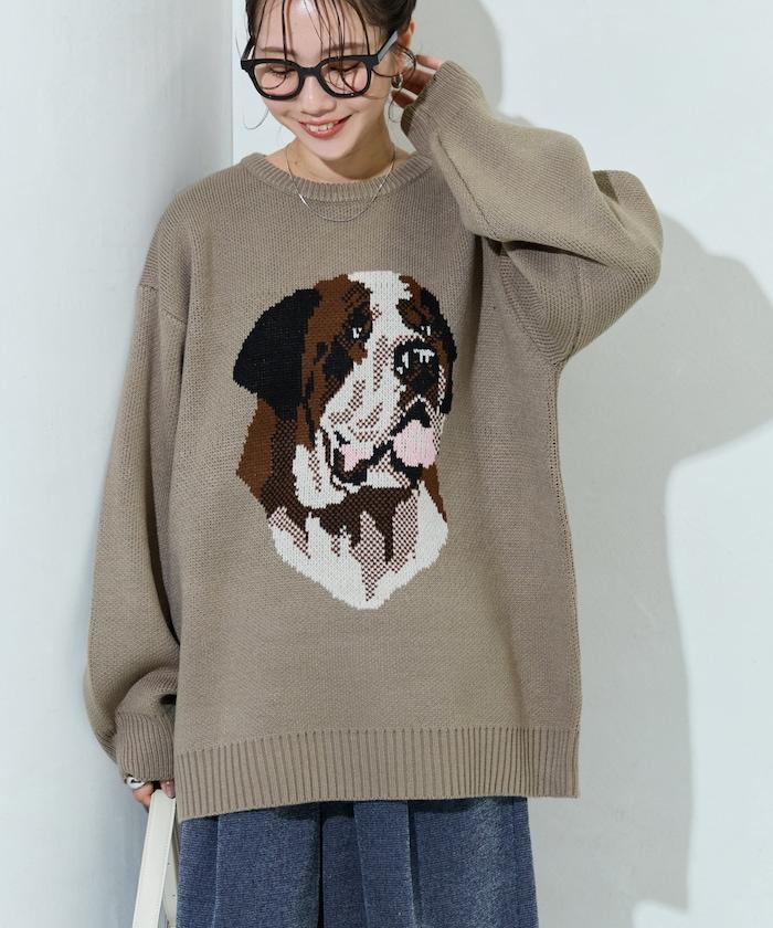 セントバーナード dog ジャガード ビッグ ニット プルオーバー【限定展開】