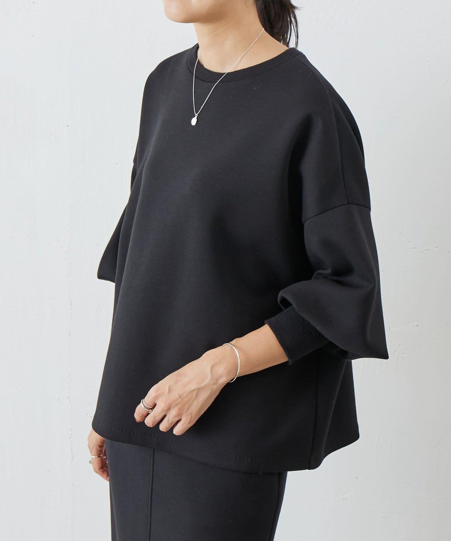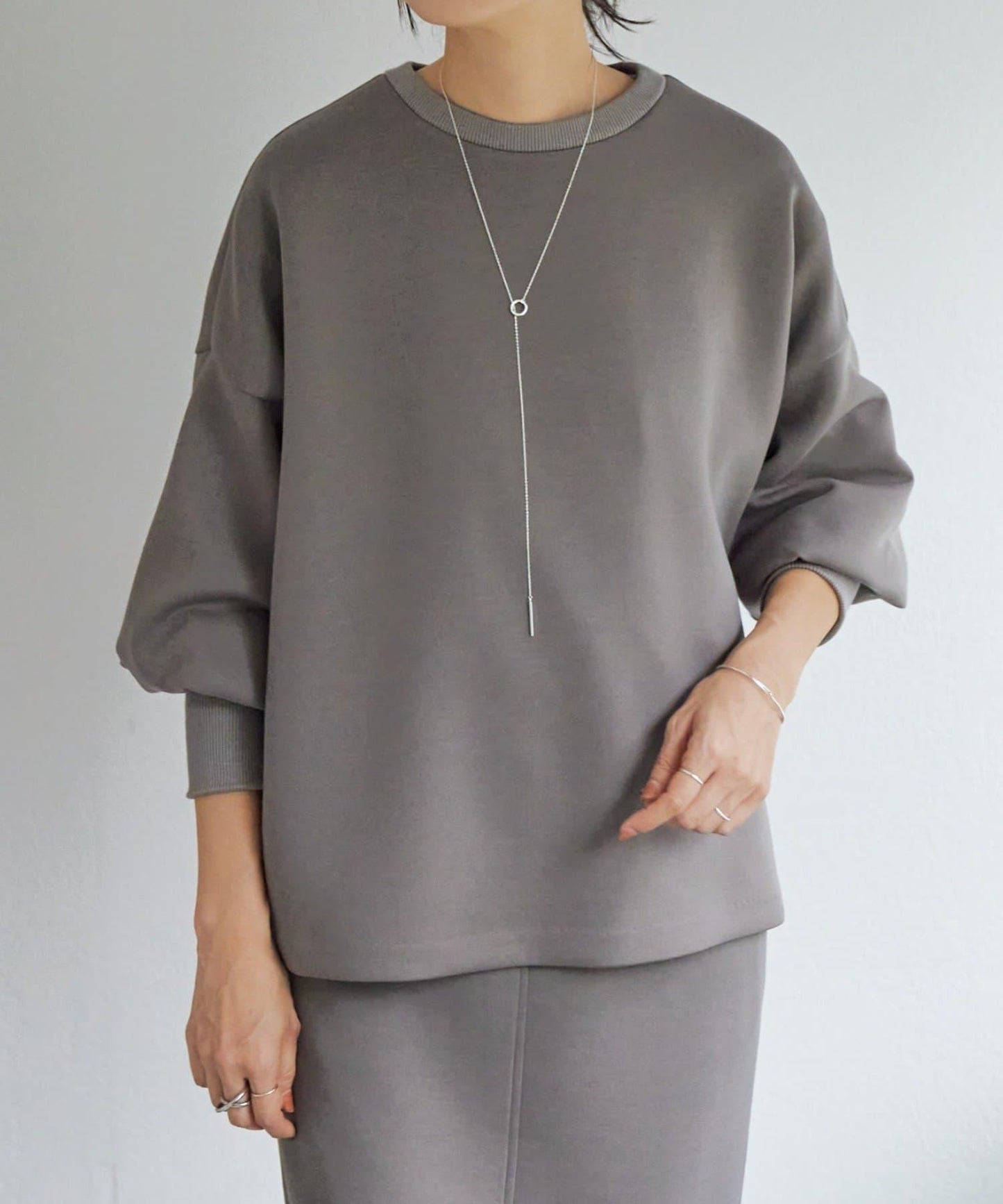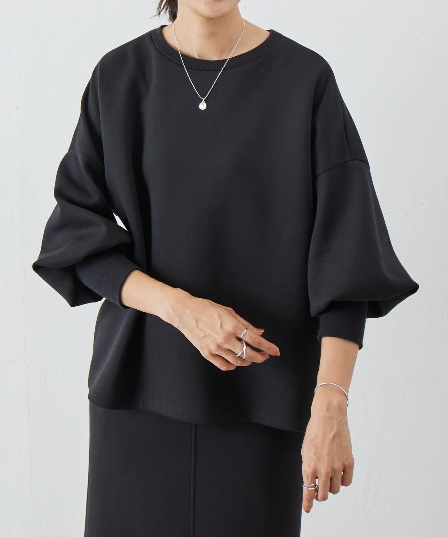 長羅紋袖口的設計突出了蓬蓬袖的平衡和豐滿。