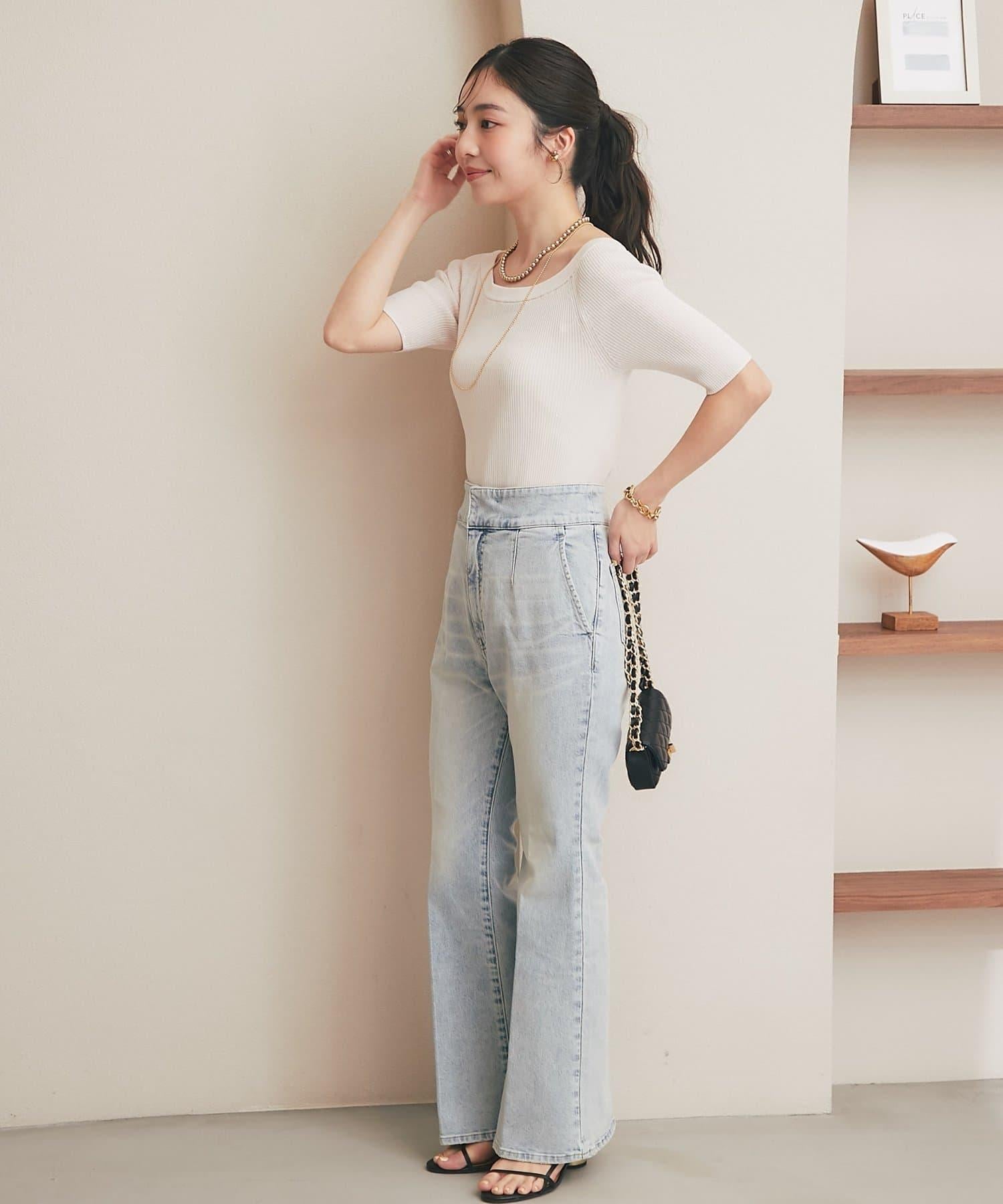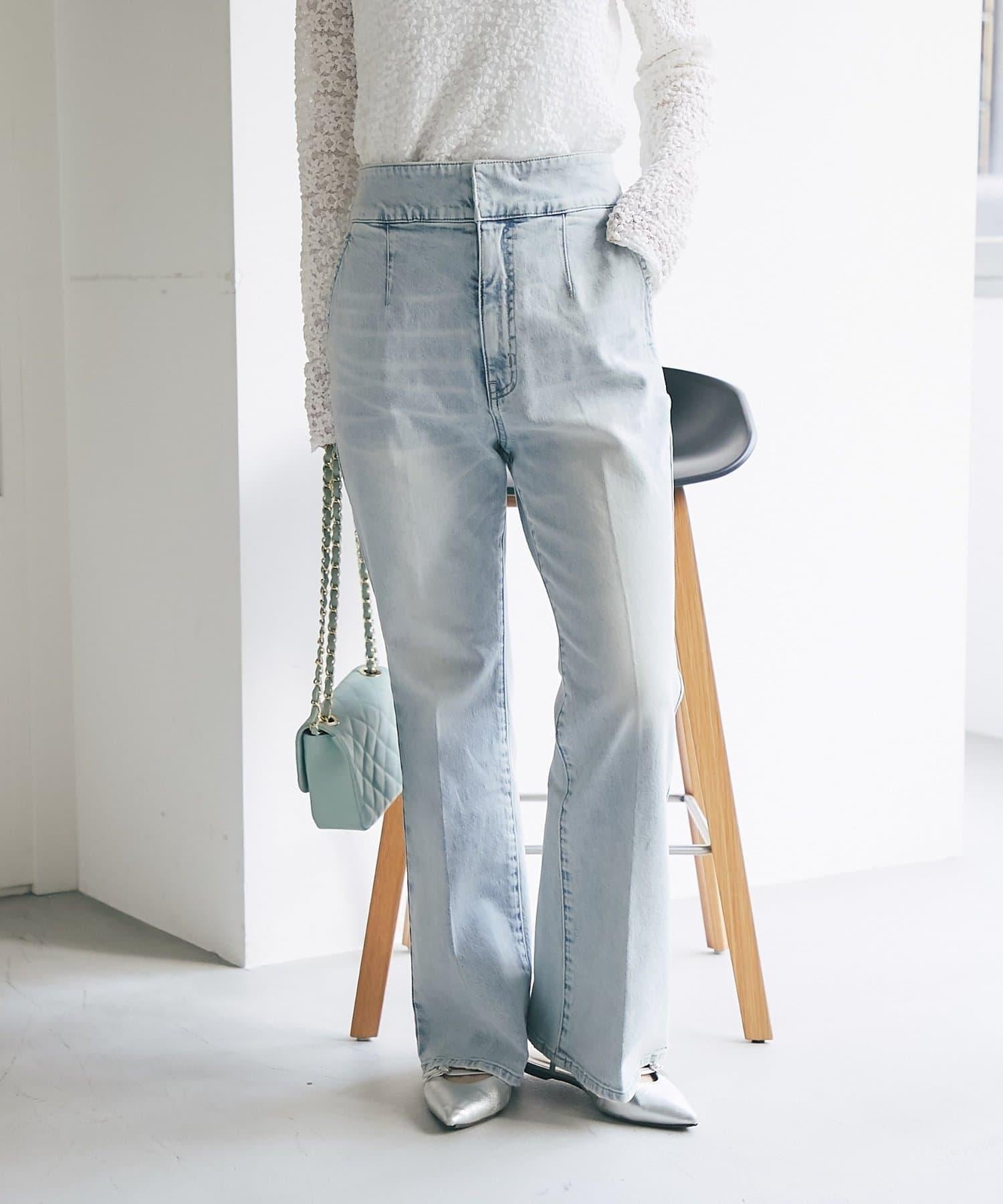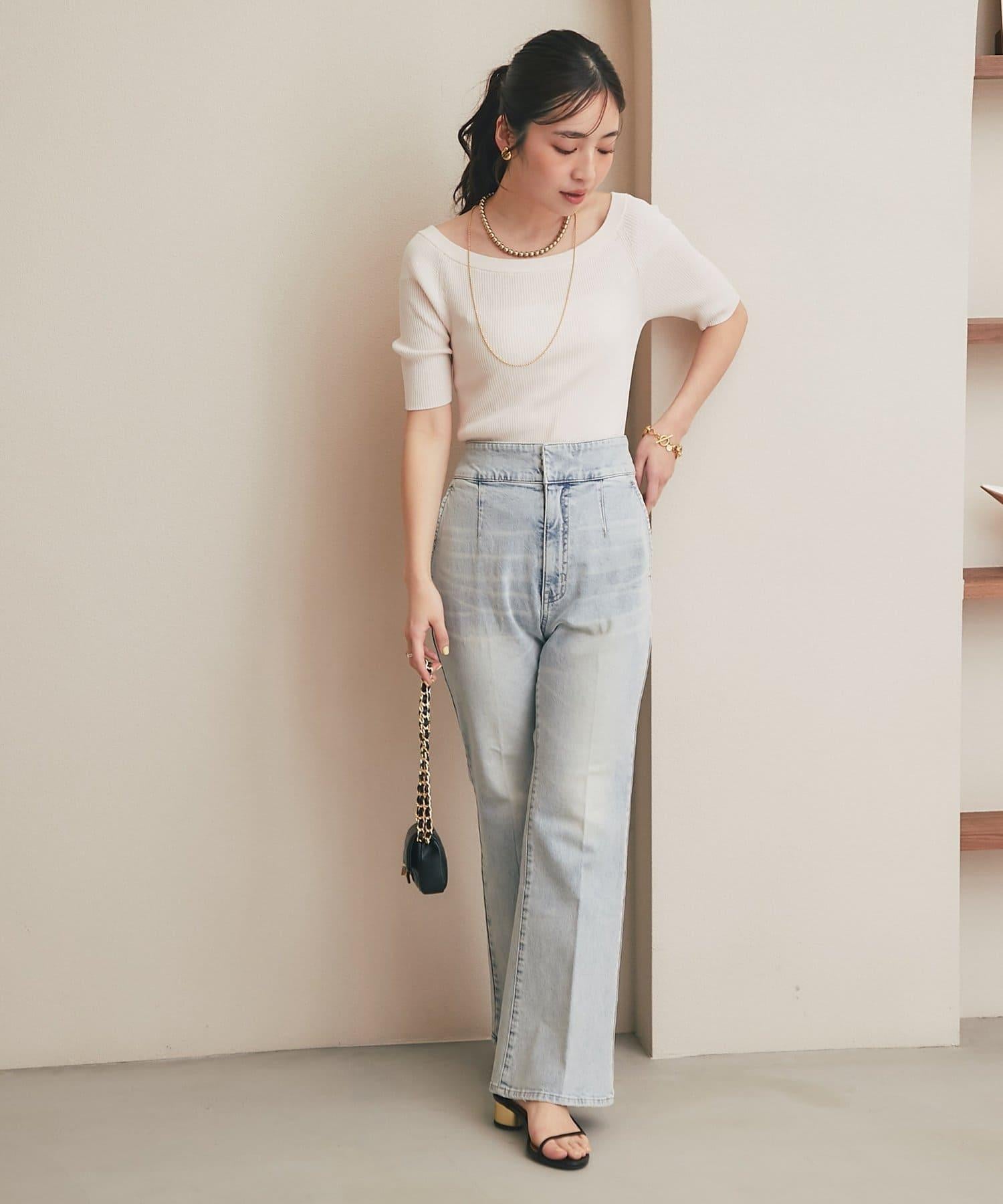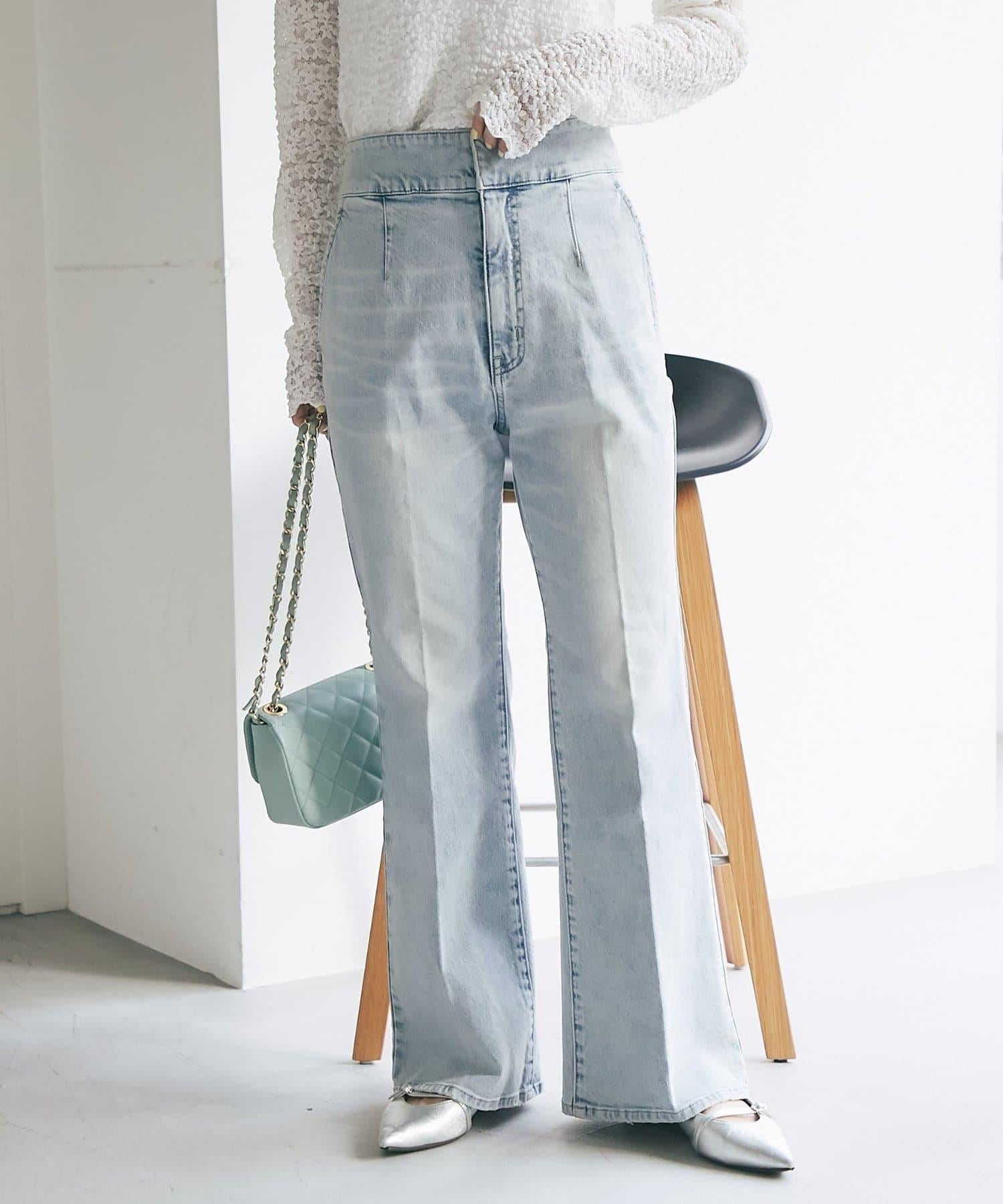 廓形優美的牛仔喇叭褲,後背與眾不同。
