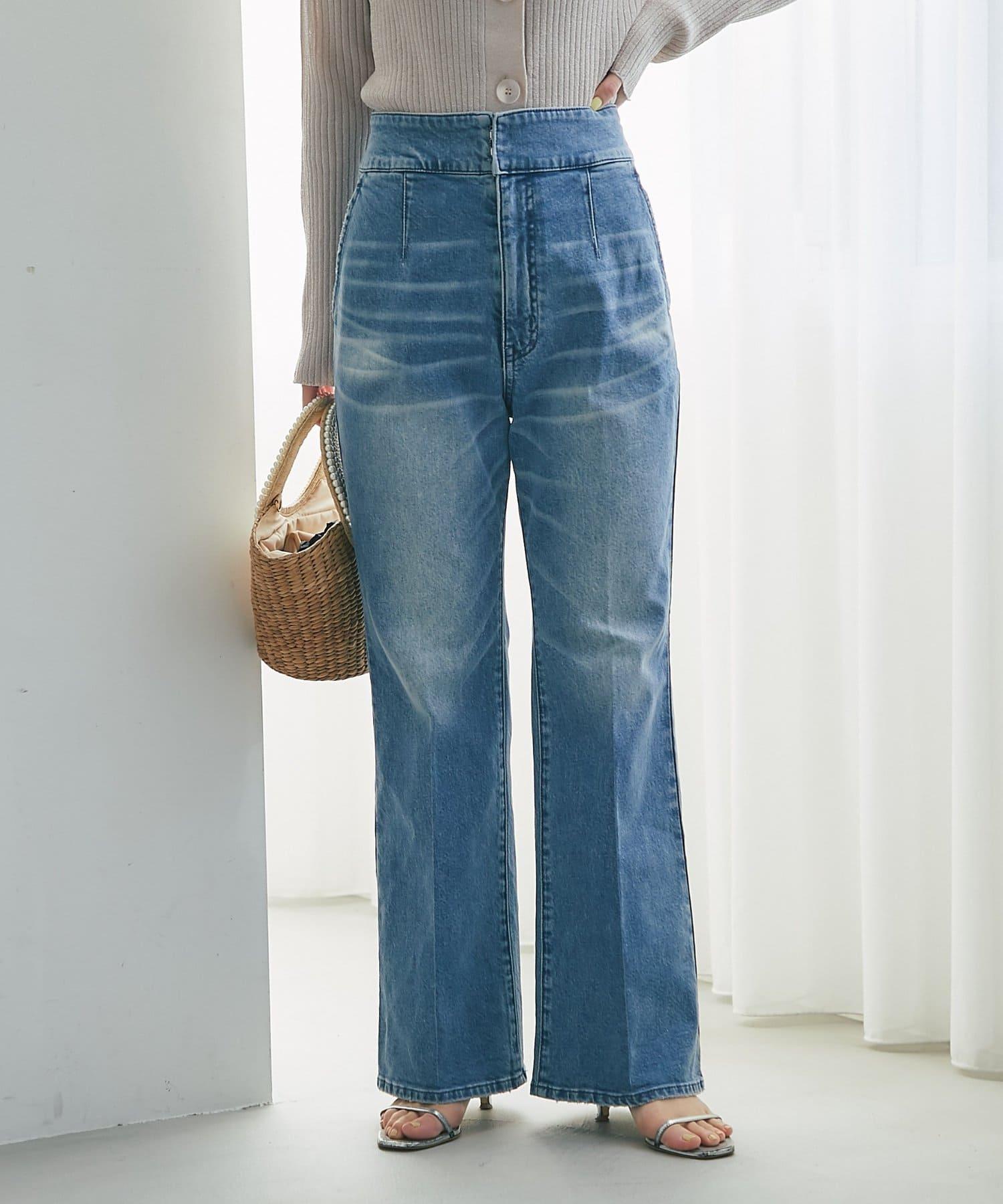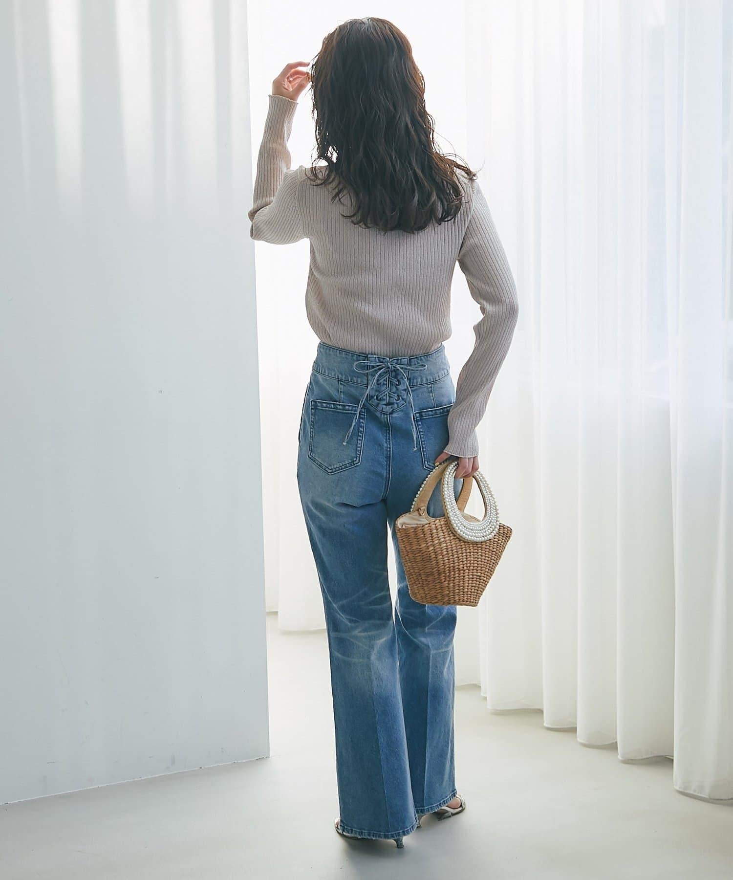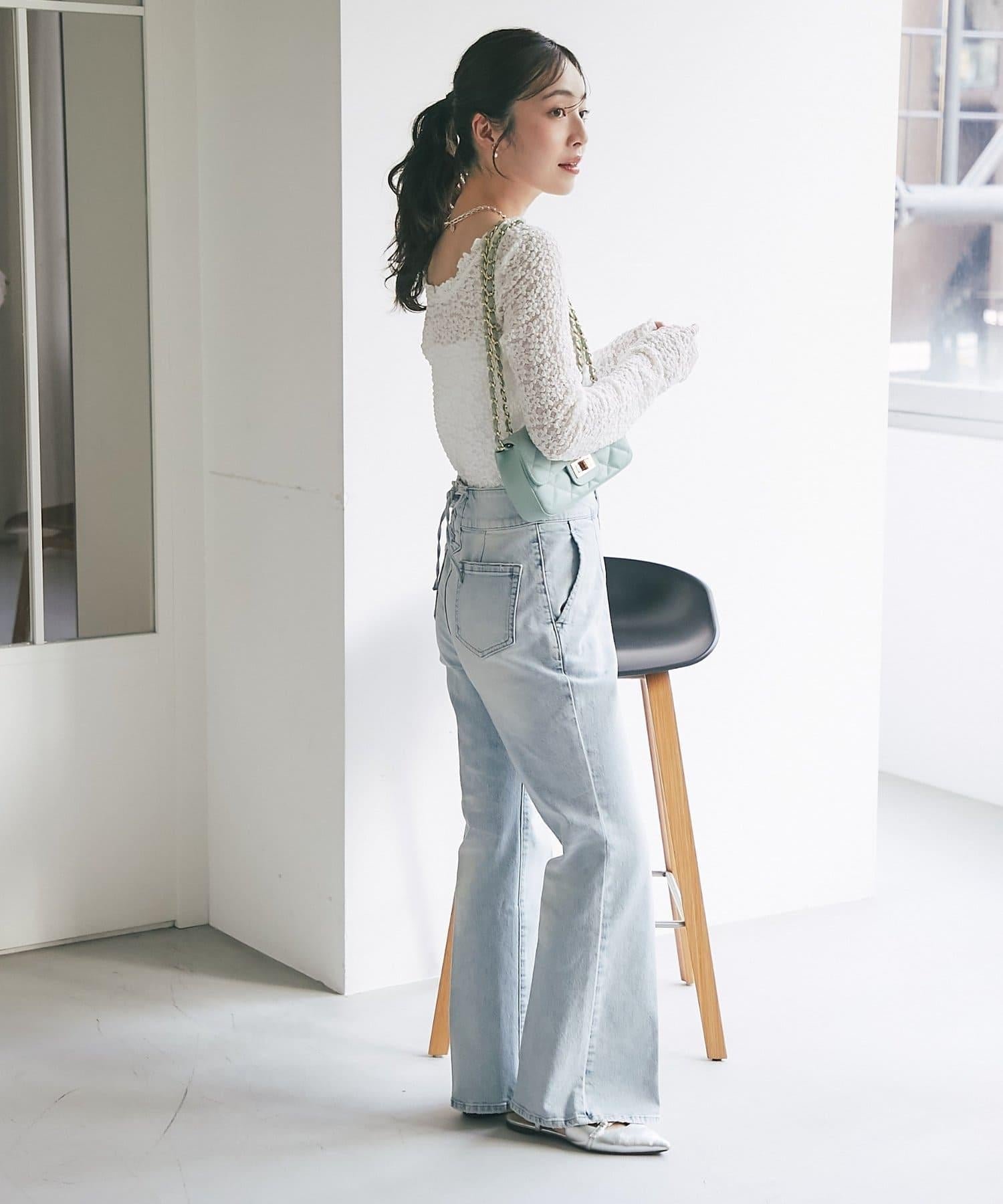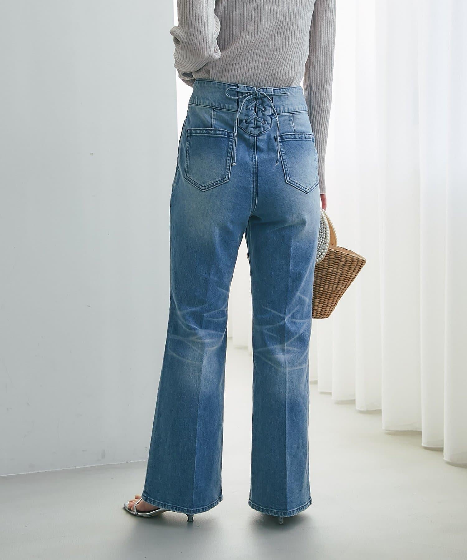 這款牛仔喇叭褲背面的繫帶設計十分搶眼。