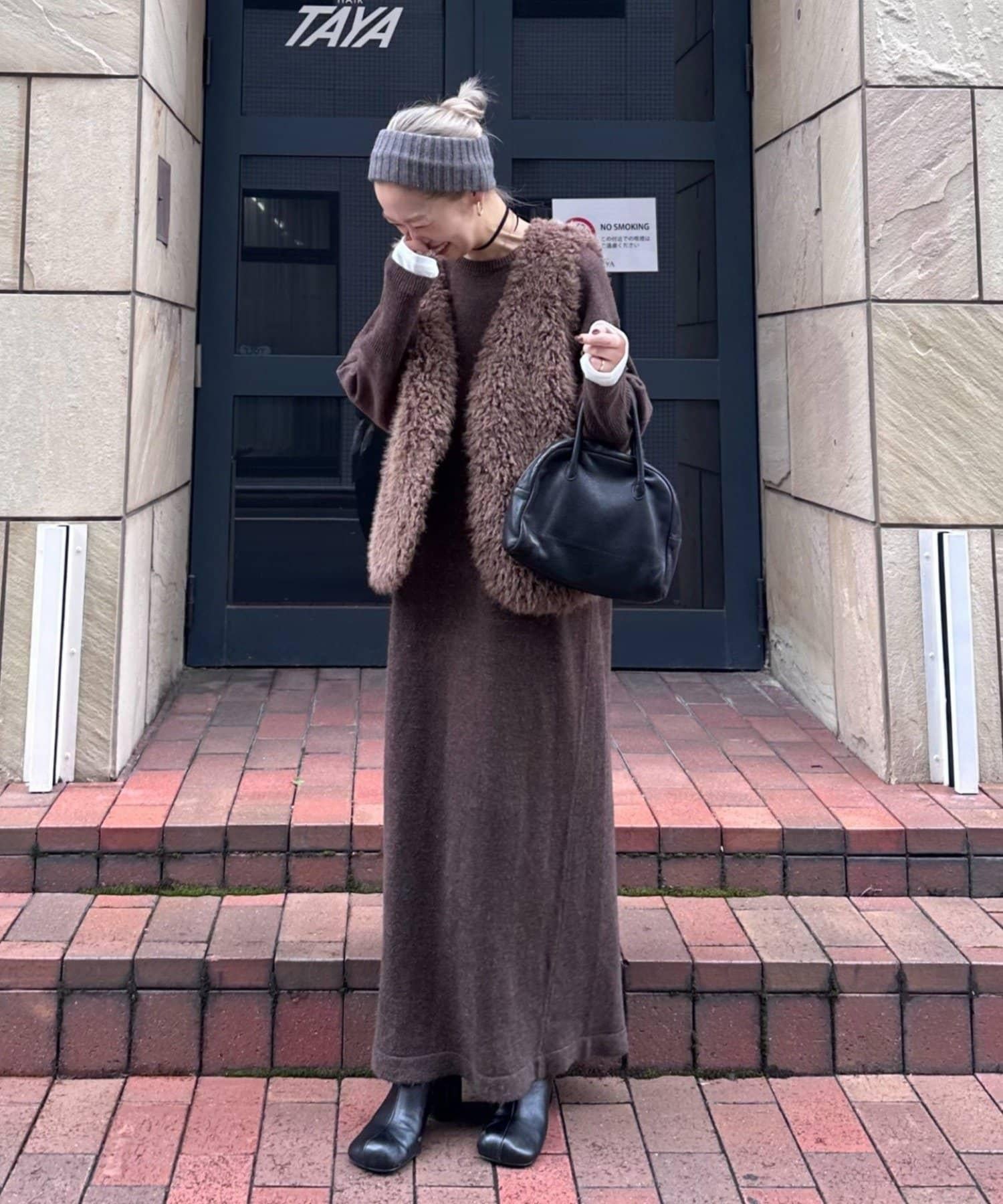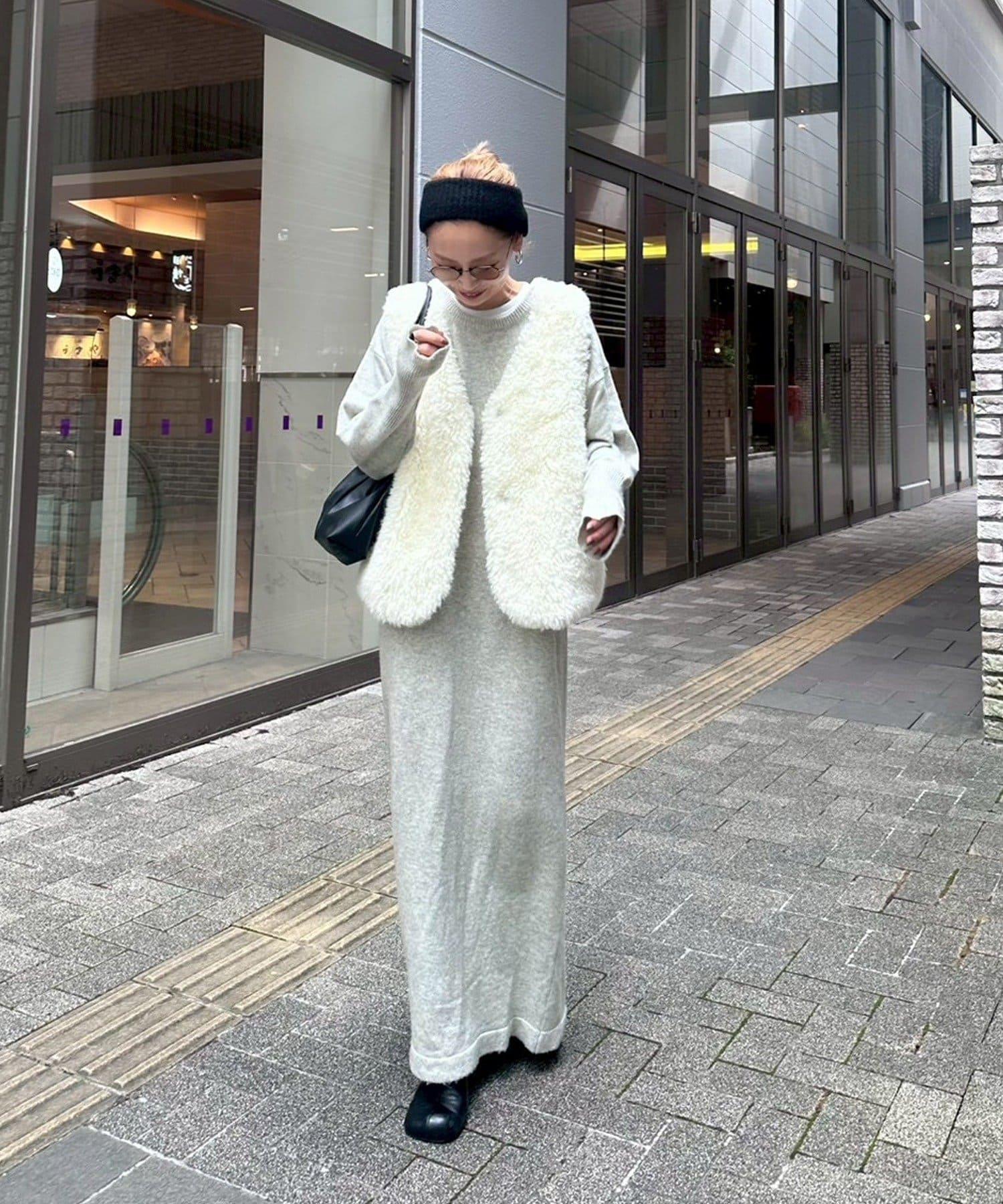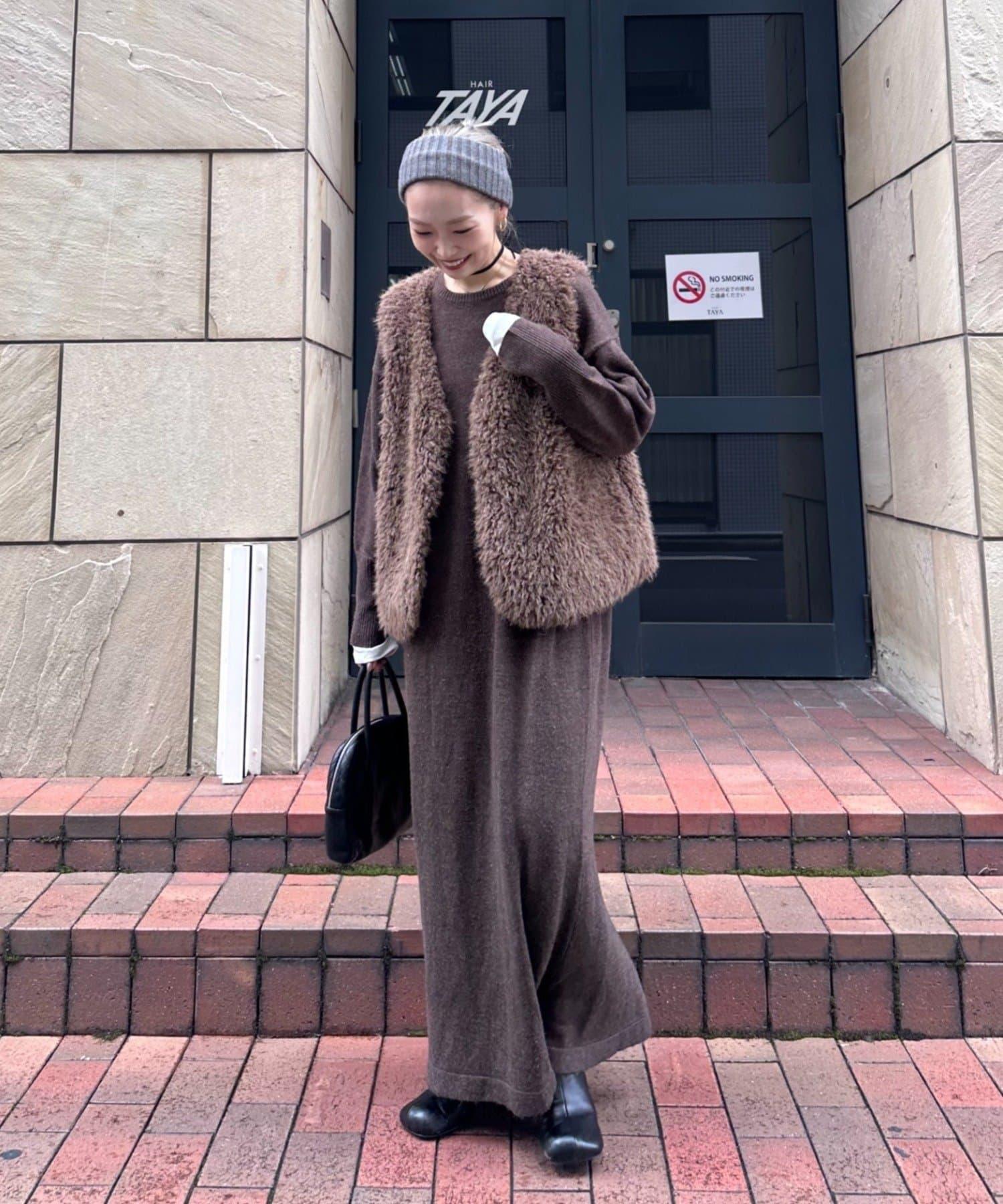 PON 項目] 羊毛混紡圓領針織連衣裙