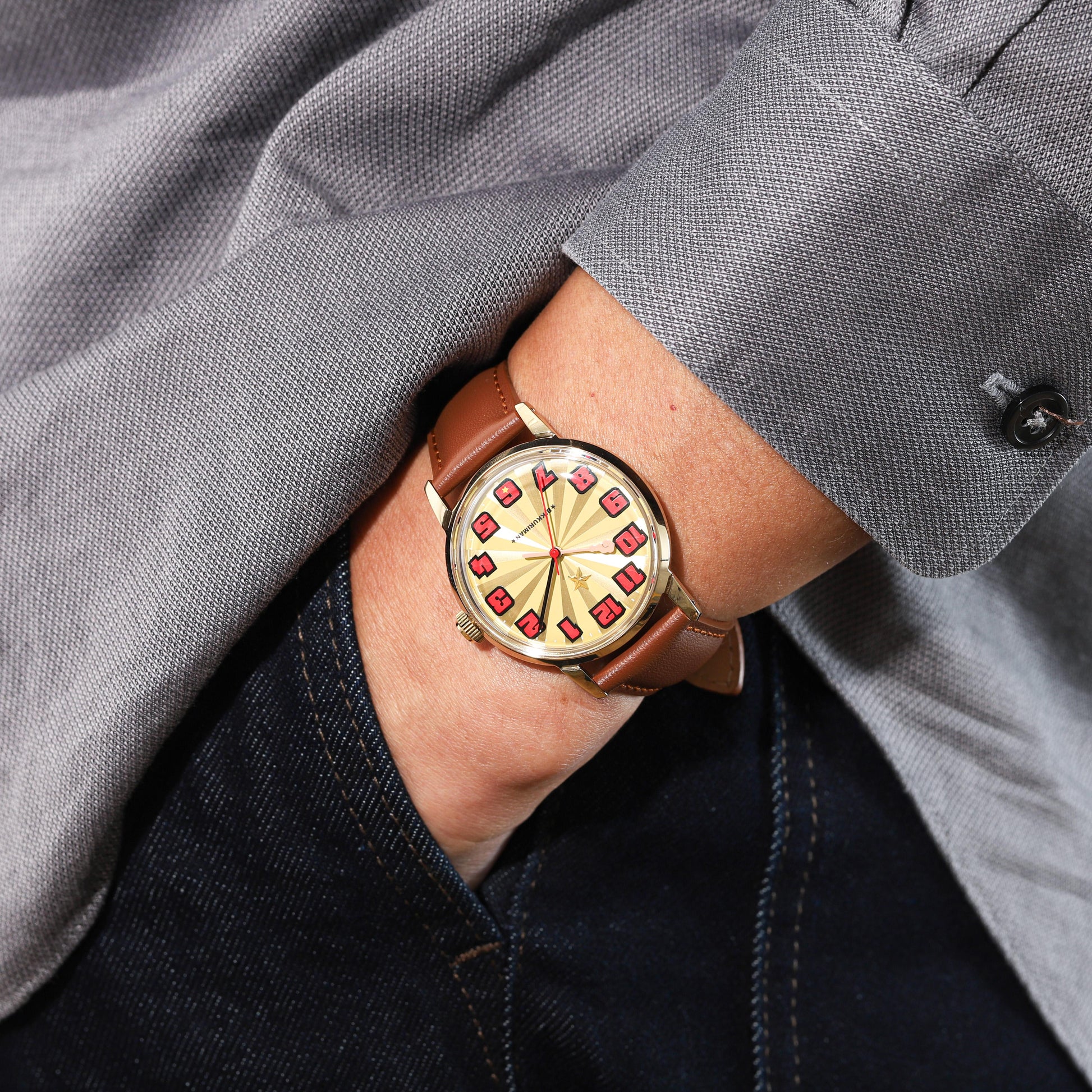 錶盤設計以超級宙斯的光環為形象,短針以大聖棍為圖案,標誌性的額頭星立體位於 12 點鐘刻度下方。