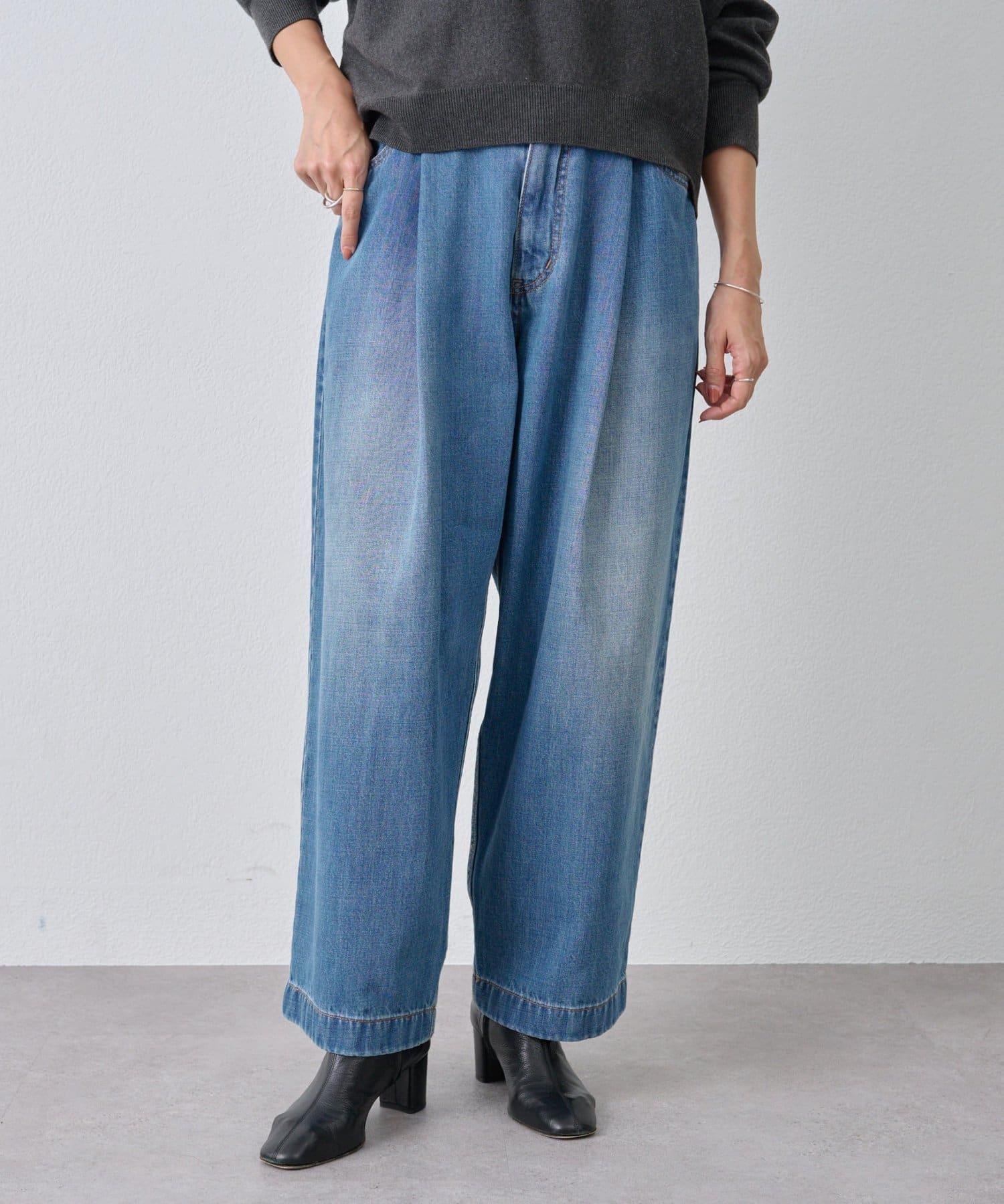 《フルカワコラボ》寬鬆褶皺牛仔褲
