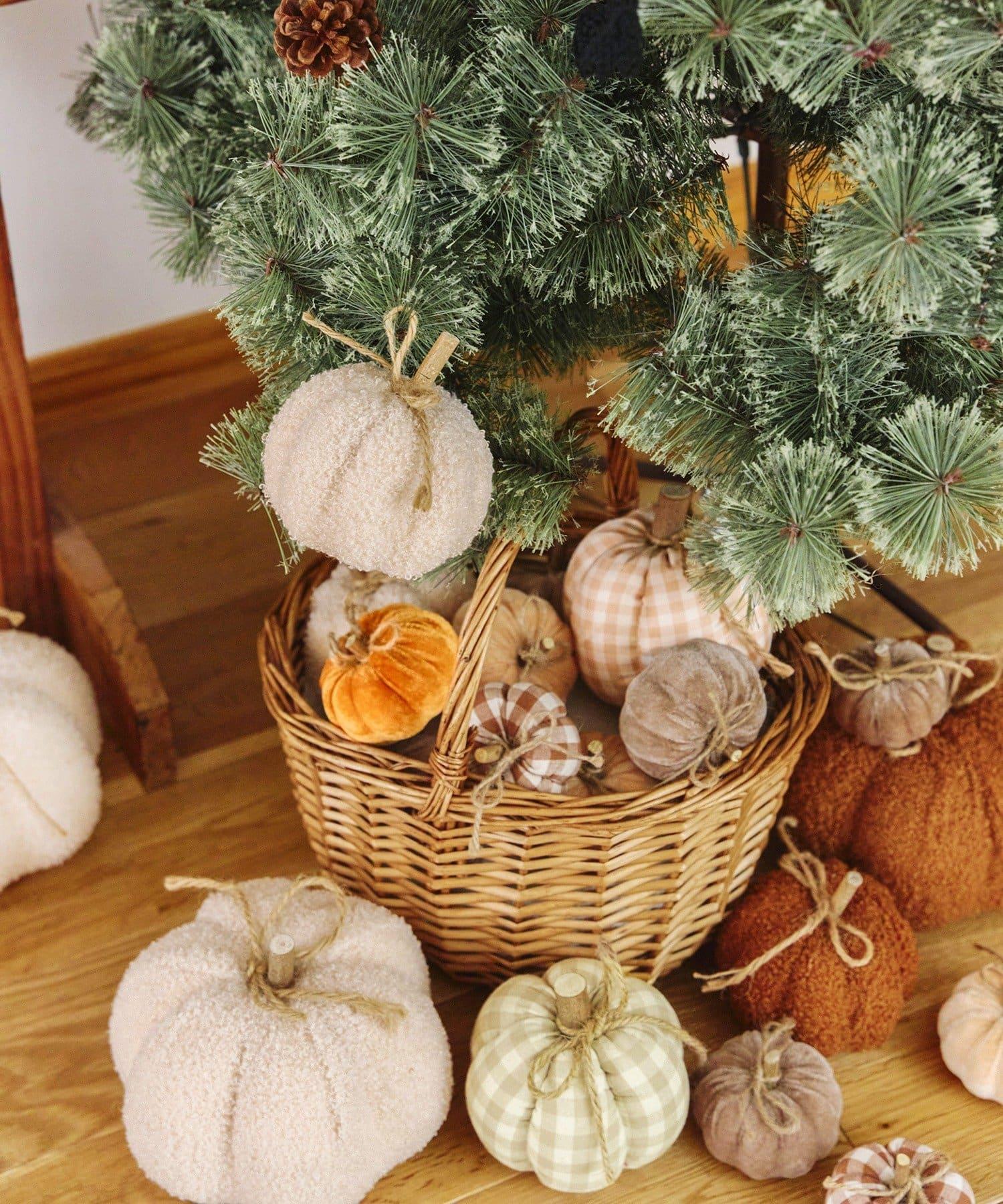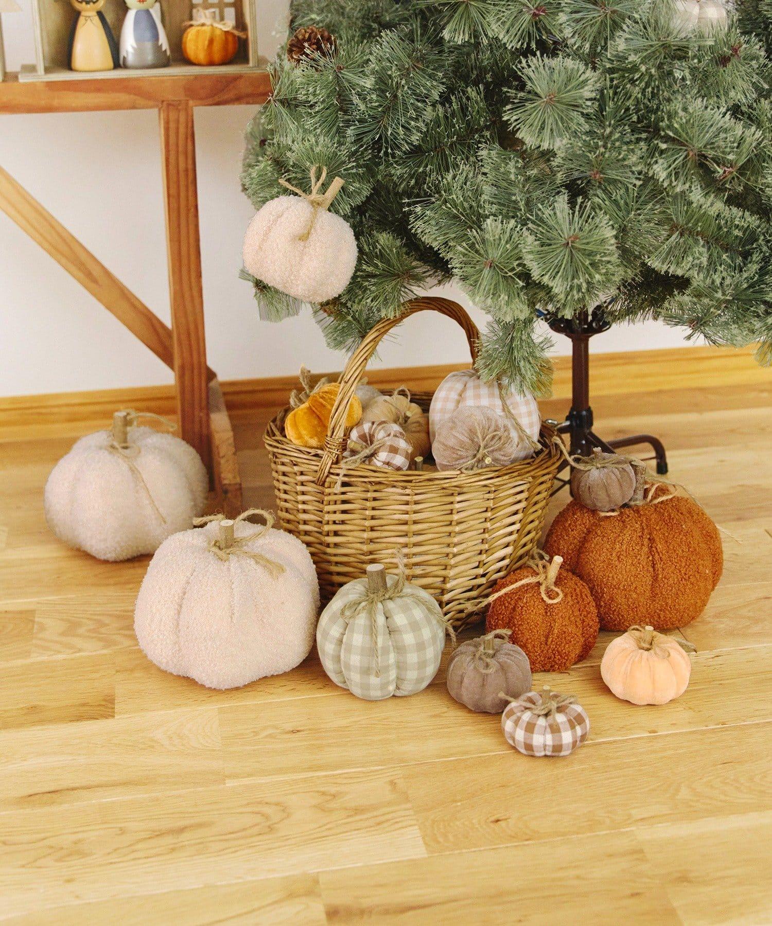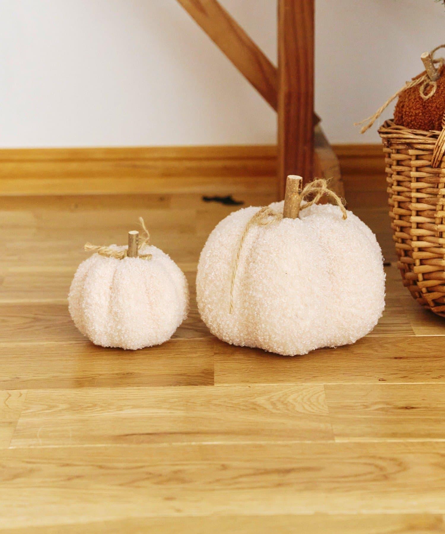 可愛的南瓜藝術品,配以捲曲的獅子狗蟒蛇布。