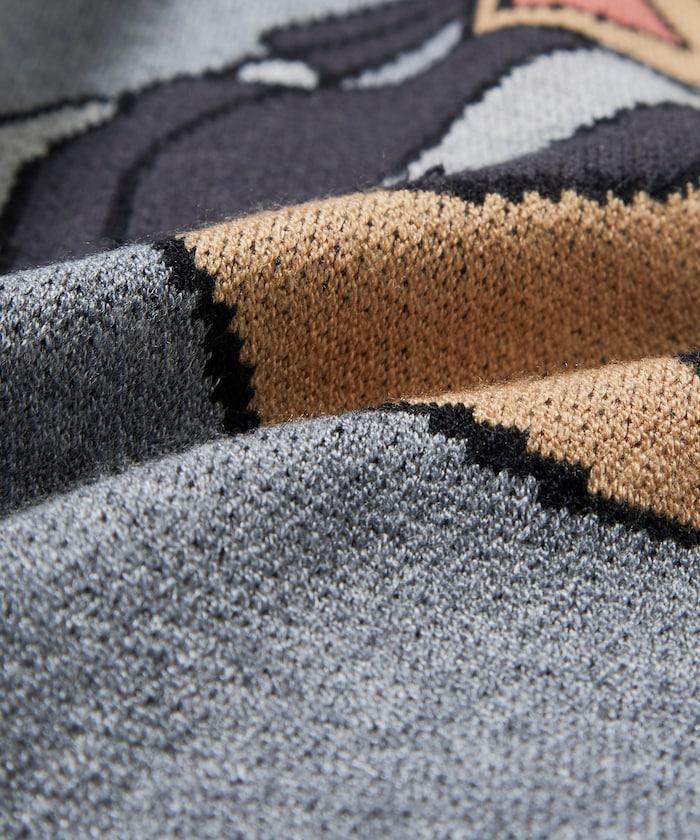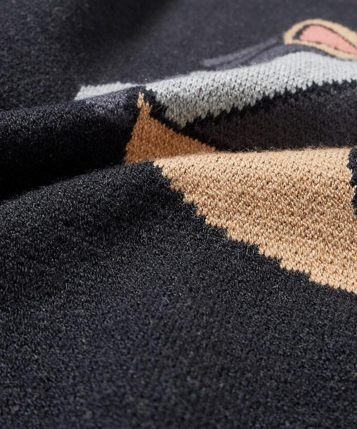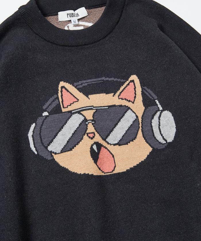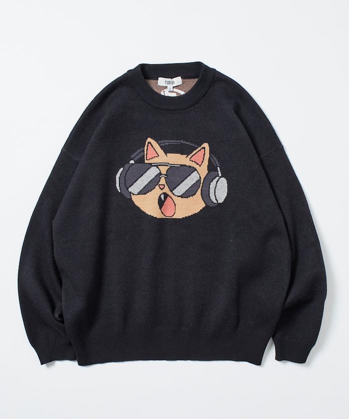 提花針織衫的正面圖案是一隻戴著水滴形太陽鏡的神秘小貓 Doro,儘管它是一隻被遺棄的貓,但有一天 Rage 撿到了它,它只能過著優雅的生活。