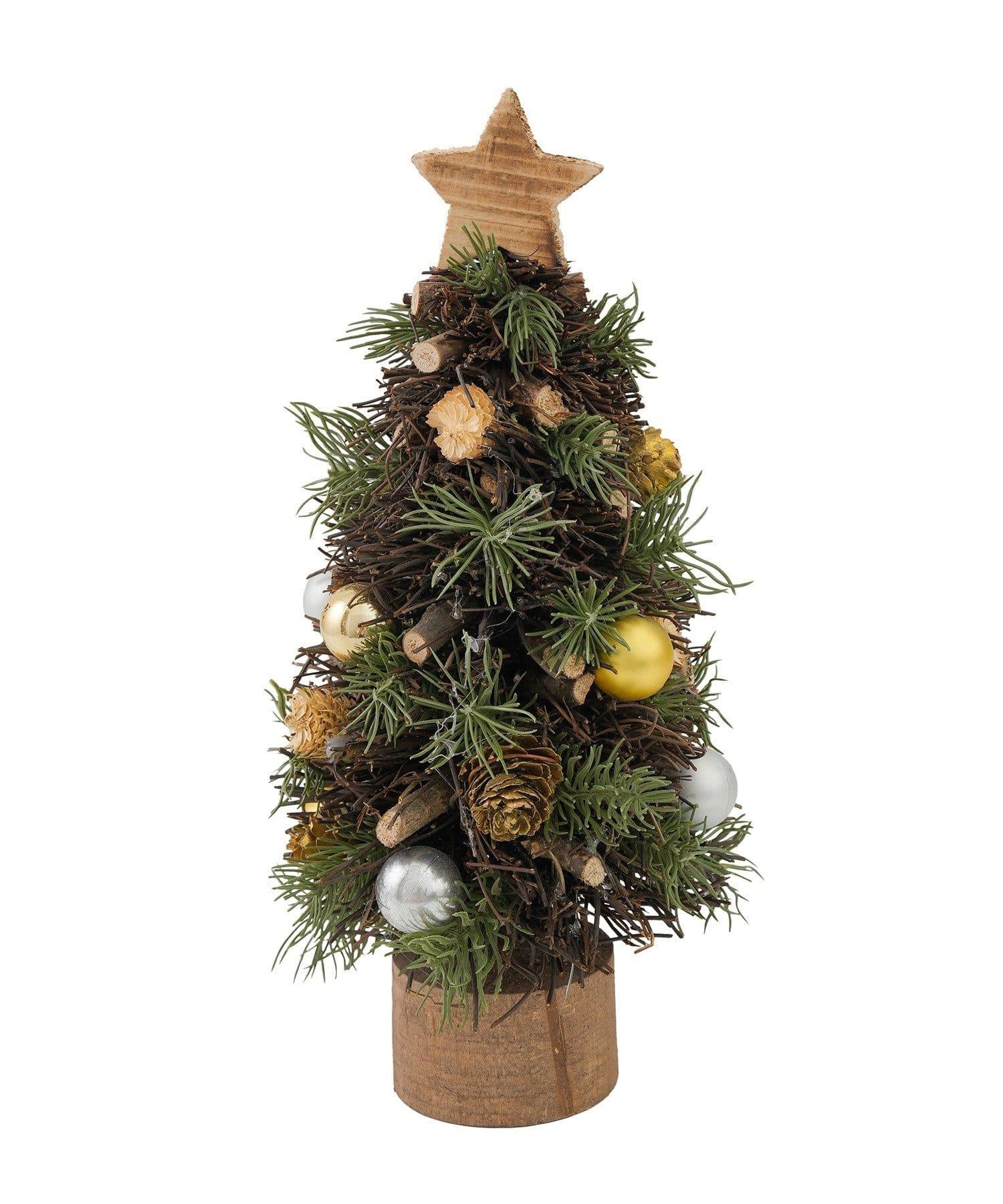● 裝有松果和球形裝飾品的迷你聖誕樹。