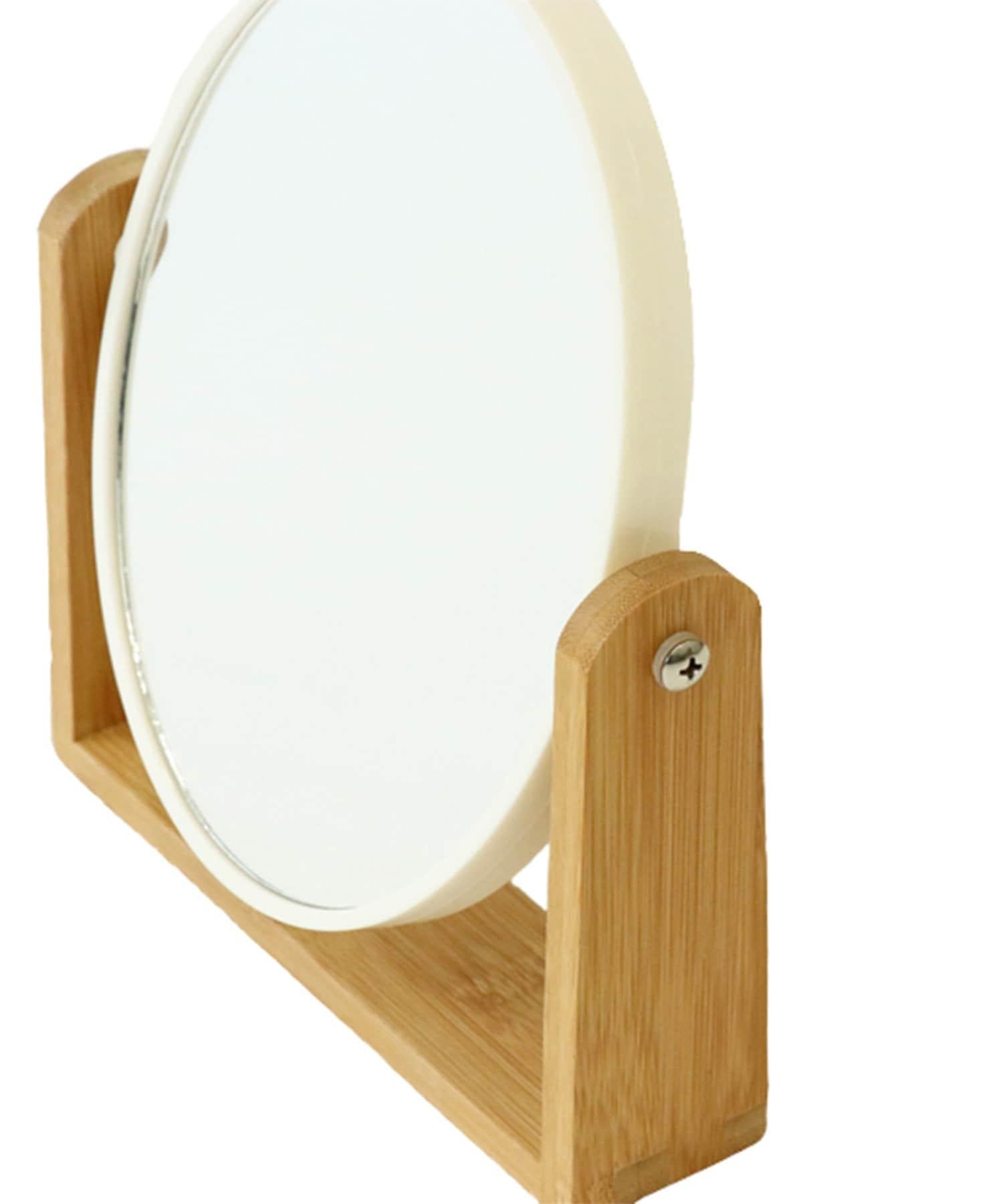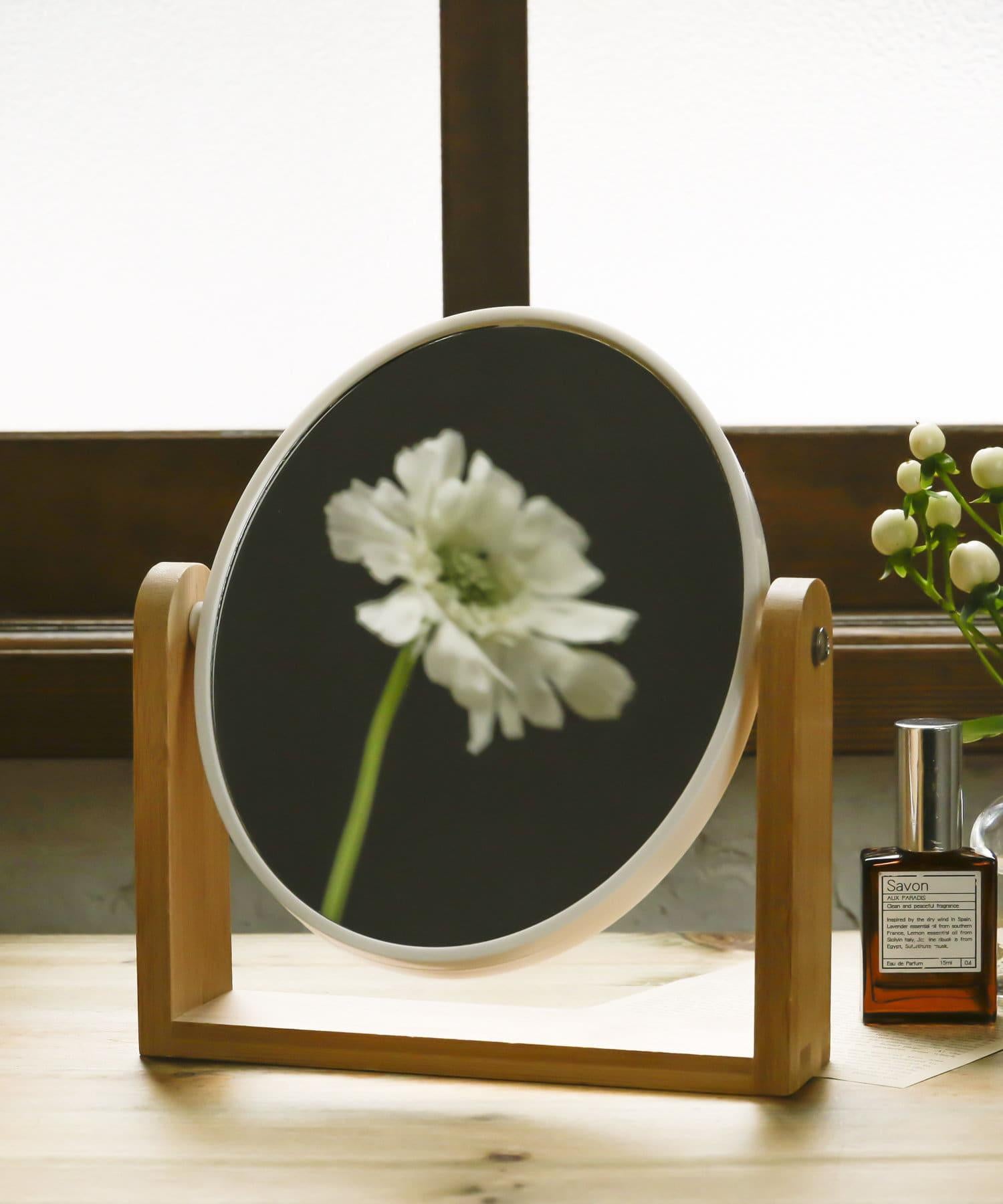 如果鏡子髒了,請用乾布輕輕擦拭。切勿使用洗滌劑或清潔劑或用水清洗。切勿使用清潔劑或清潔劑或用水清洗,因為它們可能會劃傷竹子或玻璃表面。