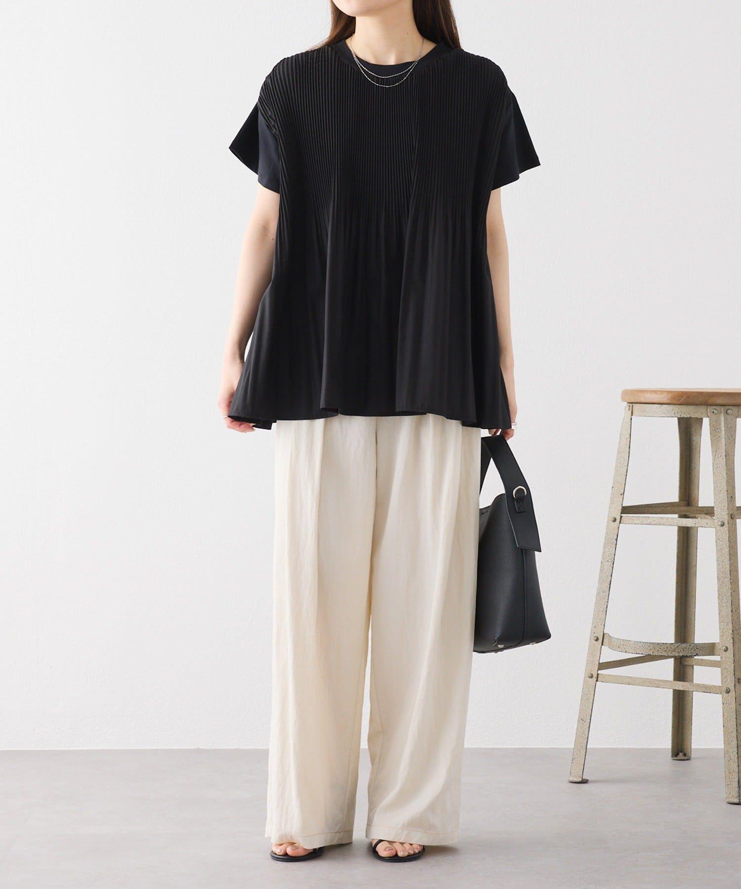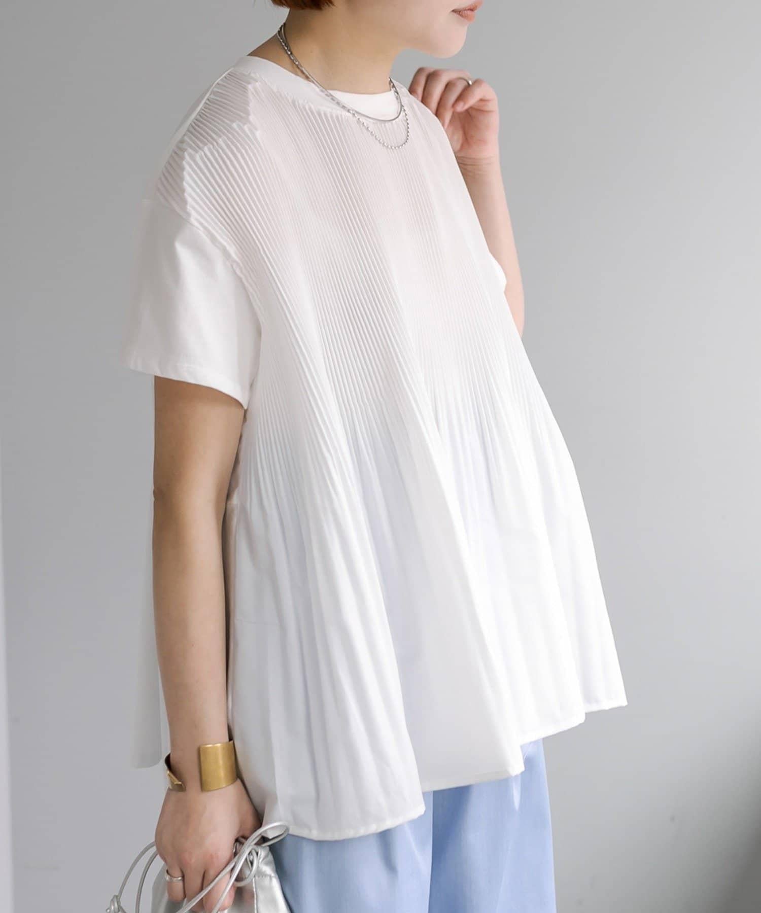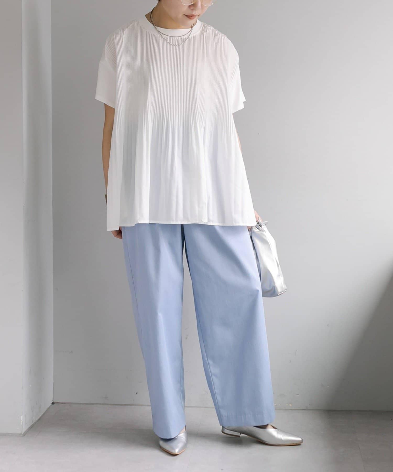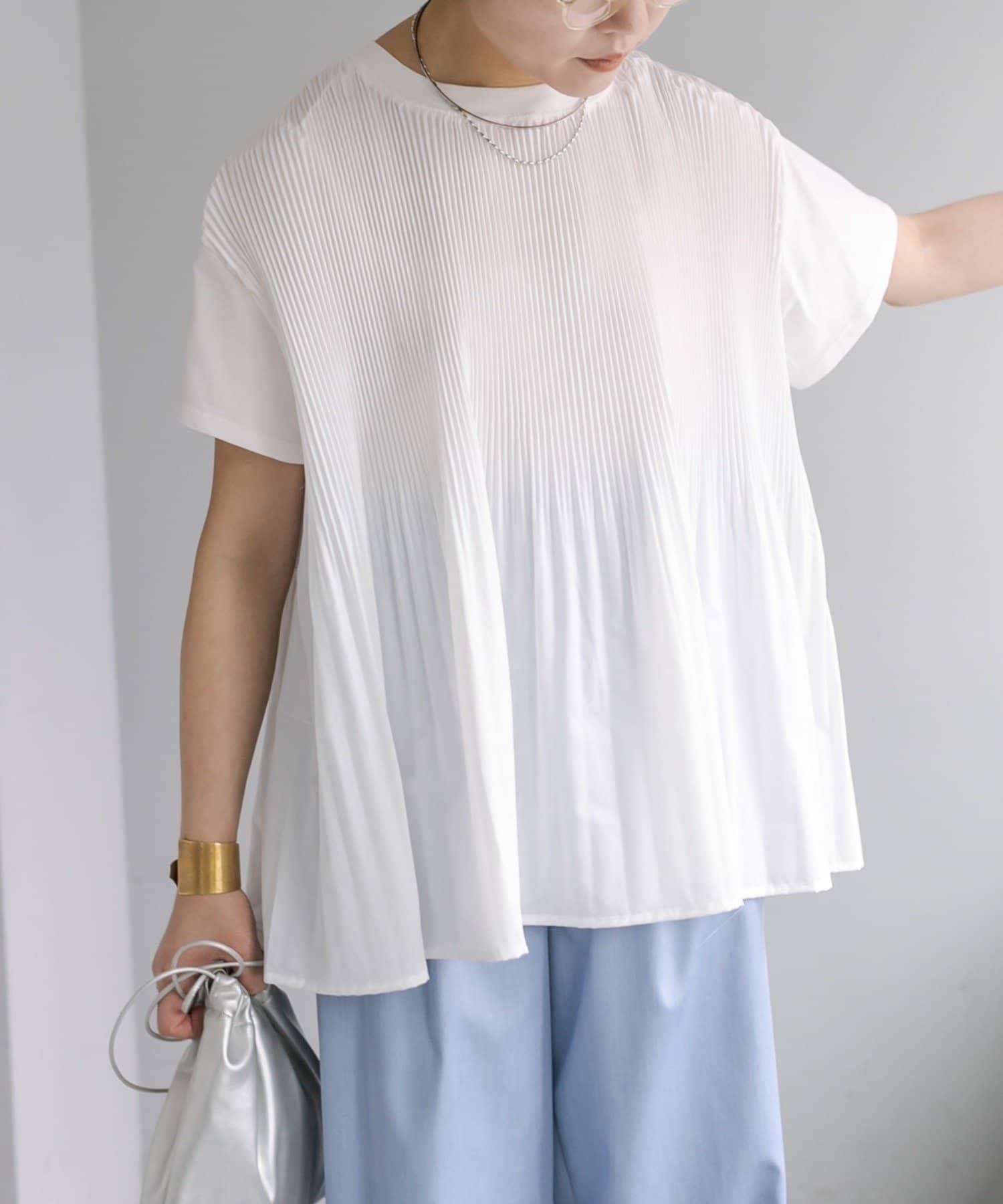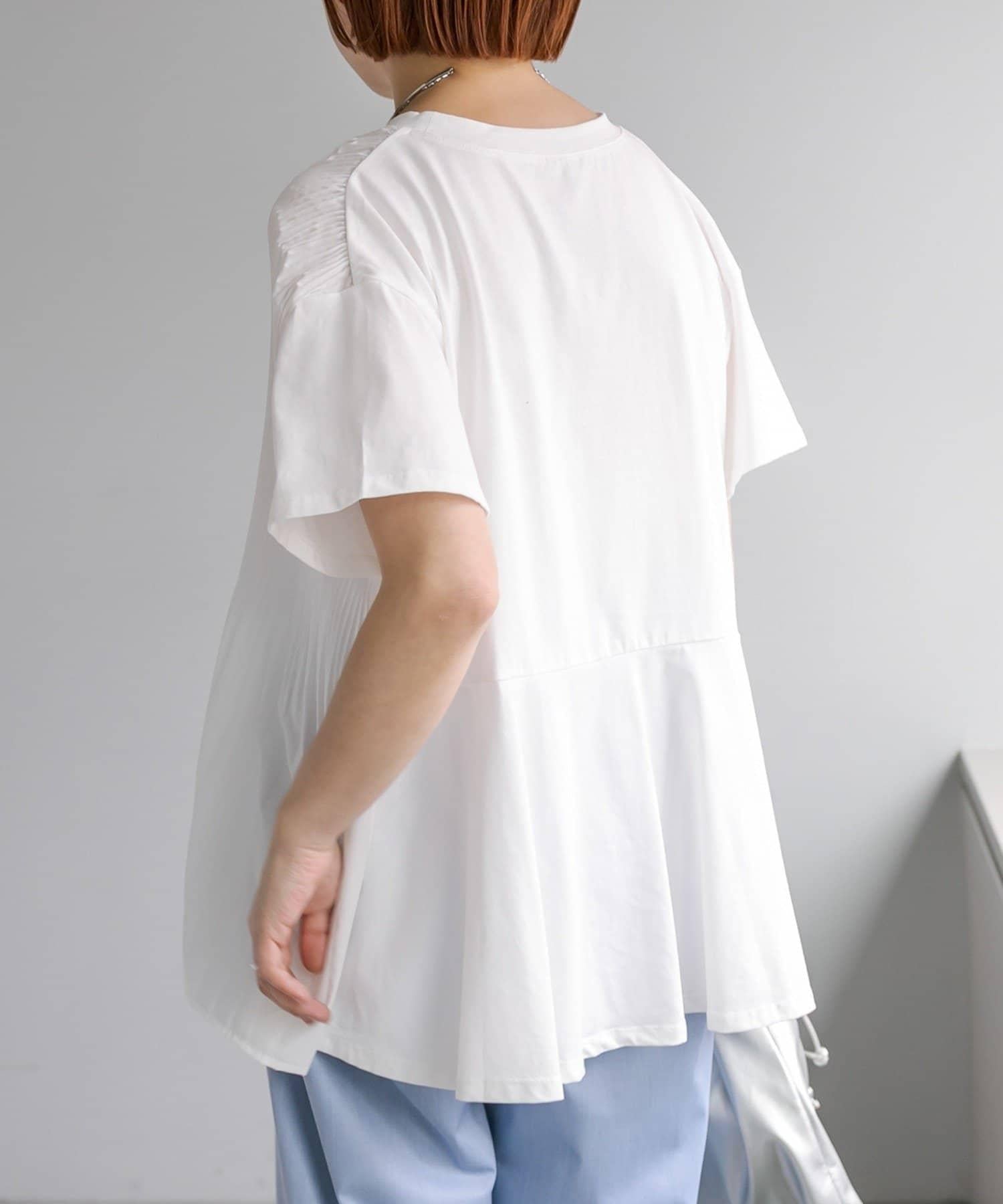 不那麼休閒的設計 T 恤,華麗的褶皺設計給人優雅的印象。