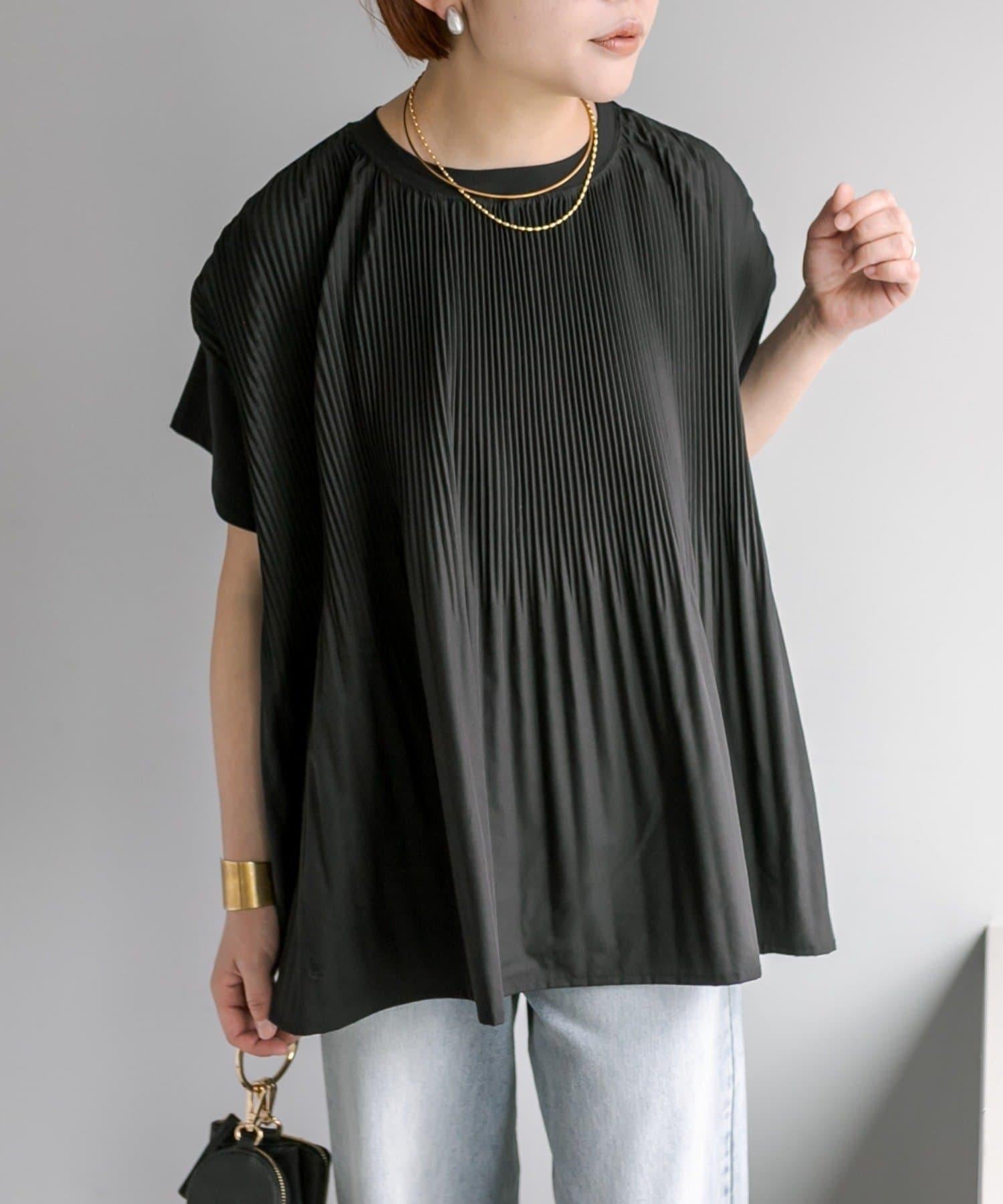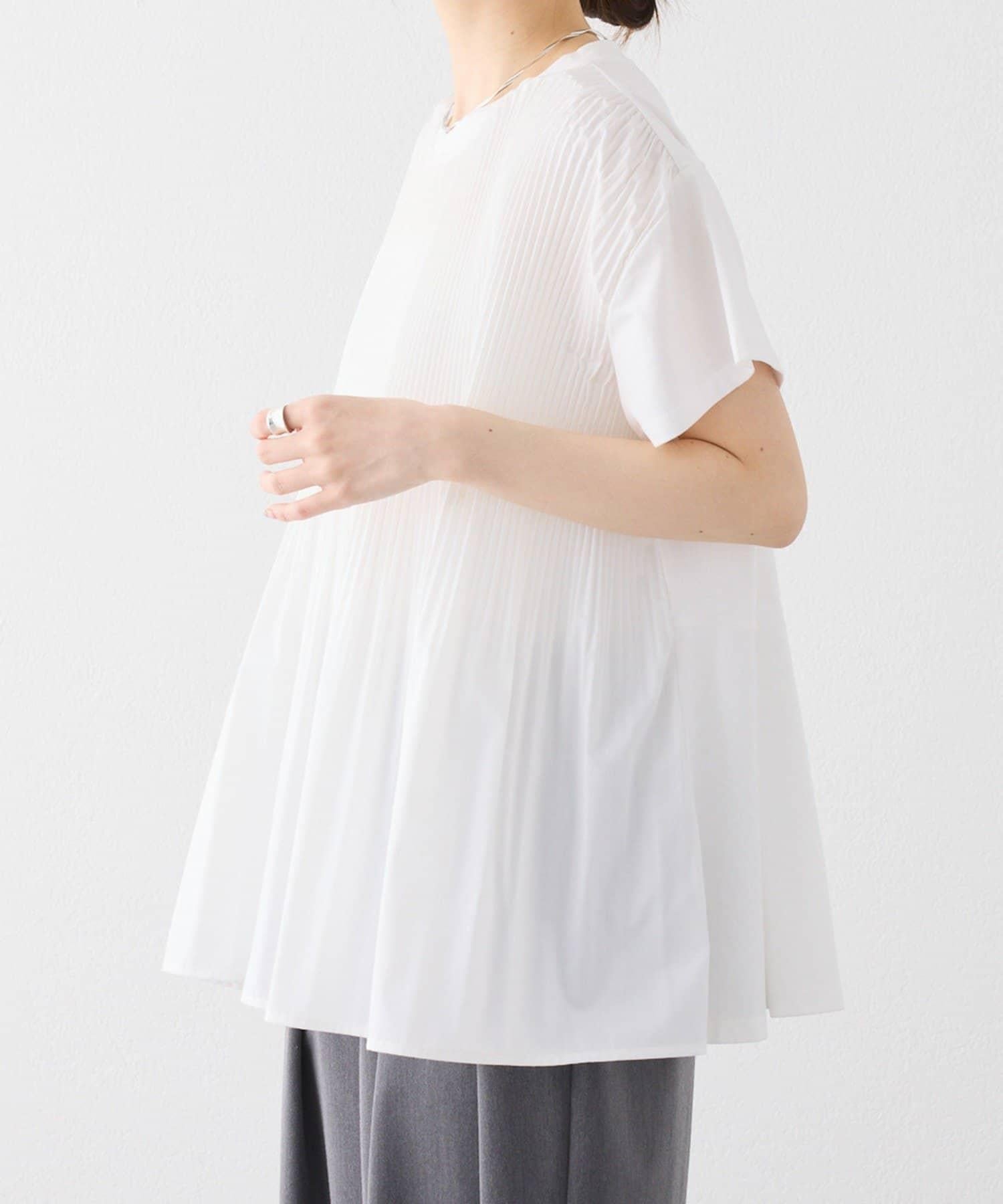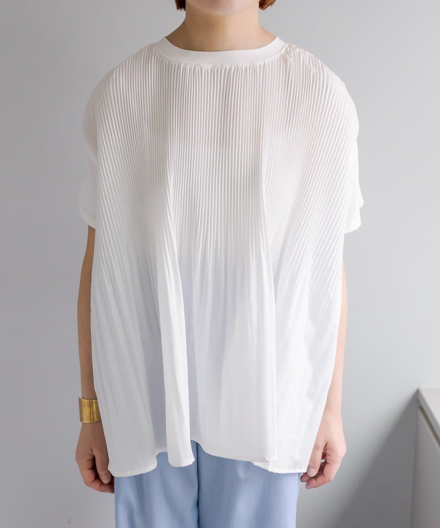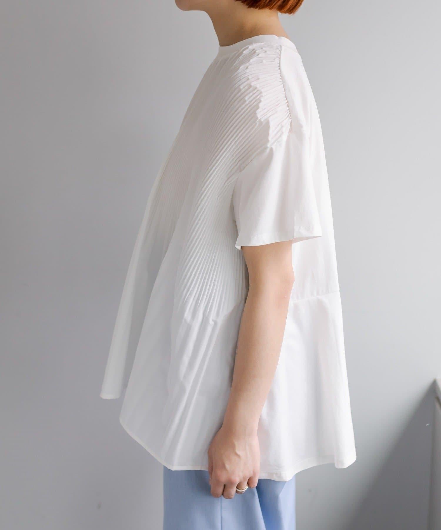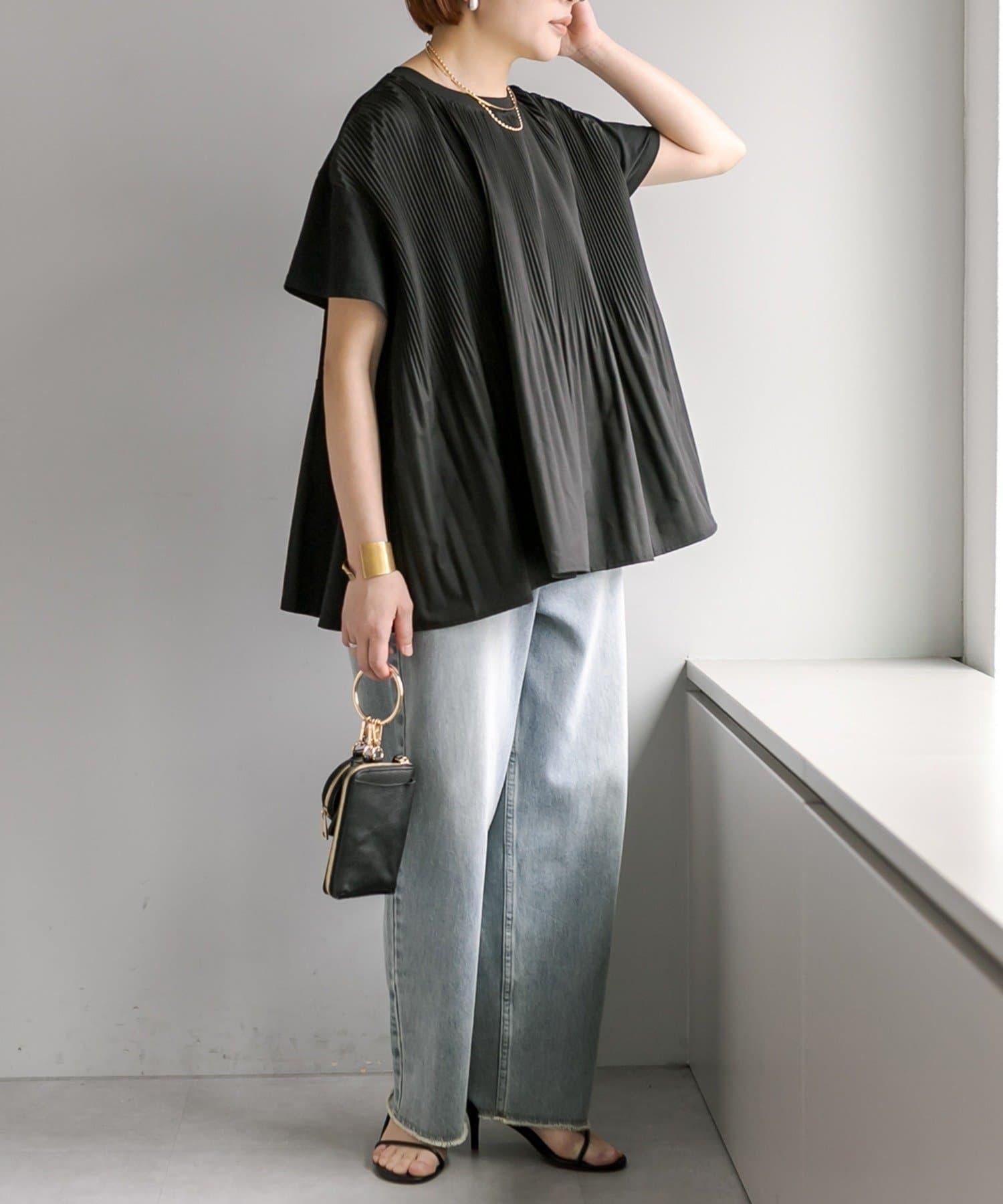 不那麼休閒的設計 T 恤,華麗的褶皺設計給人優雅的印象。