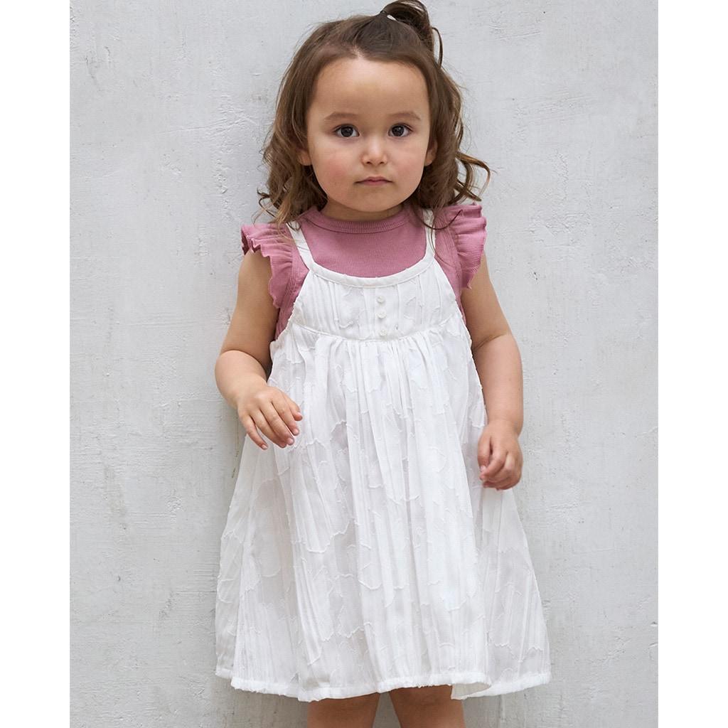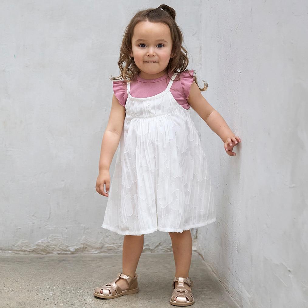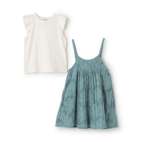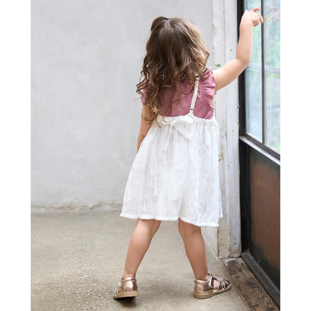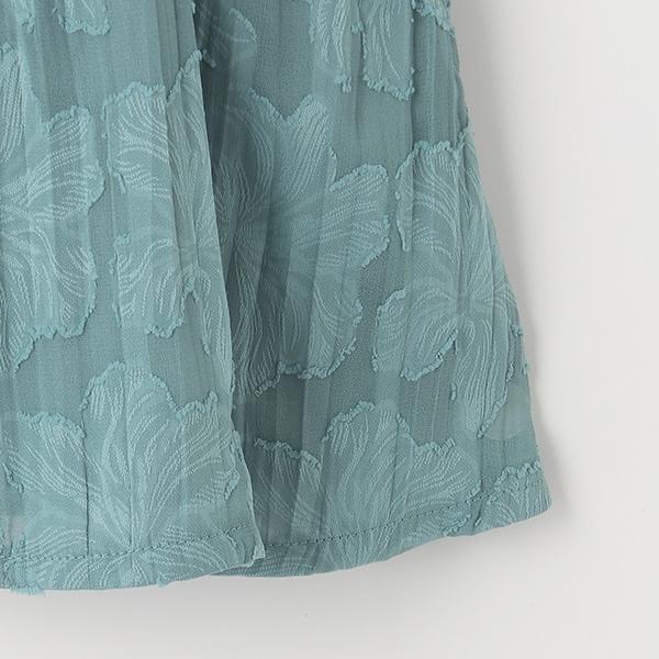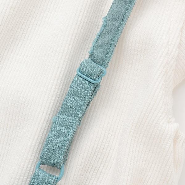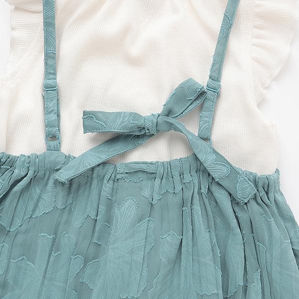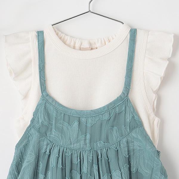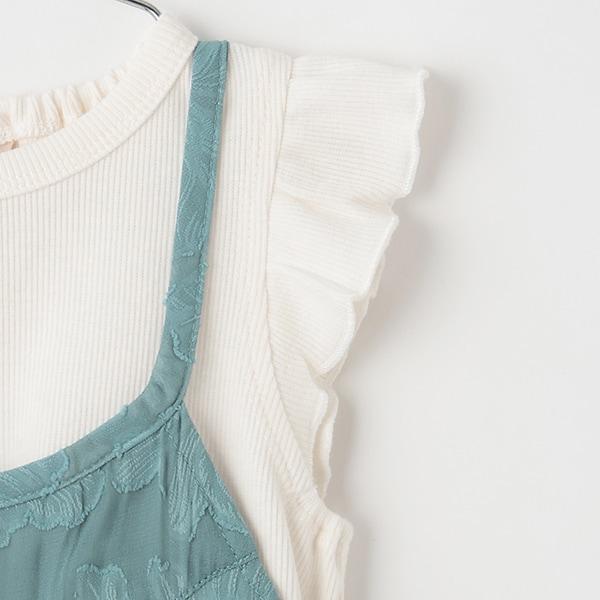 上衣以荷葉邊裝飾,營造出少女氣息。