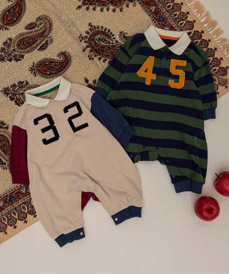BREEZE 連身衣和連身褲"[鏈接] Numbering Polo Shirt 連身衣",以小衣服大視野的成人風而備受歡迎!此外,還推薦作為寶寶洗禮的禮物。