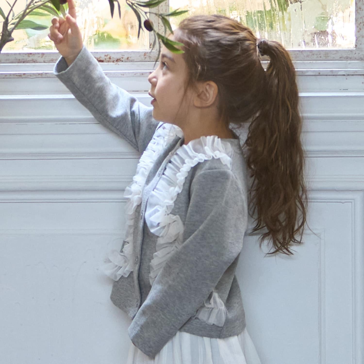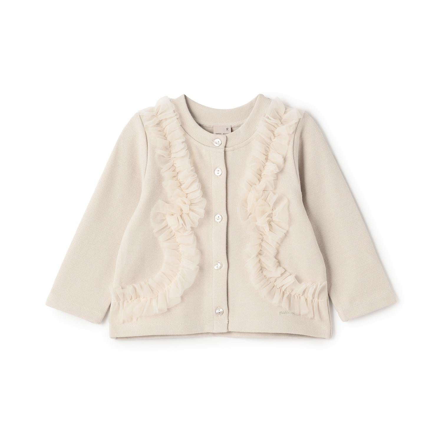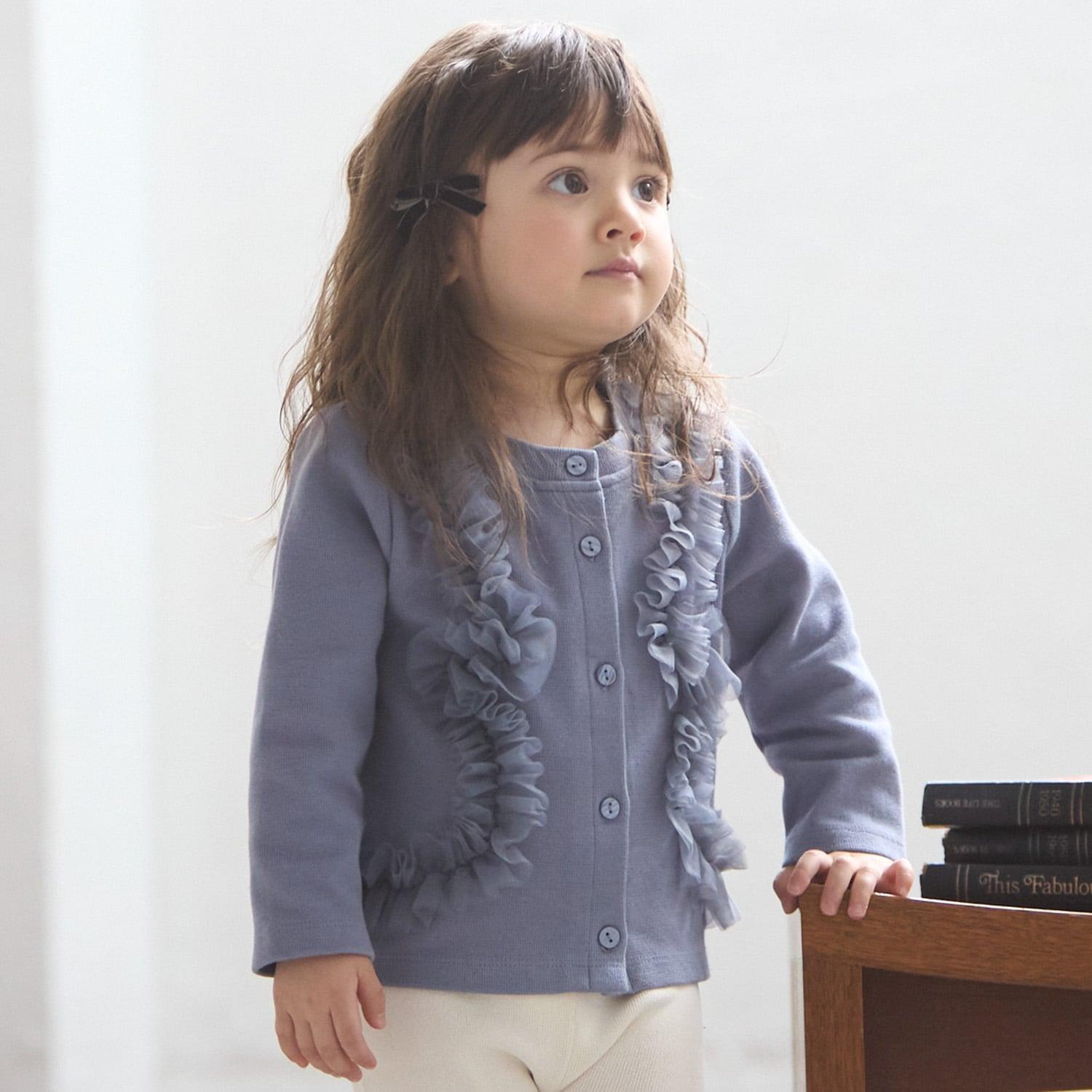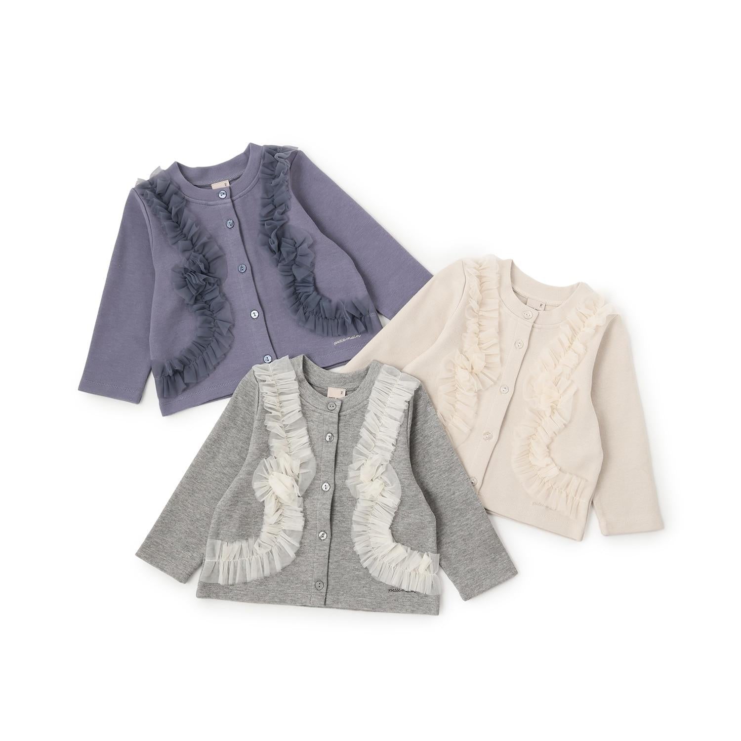 9653591 [link] 薄紗褶皺剪裁開襟毛衣可按嬰兒尺碼穿著,而 3353208 [link] 薄紗褶皺剪裁開襟毛衣可按成人尺碼穿著,以便搭配。