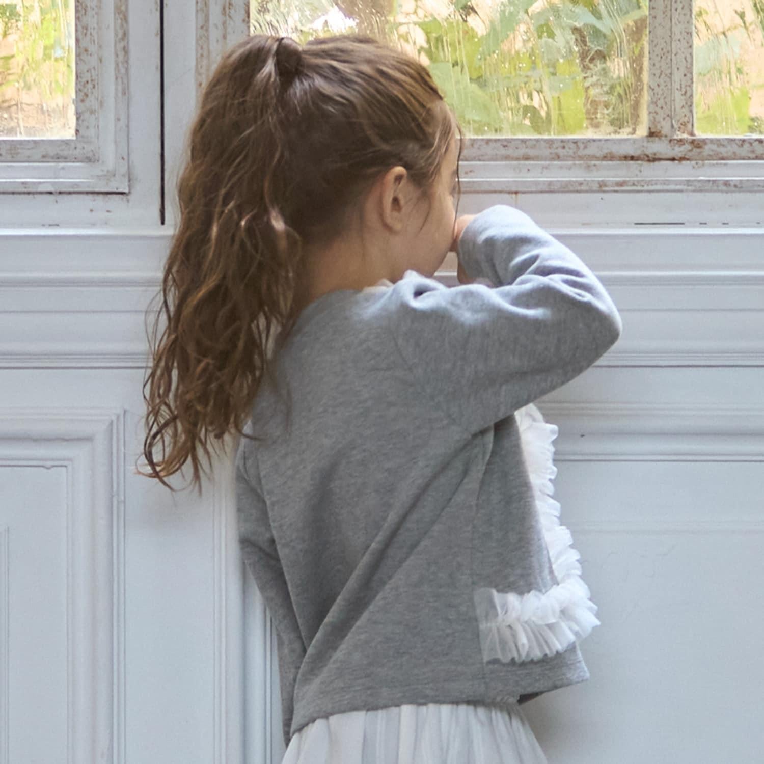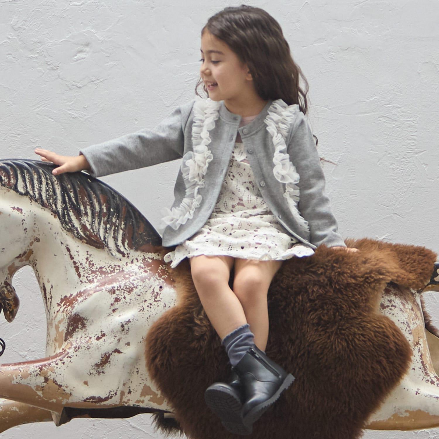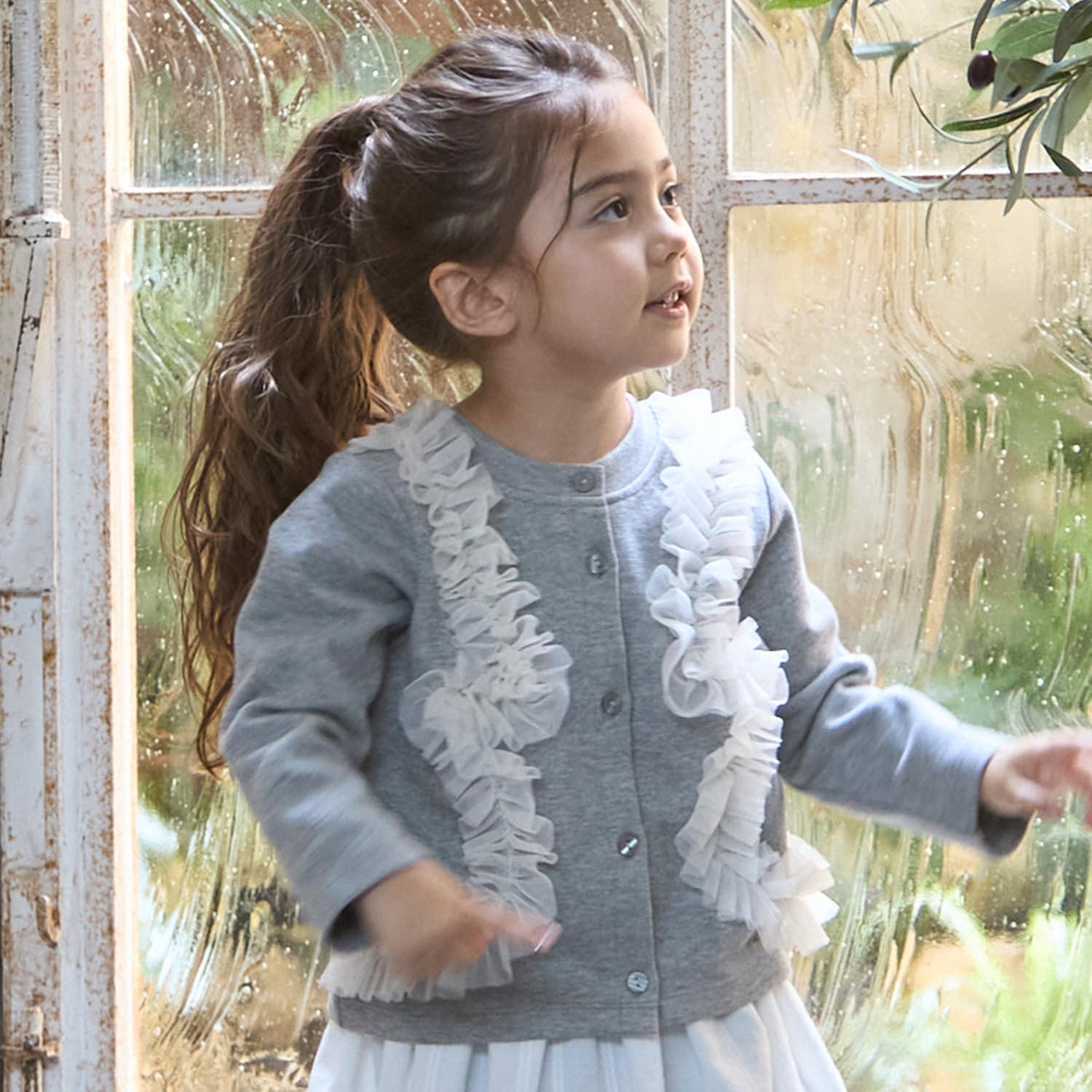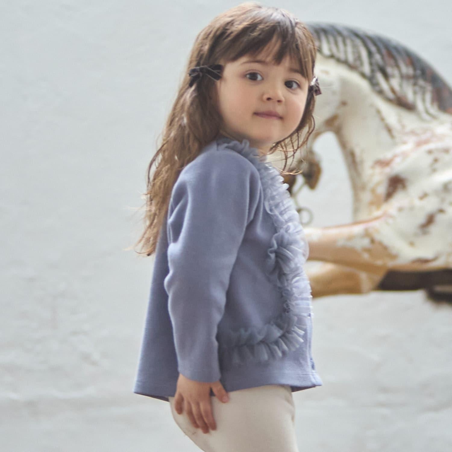 9653591 [link] 薄紗褶皺剪裁開襟毛衣可按嬰兒尺碼穿著,而 3353208 [link] 薄紗褶皺剪裁開襟毛衣可按成人尺碼穿著,以便搭配。