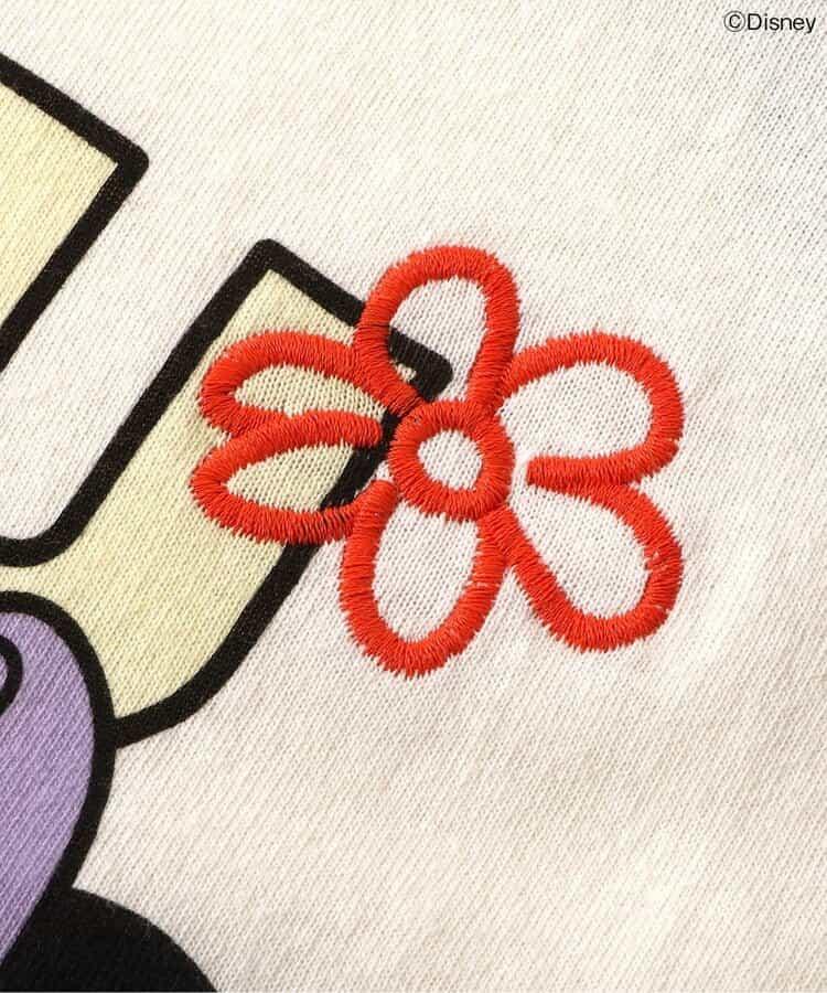 一款色彩鮮豔的無袖 T 恤,上面印有 "米奇老鼠 "和 "米妮老鼠 "的圖案,光是看著就能讓人心情愉悅。